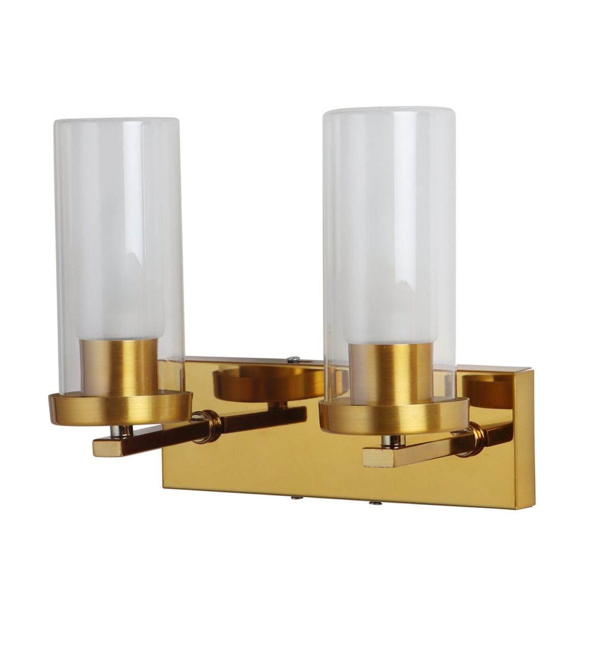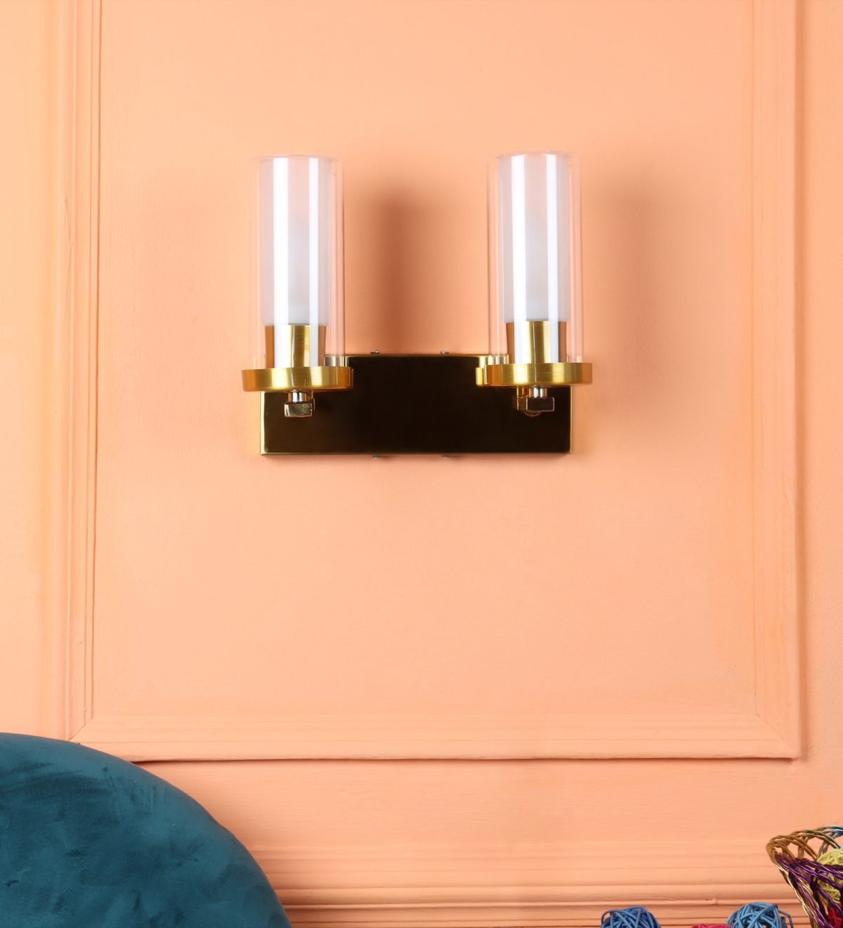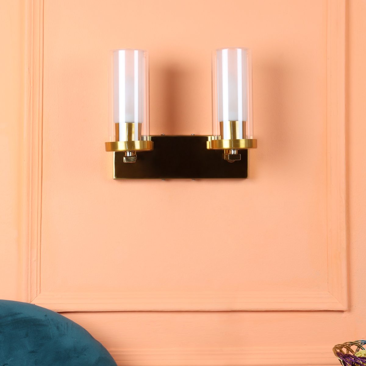 Antique gold finish double wall light having sleek, round, cylindrical two layered glass. It is maintenance free, easy to remove glasses and wash them, comes with an E14 holder, only the change of lamp is required, which is available locally everywhere. Application includes both residential and commercial premises wherever it matches with your interiors. Matching single wall light code – WL2733. Can be customized as per requirement in case of bulk quantity, LAMP NOT INCLUDED.