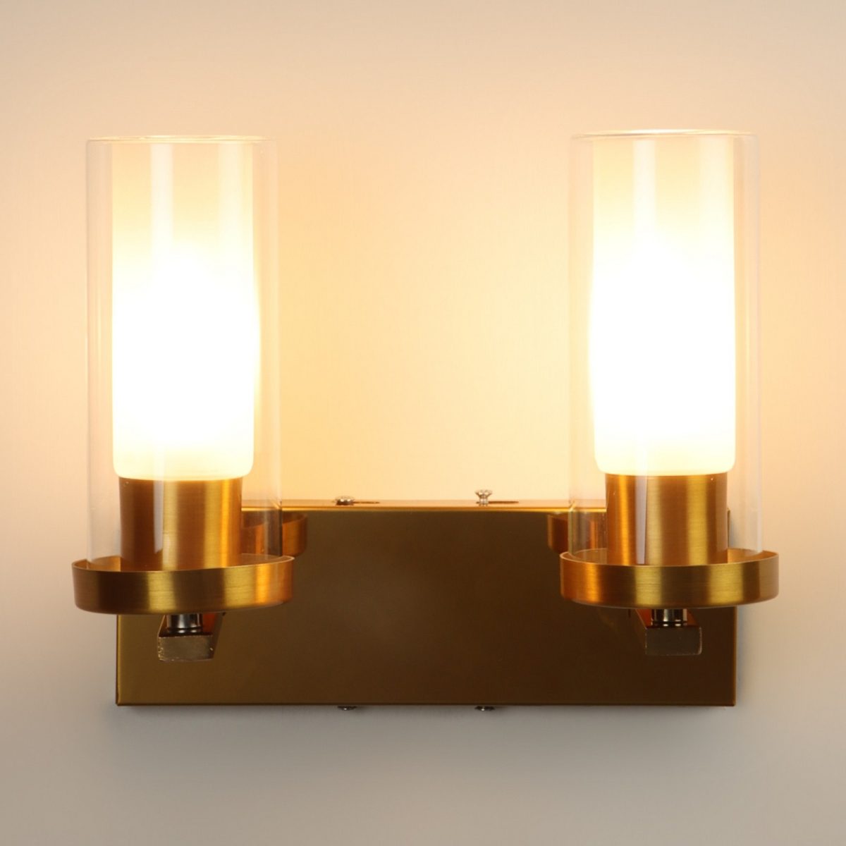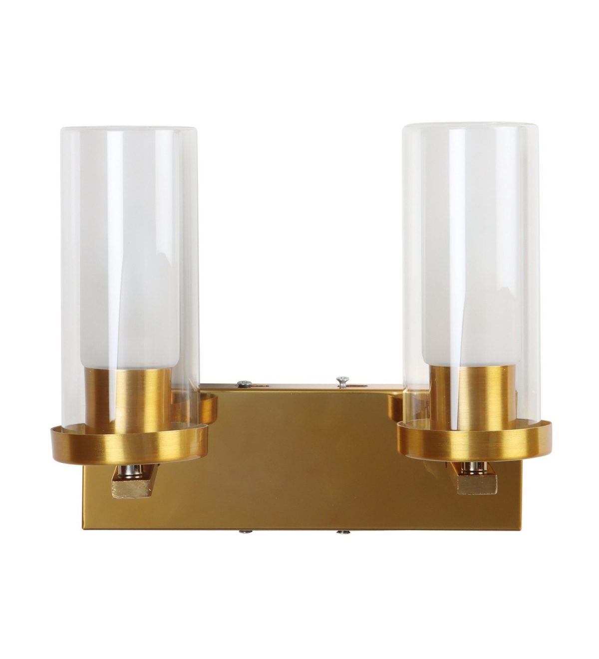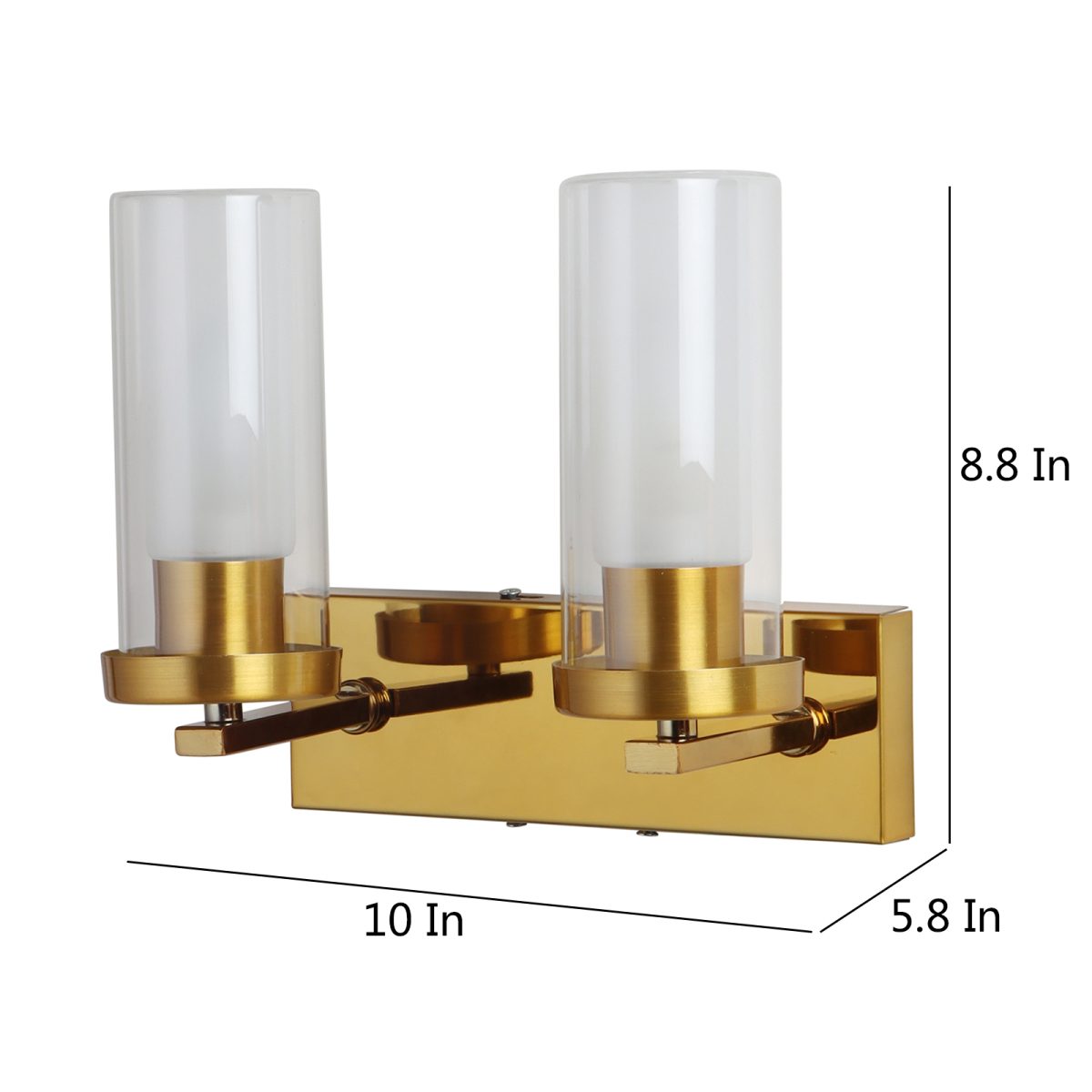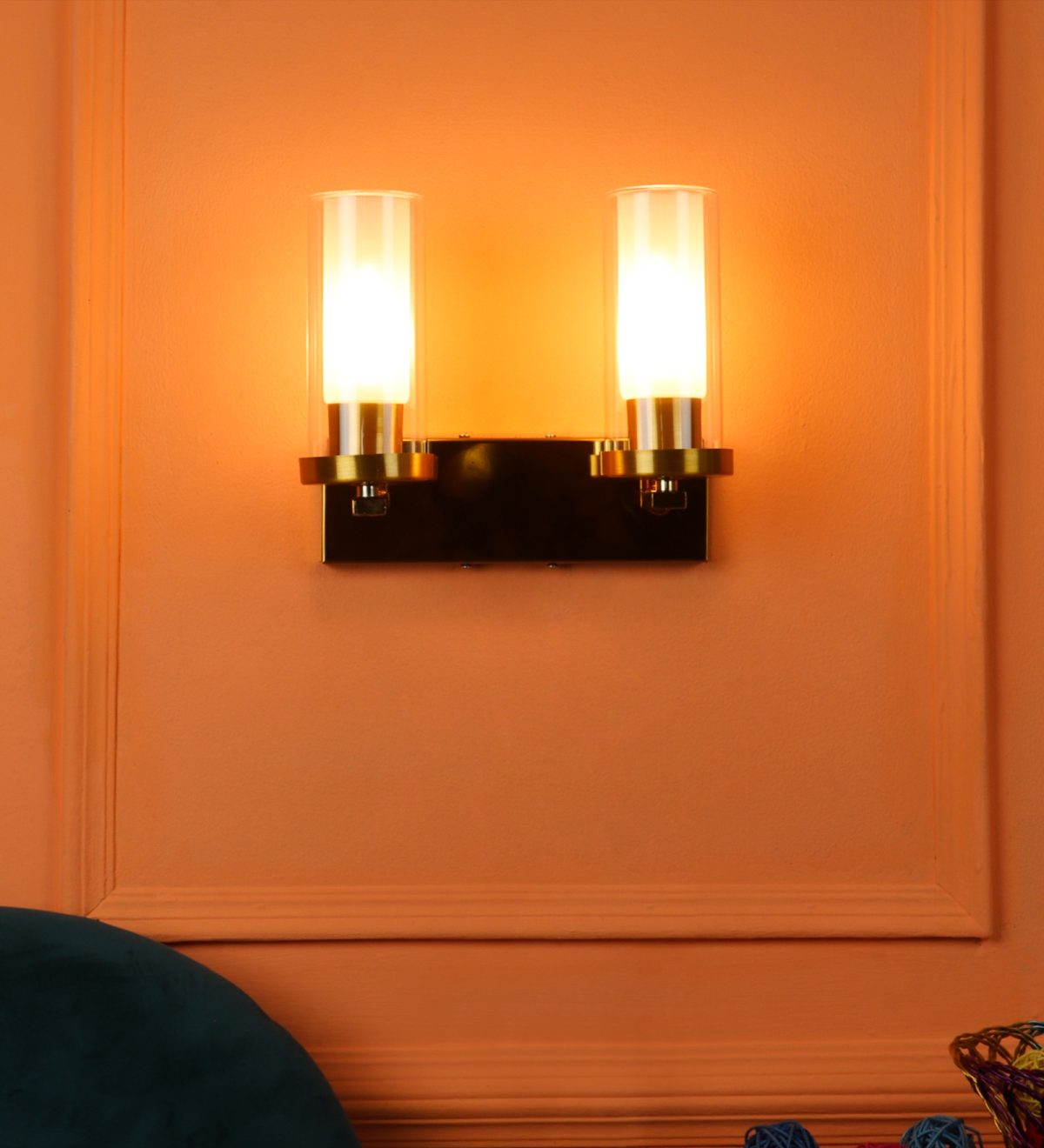 Antique gold finish double wall light having sleek, round, cylindrical two layered glass. It is maintenance free, easy to remove glasses and wash them, comes with an E14 holder, only the change of lamp is required, which is available locally everywhere. Application includes both residential and commercial premises wherever it matches with your interiors. Matching single wall light code – WL2733. Can be customized as per requirement in case of bulk quantity, LAMP NOT INCLUDED.
