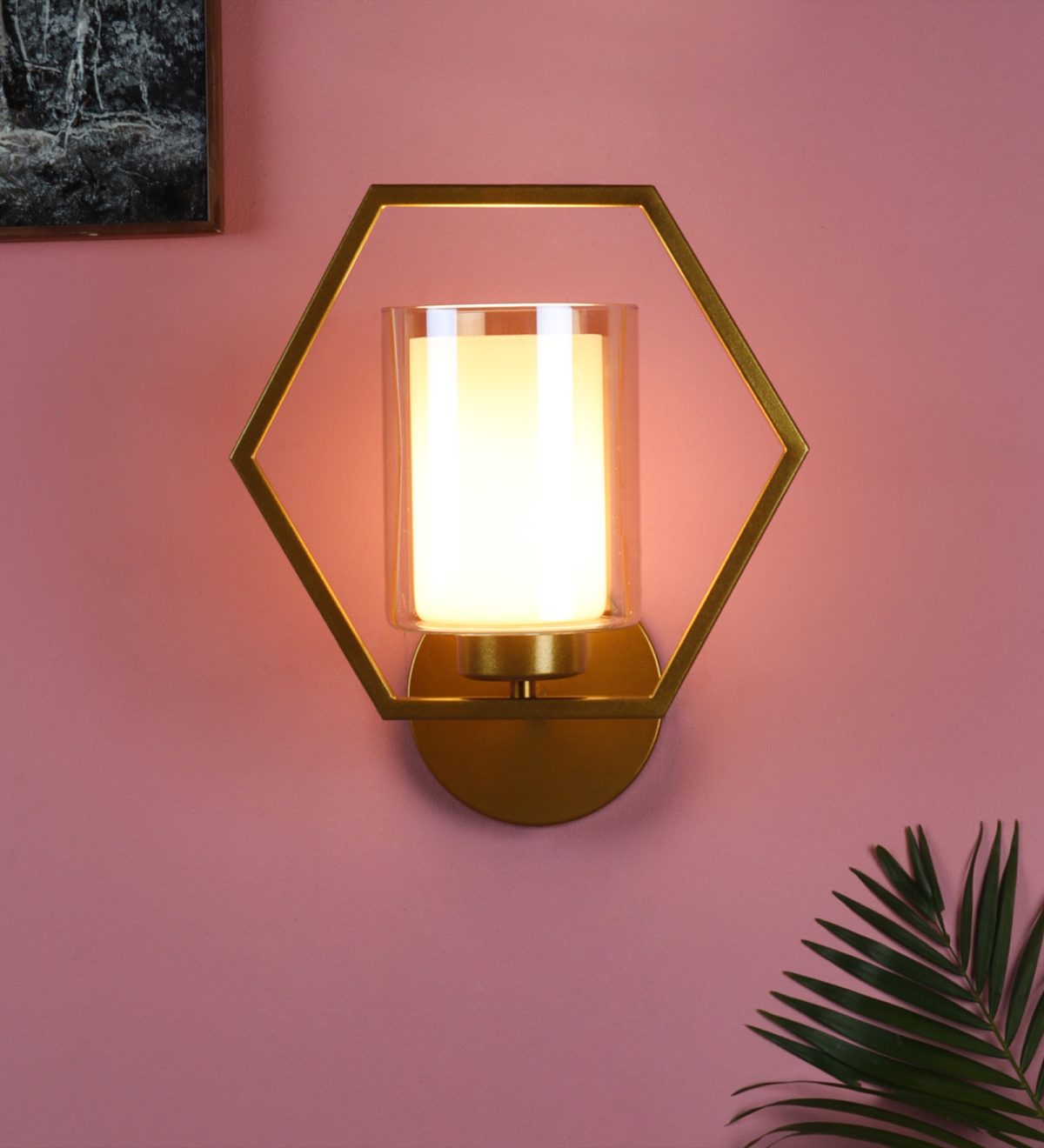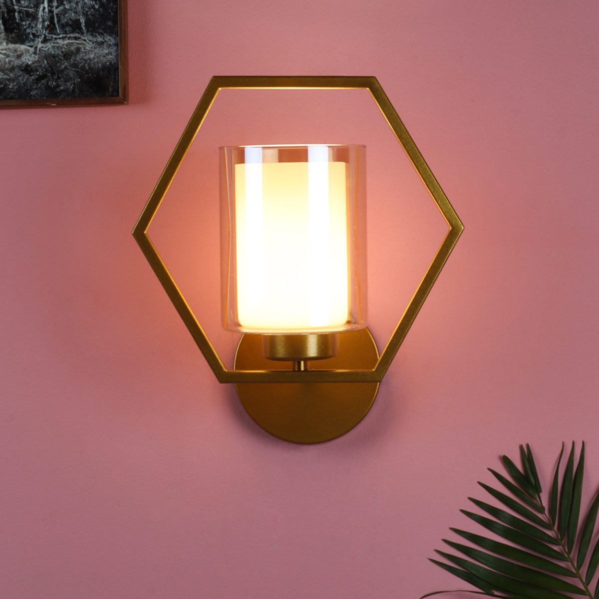 Antique gold finish single wall light having round, cylindrical two layered champaign coloured glass. It is maintenance free, easy to remove glass and wash them, comes with an E27 holder, only the change of lamp is required, which is available locally everywhere. Application includes both residential and commercial premises wherever it matches with your interiors. Can be customized as per requirement in case of bulk quantity, LAMP NOT INCLUDED.