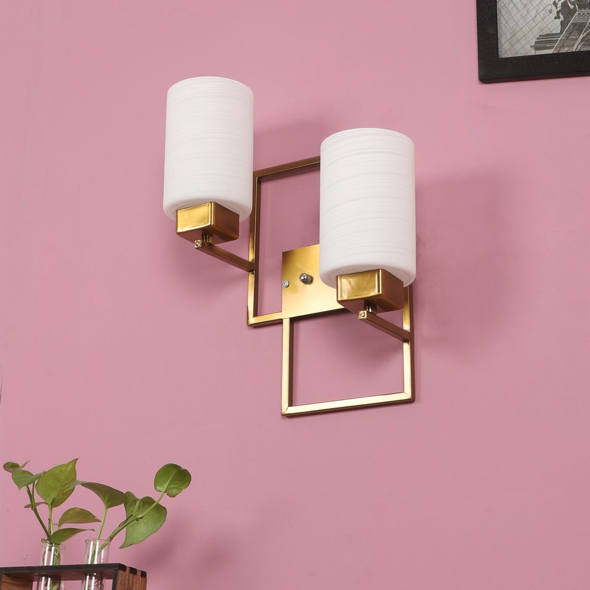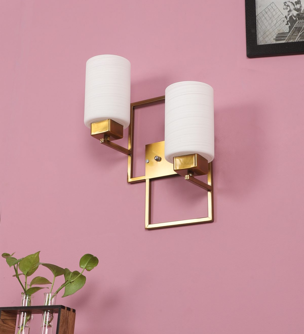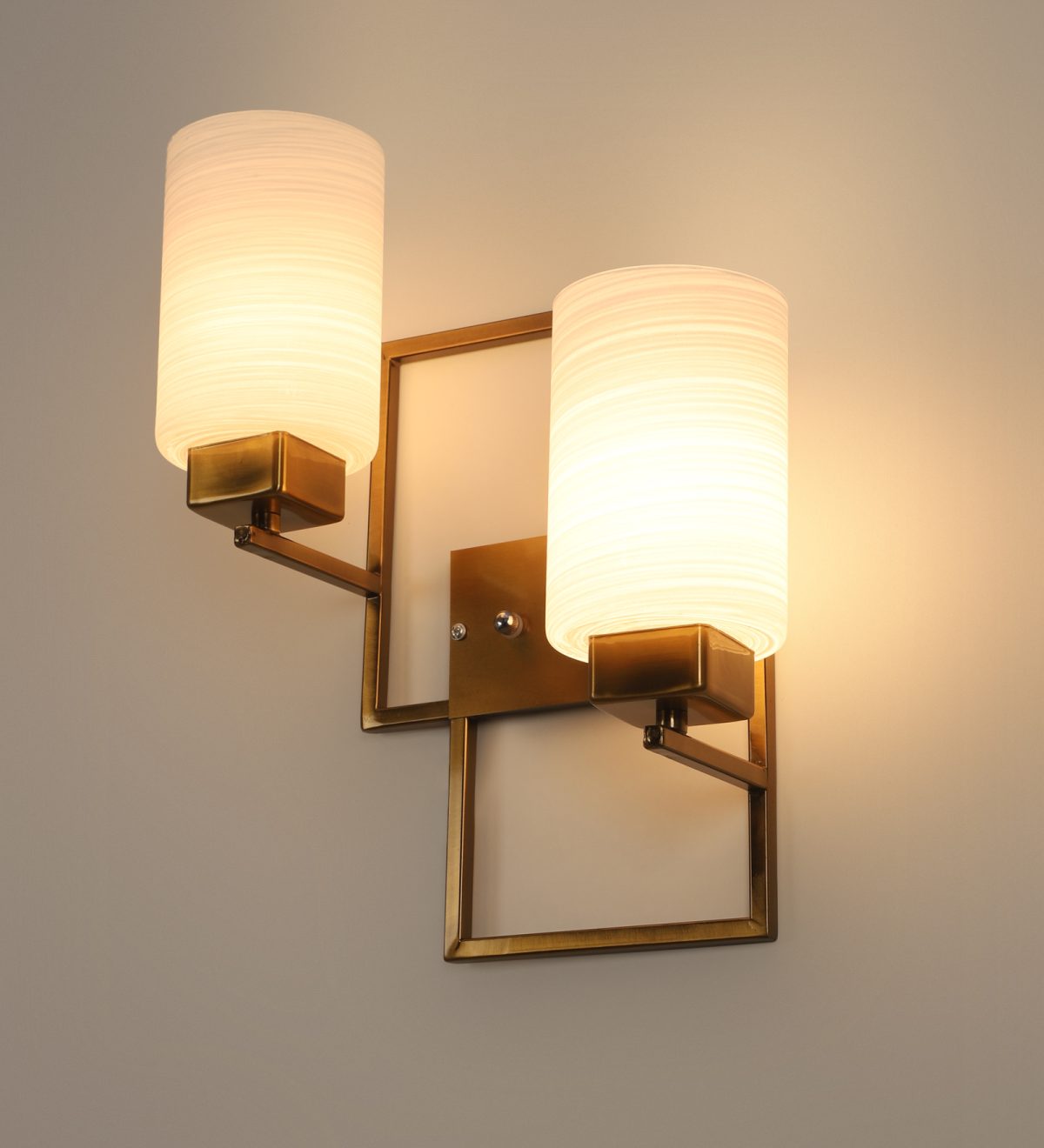 Antique, mild steel double wall light with cylindrical textured white glasses. It is maintenance free, comes with an E27 holder, only the change of lamp is required, which is available locally everywhere. Application includes both residential and commercial premises wherever it matches with your interiors. Can be customized as per requirement. LAMPS NOT INCLUDED.