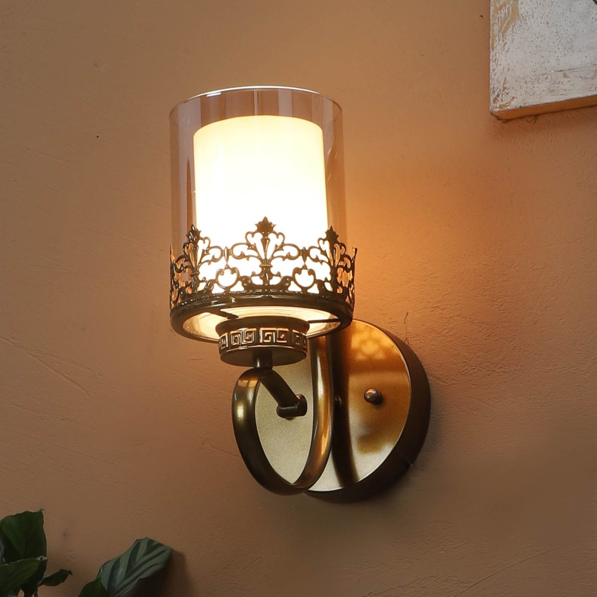 Antique finish single wall light. Can be customized as per requirement. LAMP NOT INCLUDED.