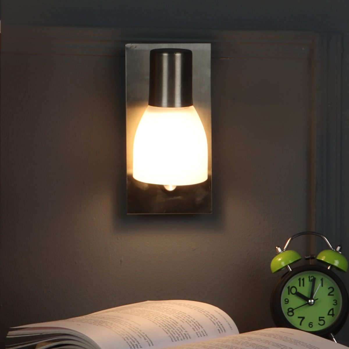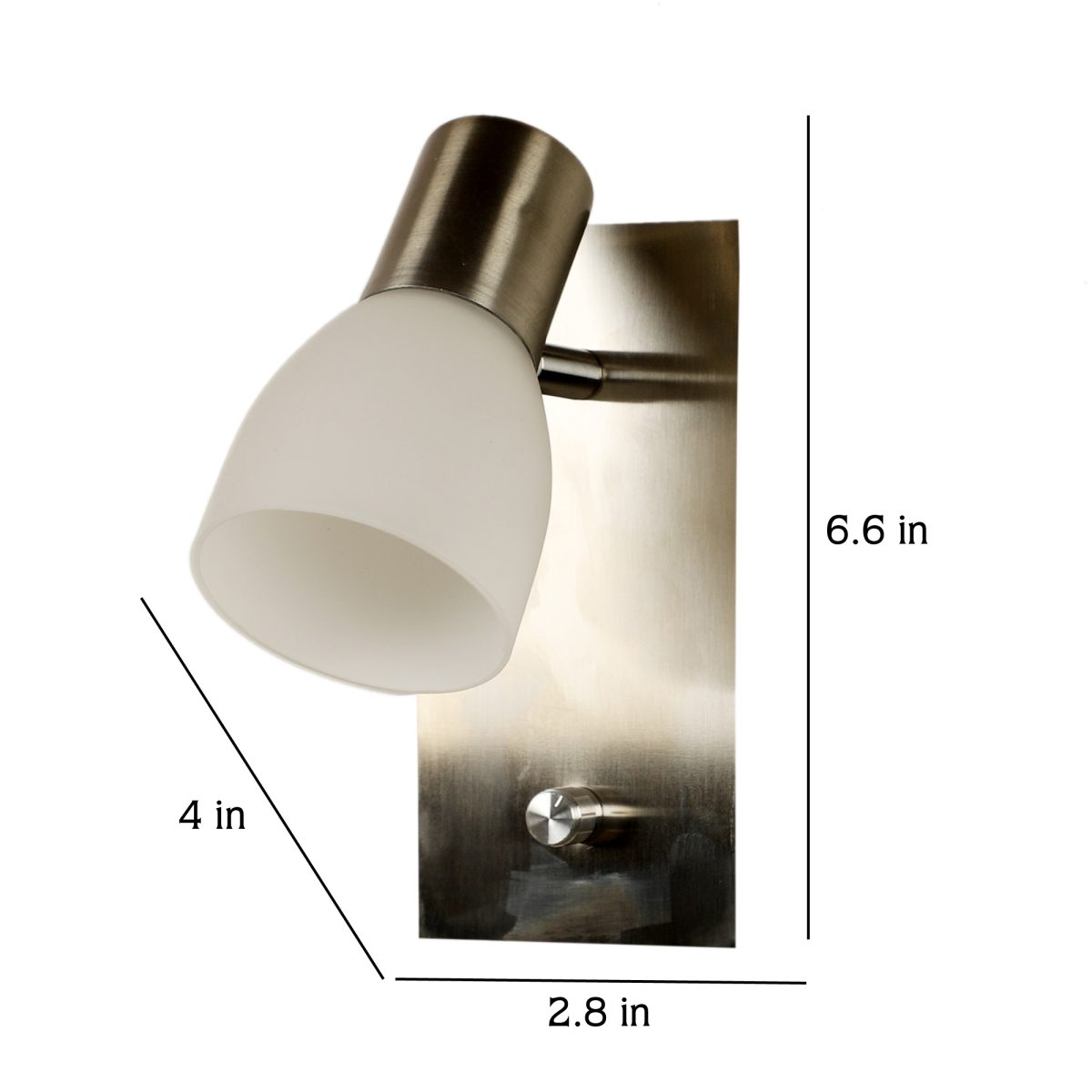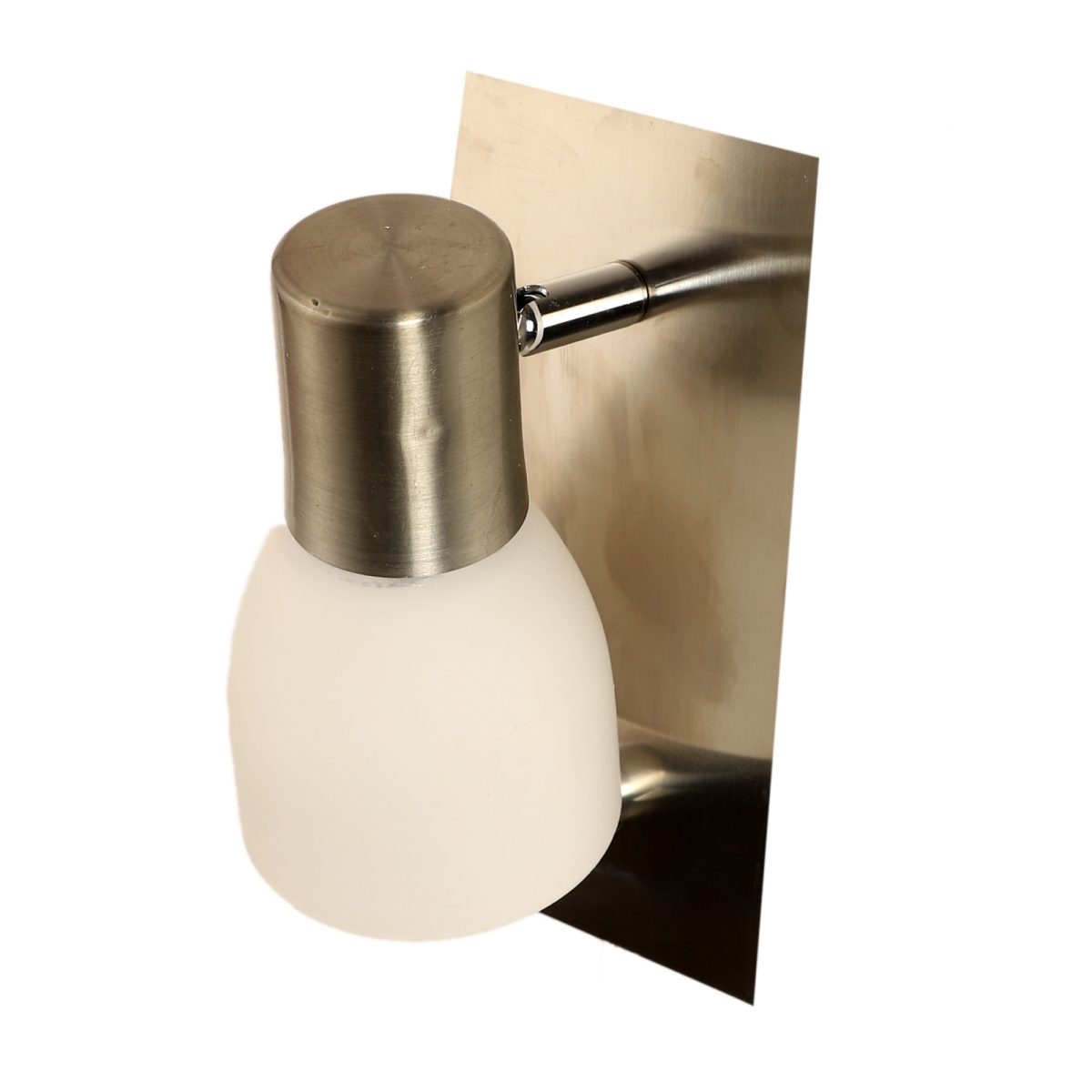Silver bed side adjustable wall light with dimmer. The lighting head is mounted on a neck which can be rotated in all the directions. Brightness can be adjusted using the dimmer.