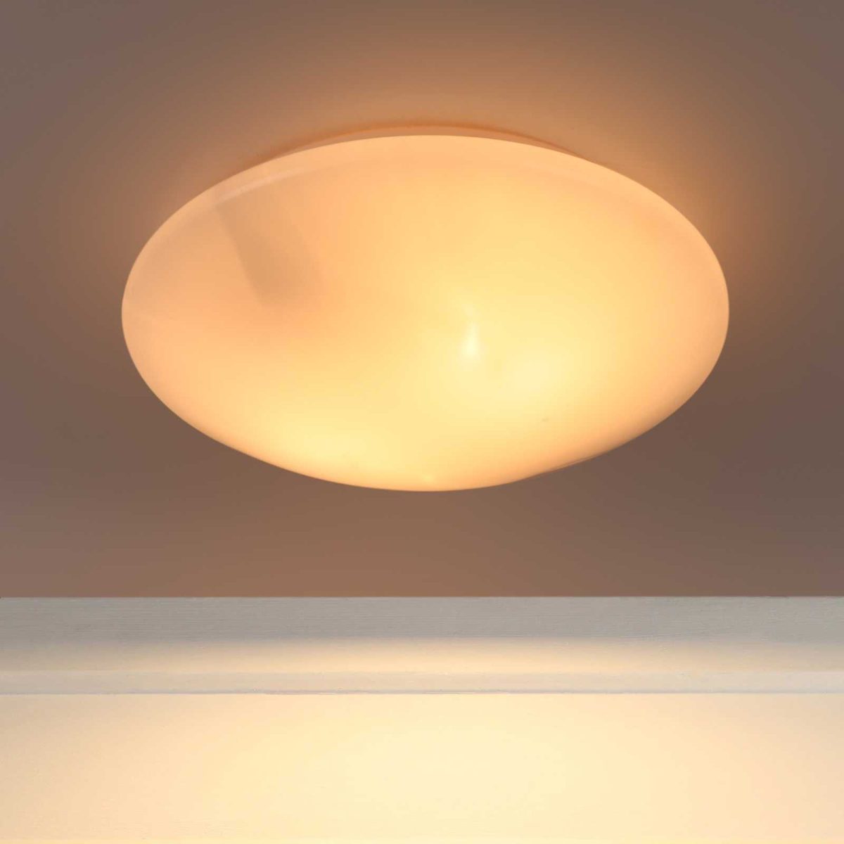 Round weather proof, rust free, outdoor ceiling light having two lamps. It is maintenance free, comes with B22 holder, only the change of lamp is required, which is available locally everywhere You can of course swap out the bulb for one that is dimmable, has a higher light output or a different color temperature. Application areas include porches, entrance, patio, verandah, balcony, bathroom, staircase ceiling, terrace, stilt parking, basement parking. Also available in small size with code CL457-S. LAMP NOT INCLUDED.
