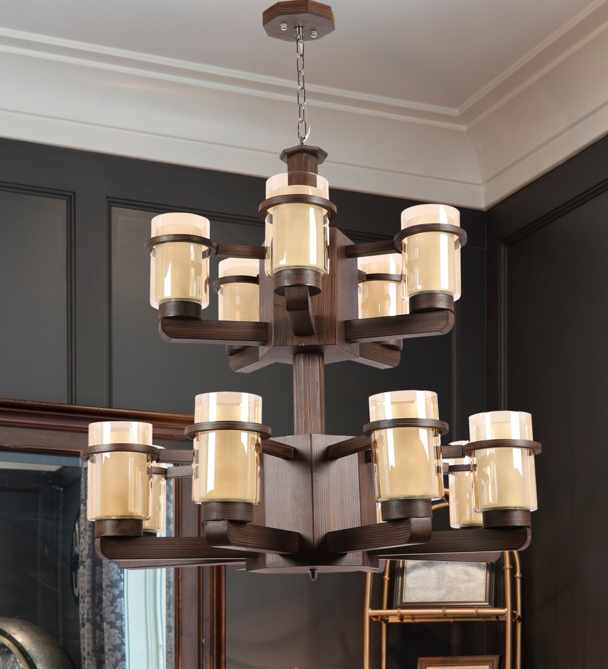 LEARC Designer Lighting Contemporary Glass Metal Wood Chandelier CH429-8