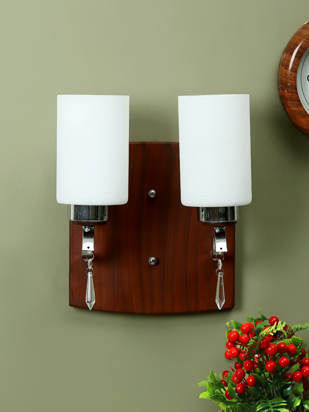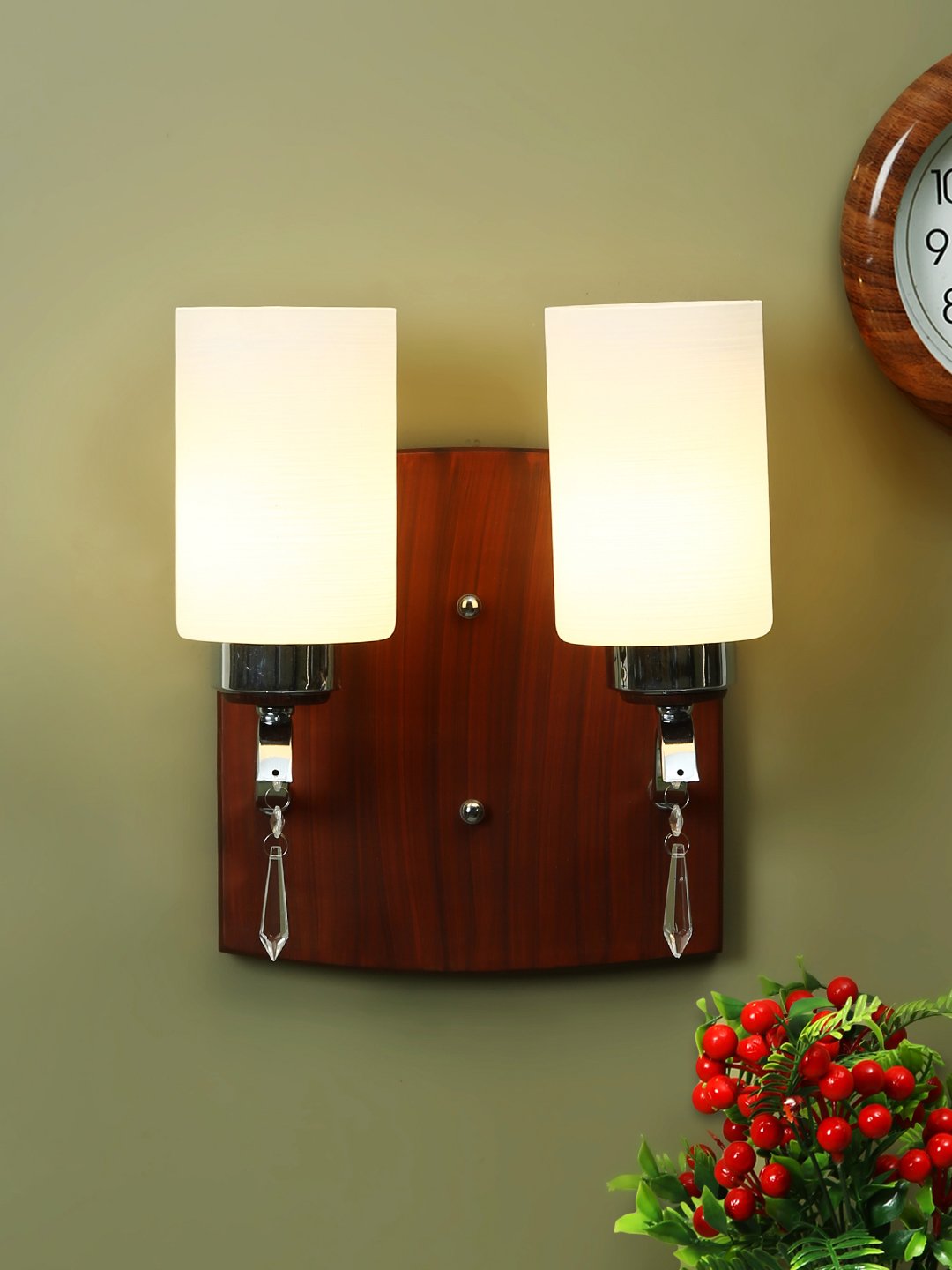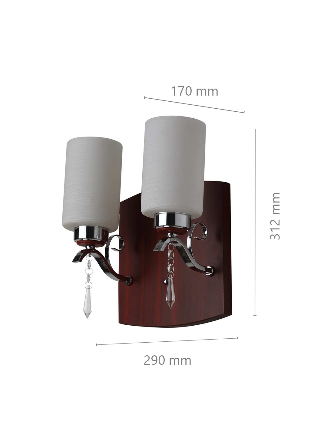 Modern dark brown, silver (wood – chrome) finish double wall light made of wood and mild steel, with round cylindrical long white glass with a self design. Looks amazing when lit. It is maintenance free, easy to remove glass and wash it, comes with an E27 holder, only the change of lamp is required, which is available locally everywhere. You can of course swap out the bulb for one that is dimmable, has a higher light output or a different color temperature. Application includes both residential and commercial premises wherever it matches with your interiors. Matching single wall light code – WL1948. Matching chandelier code – CH372. Can be customized as per requirement in case of bulk quantities. Lamp not included.