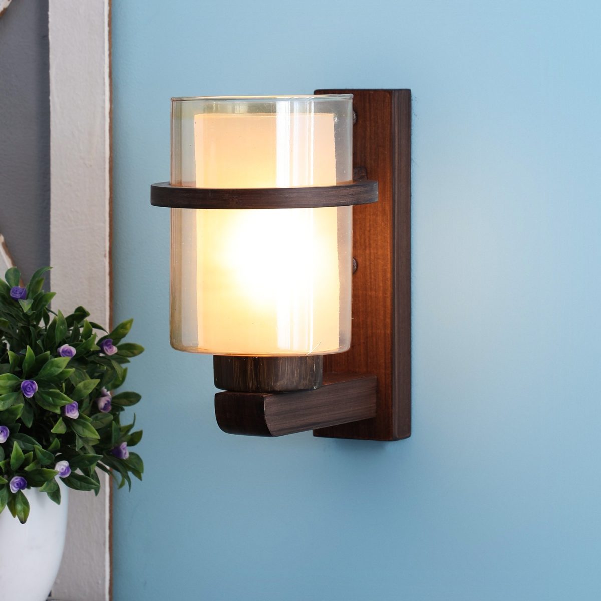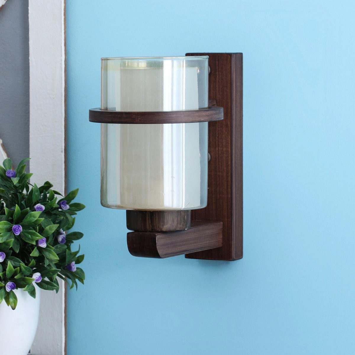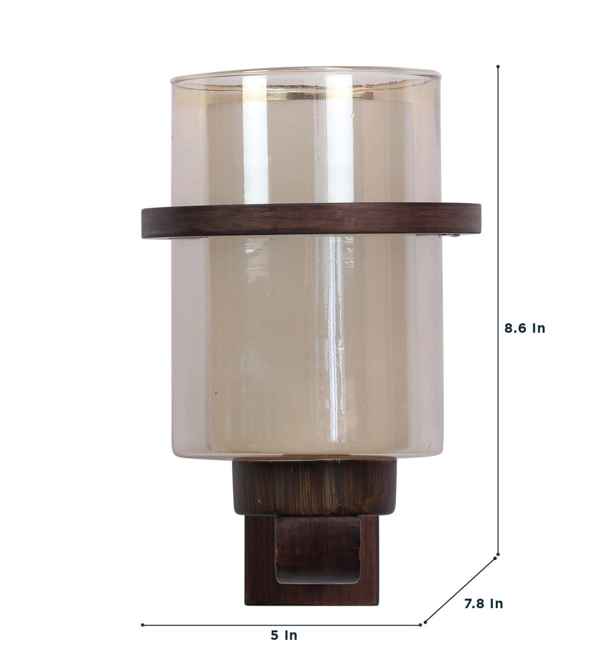 Dark brown (wood) finish, round, cylindrical two layered Champaign colored glass single wall light. It is maintenance free, easy to remove glass and wash it. Comes with an E27 holder, only the change of lamp is required, which is available locally everywhere. Application includes both residential and commercial premises wherever it matches with your interiors. Matching double wall light code WL2080. Matching chandelier code – CH347, CH429-8, CH429-13. Can be customized as per requirement in case of bulk quantities. This along with its variants are the best selling products in our catalogue. Lamp not included.