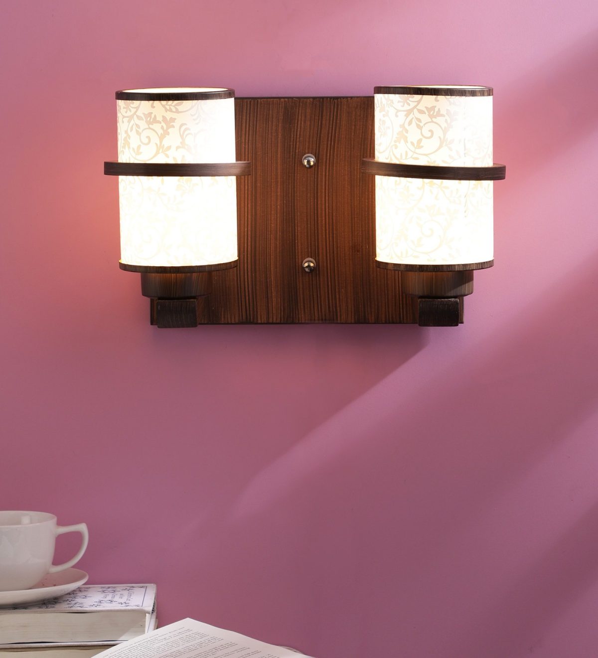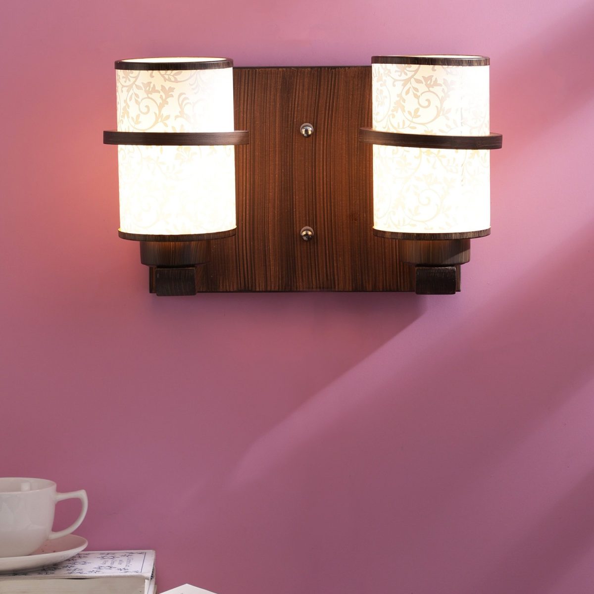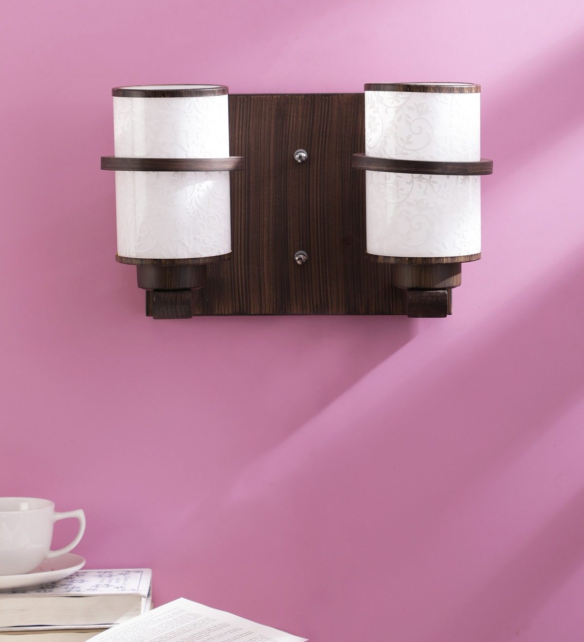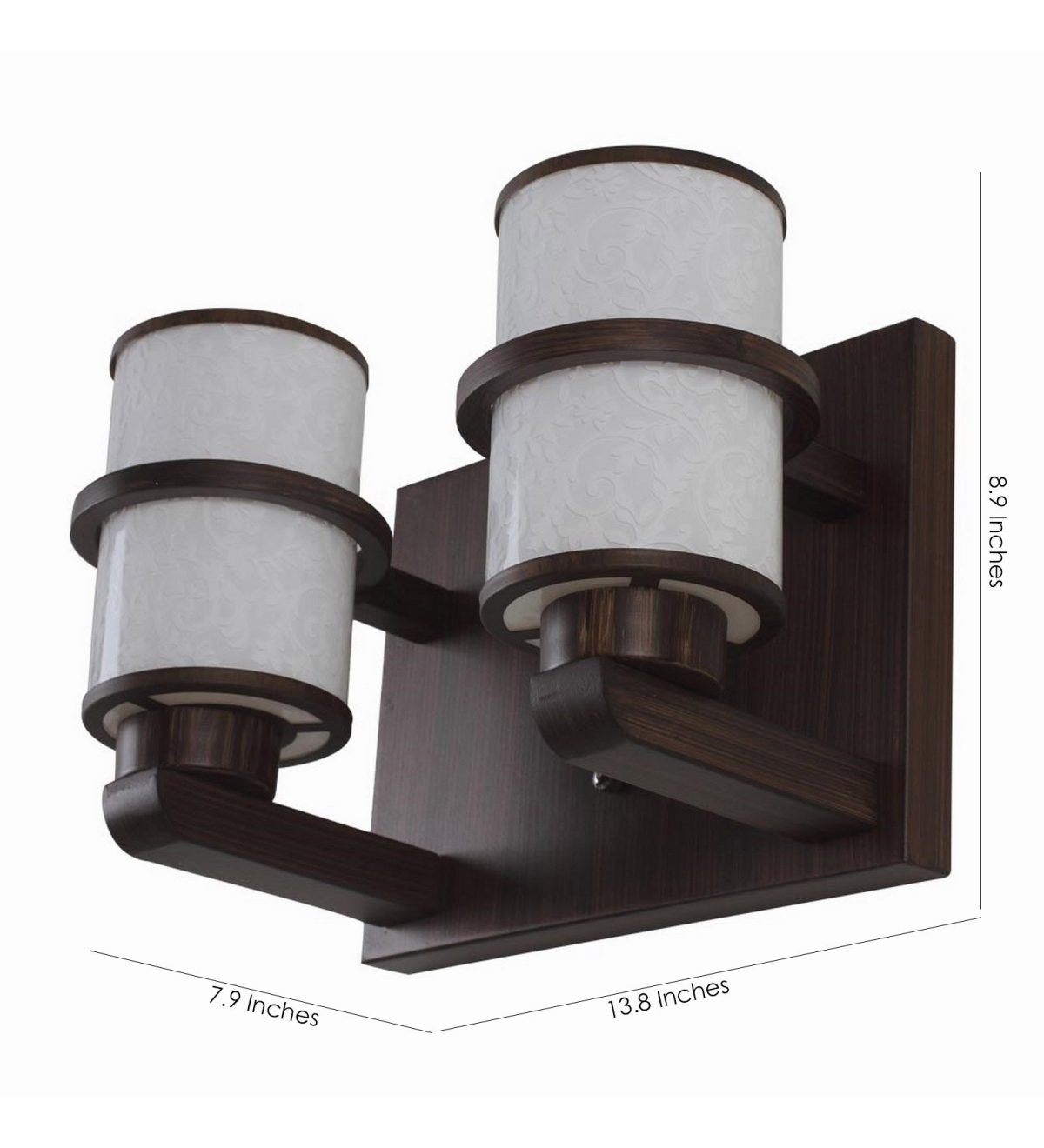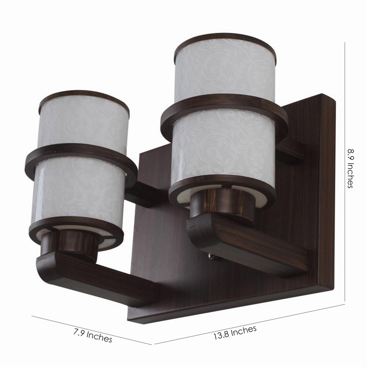 Dark brown (wood), round, cylindrical long white glasses double wall light. It is maintenance free, easy to remove glass and wash them. Comes with an E27 holder, only the change of lamp is required, which is available locally everywhere. Application includes both residential and commercial premises wherever it matches with your interiors. Matching single wall light code WL2097. Matching chandelier code – CH319. Can be customized as per requirement in case of bulk quantities. This along with its variants are the best selling products in our catalogue. Lamp not included.