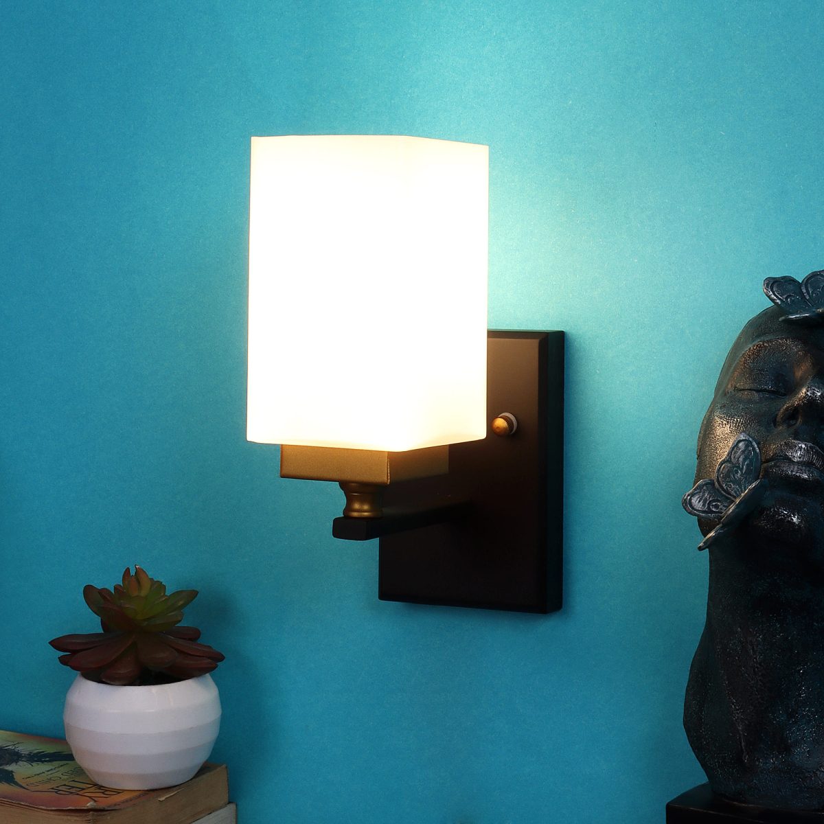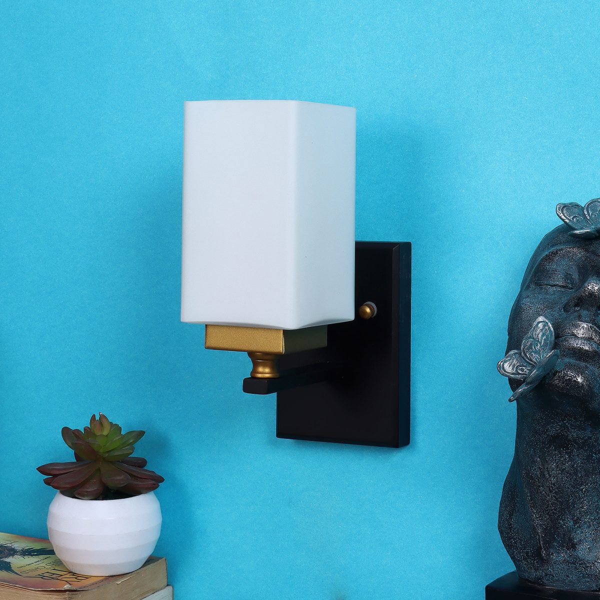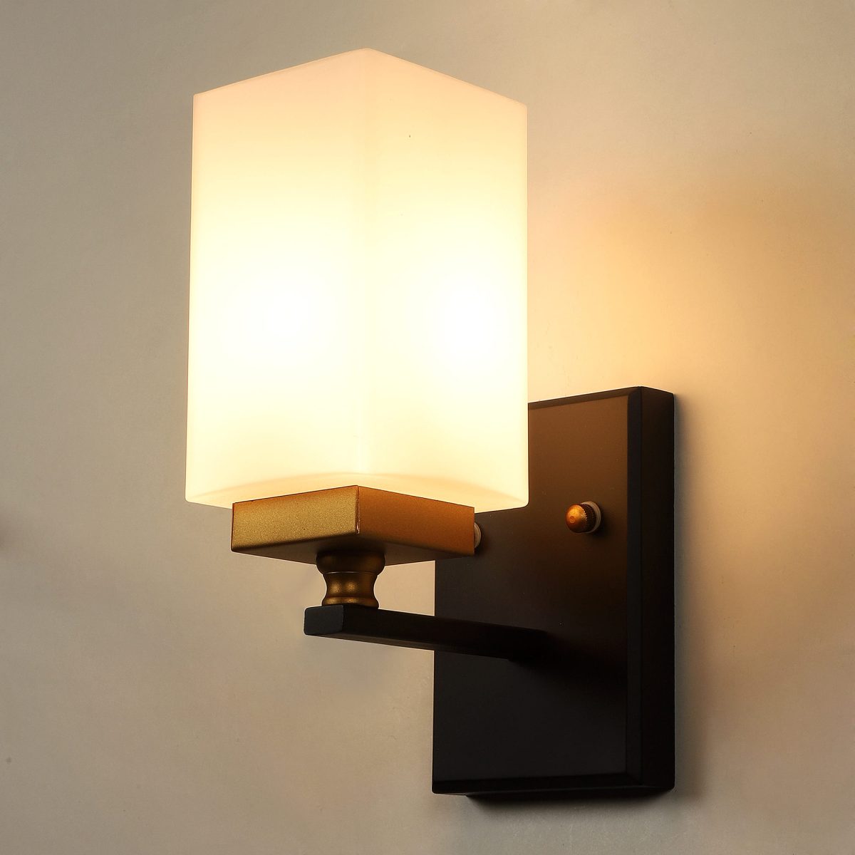 Modern dark brown, gold (wood – gold) finish single wall light made of wood and mild steel, with a square long white glass. It is maintenance free, easy to remove glass and wash it, comes with an E27 holder, only the change of lamp is required, which is available locally everywhere. You can of course swap out the bulb for one that is dimmable, has a higher light output or a different color temperature. Application includes both residential and commercial premises wherever it matches with your interiors. Matching double wall light code – WL2334. It is one of the top selling product in our catalogue. Can be customized as per requirement in case of bulk quantities. Lamp not included.