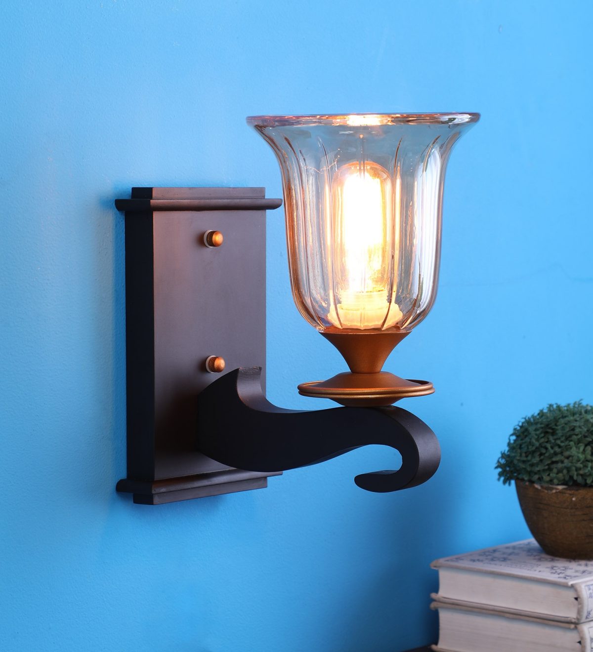 Modern dark brown, gold (wood gold) finish single wall light made of wood and mild steel, with a bell shaped Champaign colored glass. It is maintenance free, easy to remove glass and wash it, comes with an E27 holder, only the change of lamp is required, which is available locally everywhere. You can of course swap out the bulb for one that is dimmable, has a higher light output or a different color temperature. Application includes both residential and commercial premises wherever it matches with your interiors. Matching double wall light code – WL2376. Matching hanging light code – HL4141-4. Can be customized as per requirement in case of bulk quantities. It is one of the top selling product in our catalogue. Lamp not included.