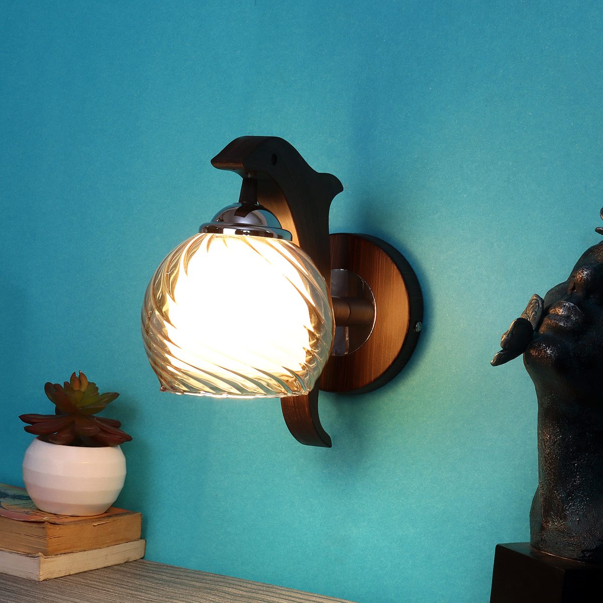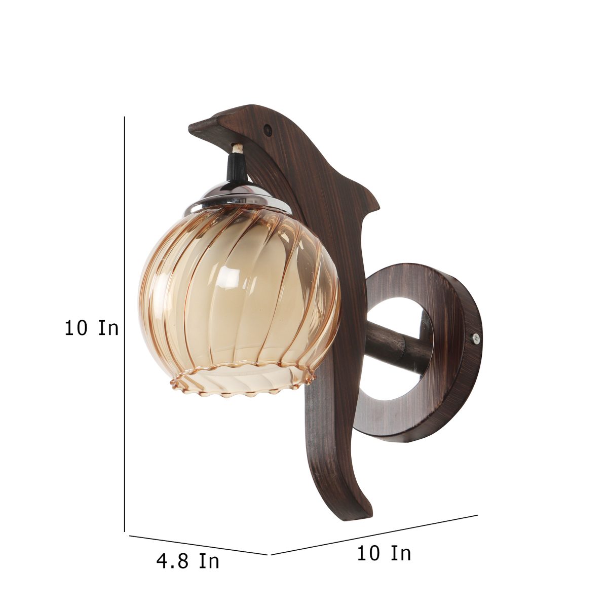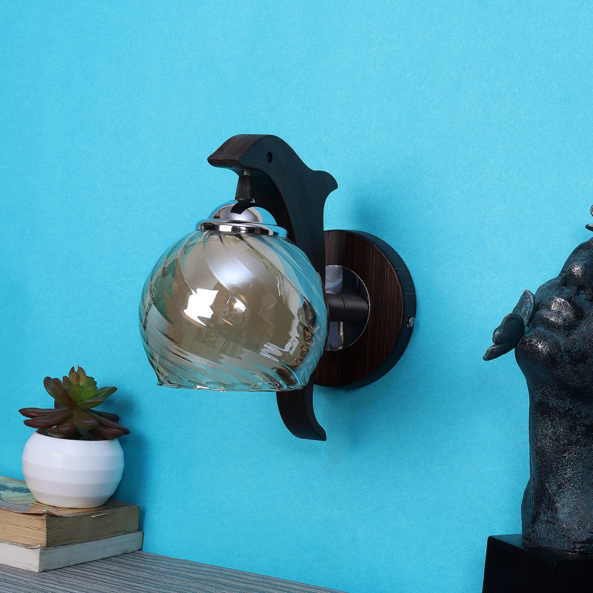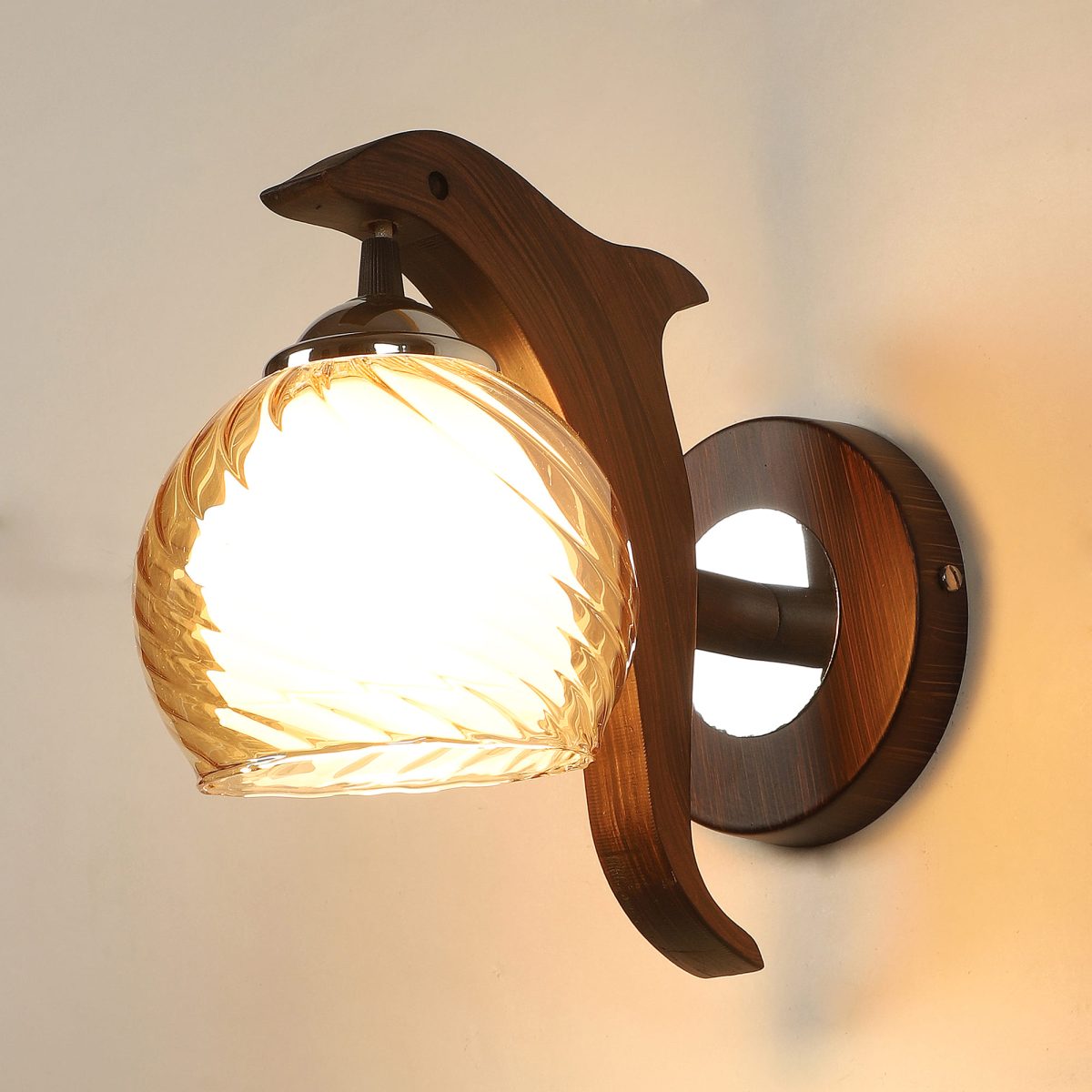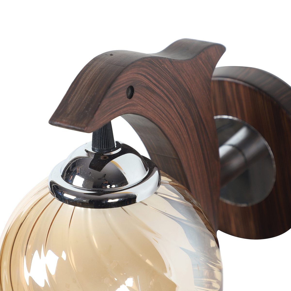 Dark brown, silver, (wood – chrome) finish, small, round globe (doom) Champaign colored two layer glass, down facing single wall light. It is maintenance free, easy to remove glass and wash it. Comes with an E27 holder, only the change of lamp is required, which is available locally everywhere. Application includes both residential and commercial premises wherever it matches with your interiors. Matching double wall light code WL2412. Can be customized as per requirement in case of bulk quantities. Lamp not included.