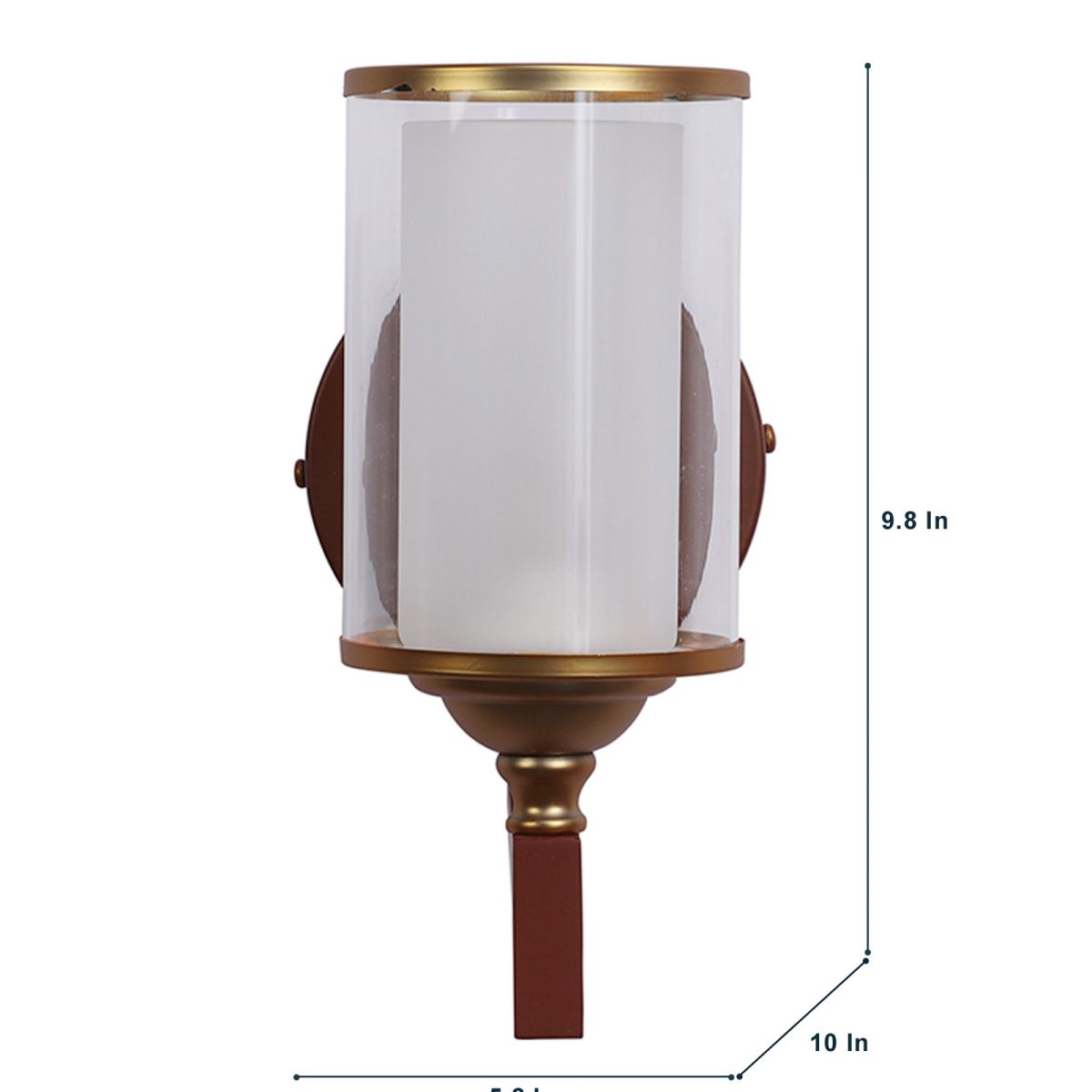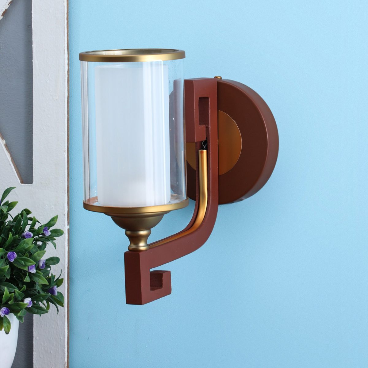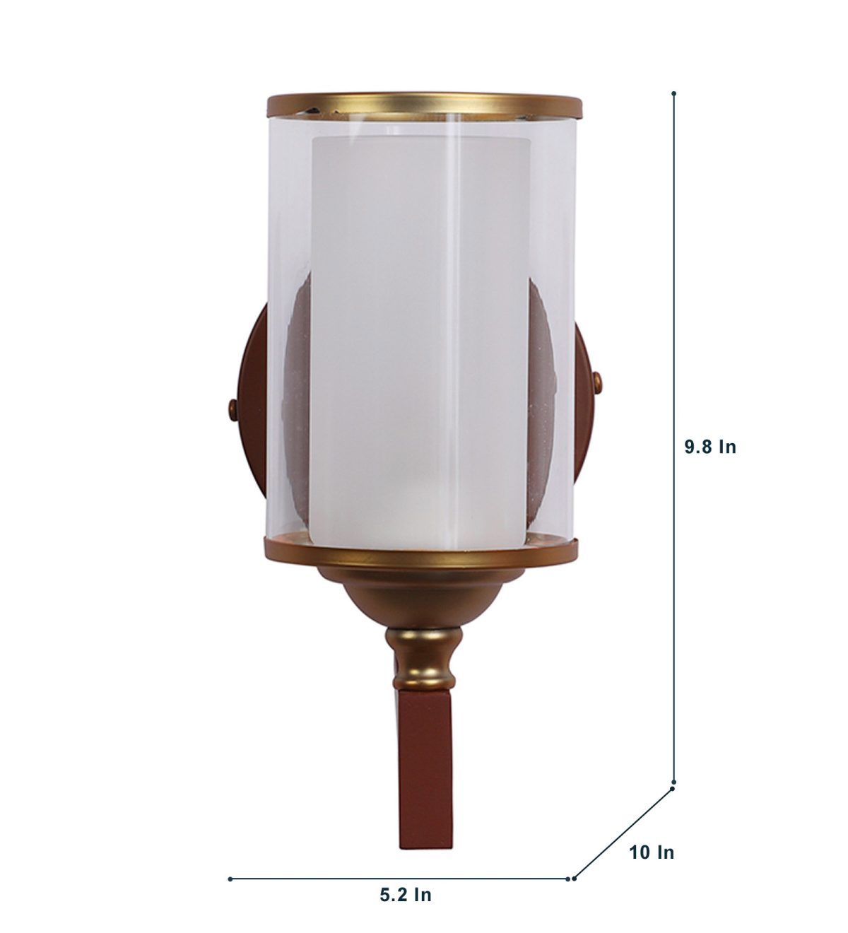 Dark brown, gold, (wood – gold), finish, round cylindrical double layered glass with gold ring at both the edges, single wall light made of mild steel and wood. It is maintenance free, easy to remove glass and wash them. Comes with an E27 holder, only the change of lamp is required, which is available locally everywhere. Application includes both residential and commercial premises wherever it matches with your interiors. Matching double wall light code WL2442. Matching chandelier code – CH412. Can be customized as per requirement in case of bulk quantities. Lamp not included.