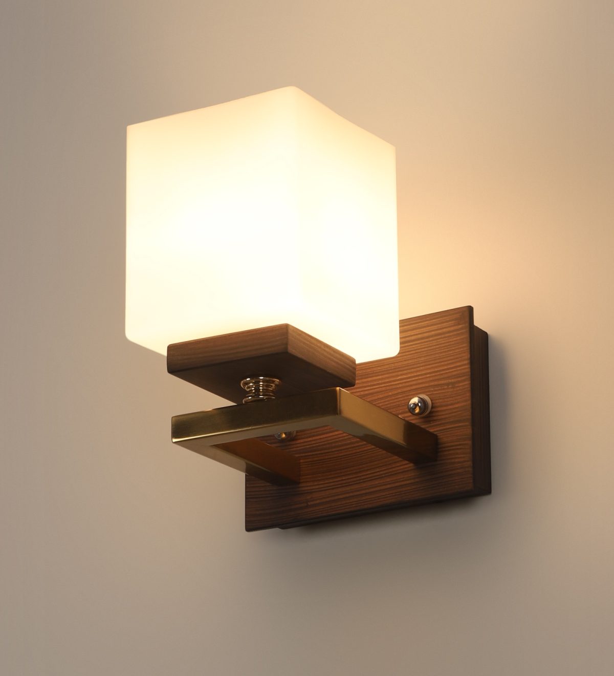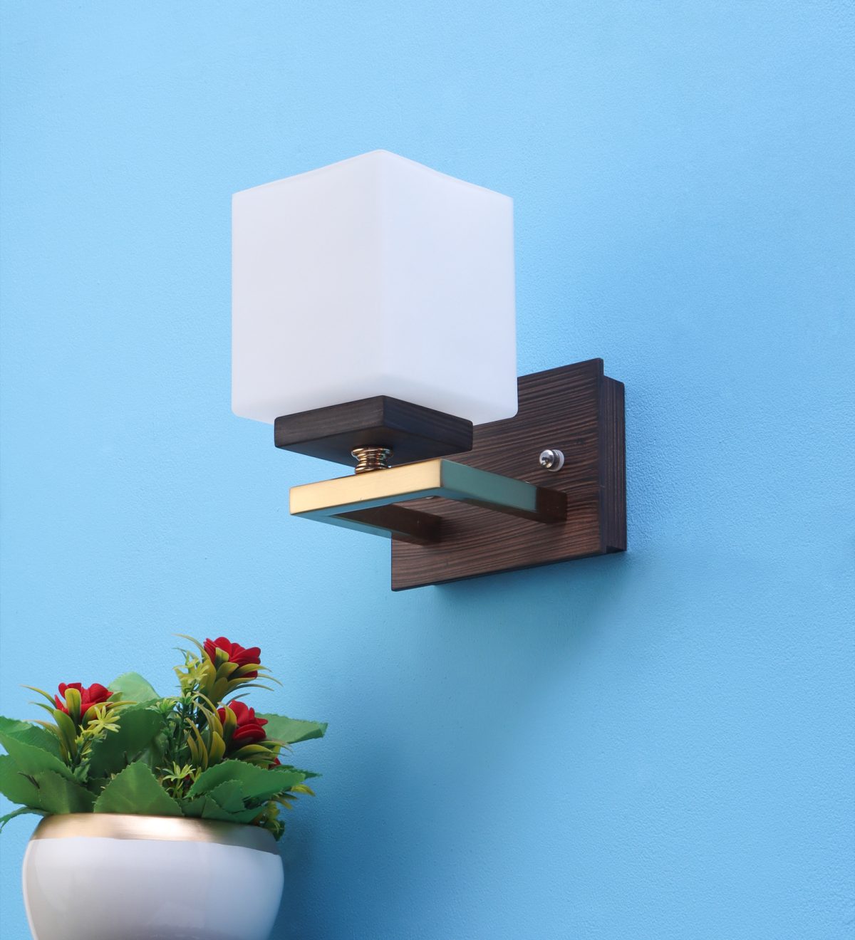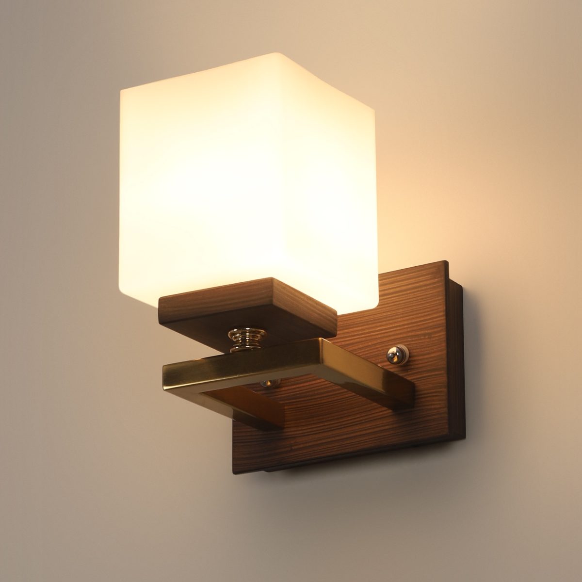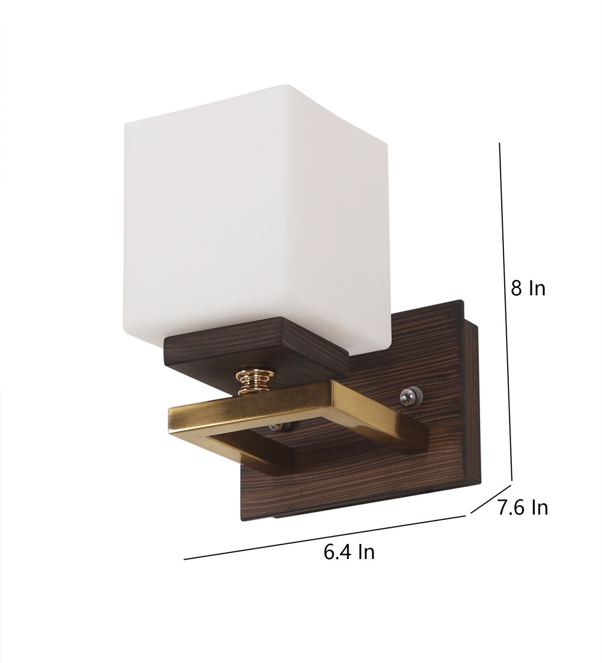 Modern dark brown (wood) finish single wall light made of wood, with a square cubical white glass. It is maintenance free, easy to remove glass and wash it, comes with an E27 holder, only the change of lamp is required, which is available locally everywhere. You can of course swap out the bulb for one that is dimmable, has a higher light output or a different color temperature. Application includes both residential and commercial premises wherever it matches with your interiors. Can be customized as per requirement. LAMPS NOT INCLUDED.