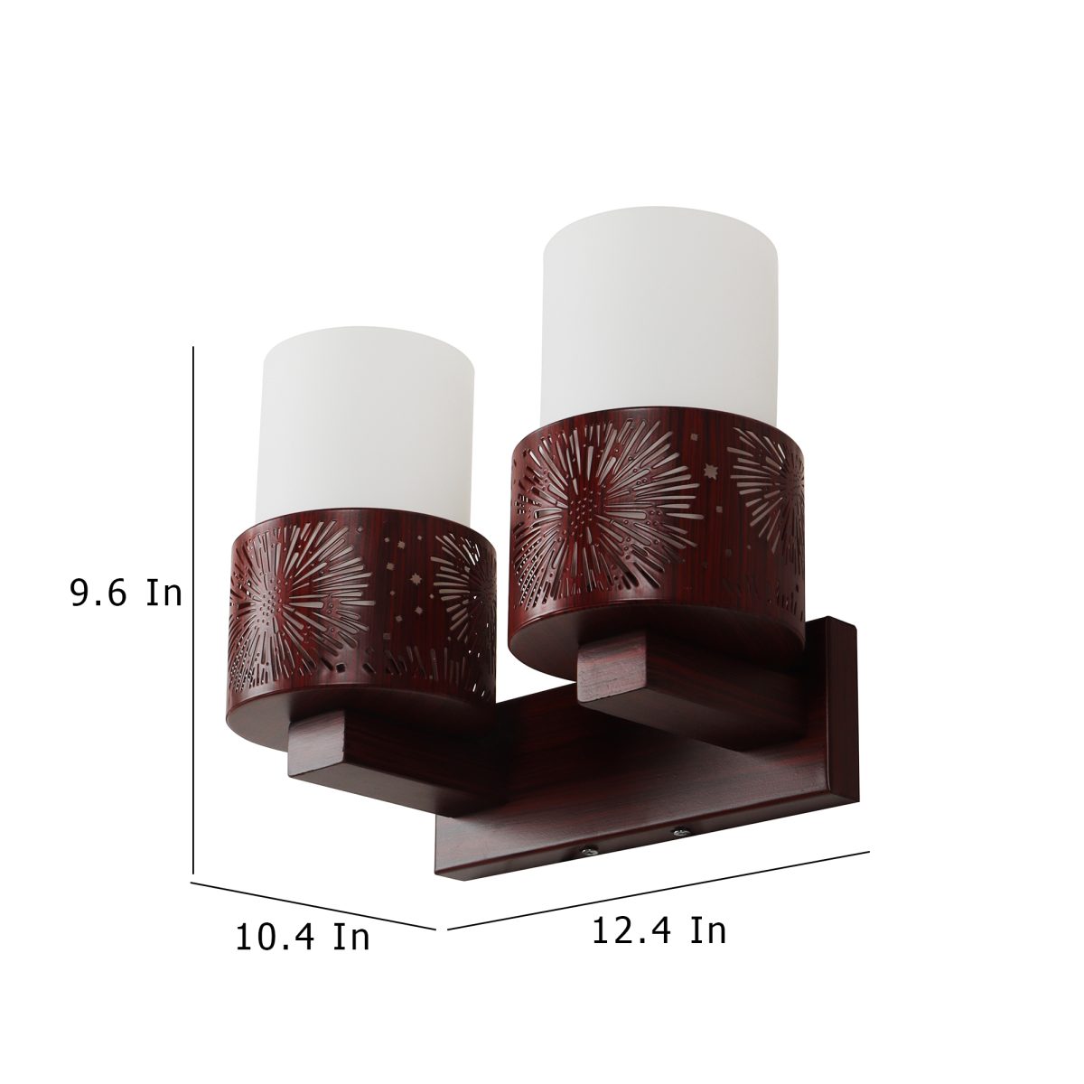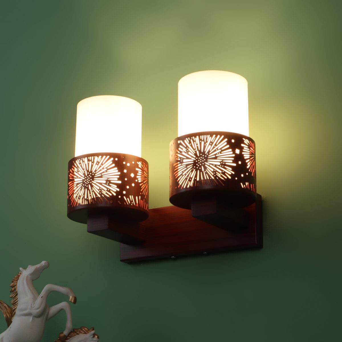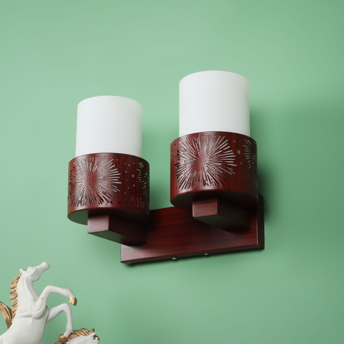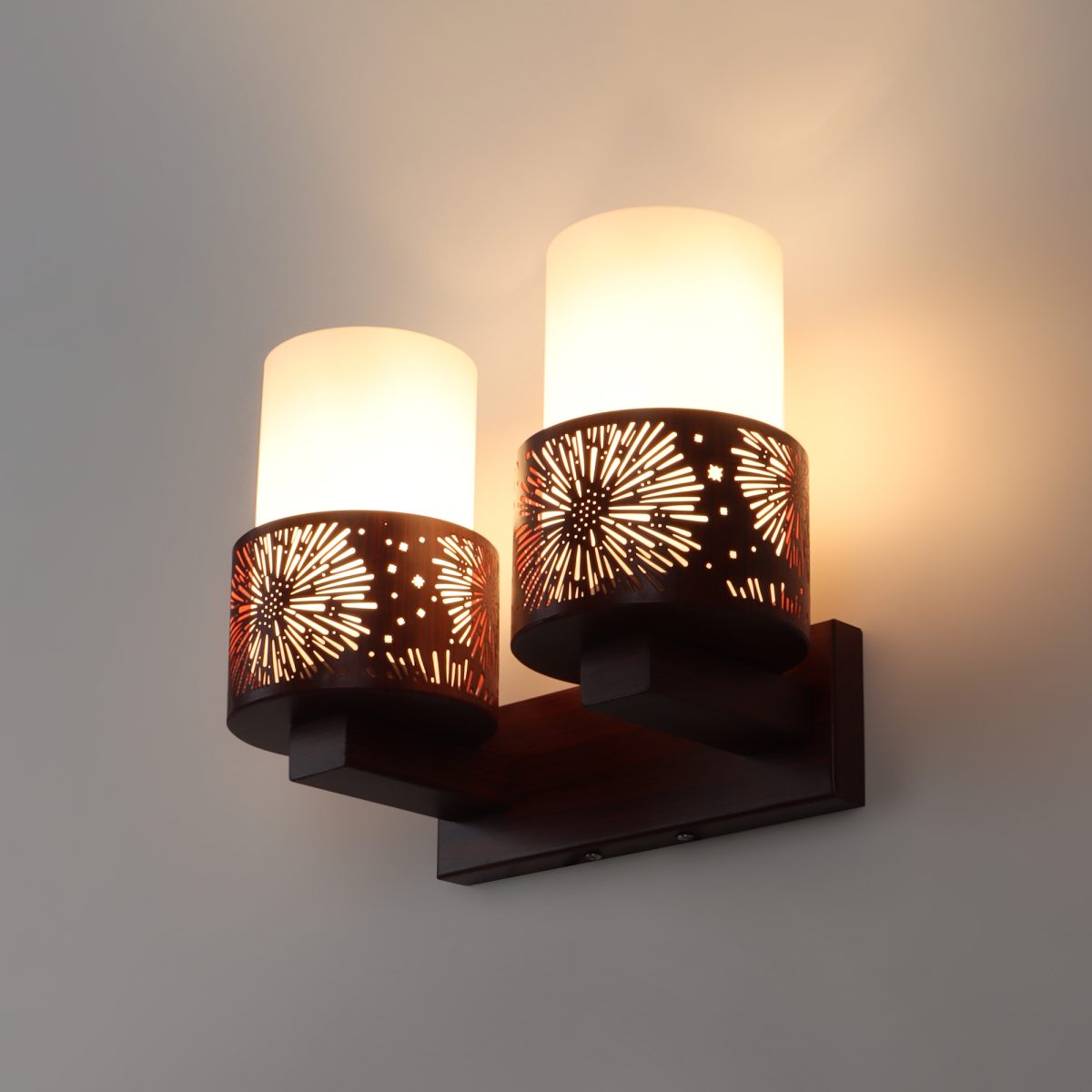 Brown (wood) finish, round long glasses with designer wooden cover, double wall light made of wood and mild steel. It is maintenance free, easy to remove glasses and wash them, comes with an E27 holder, only the change of lamp is required, which is available locally everywhere. Application includes both residential and commercial premises wherever it matches with your interiors. Can be customized as per requirement. LAMP NOT INCLUDED.