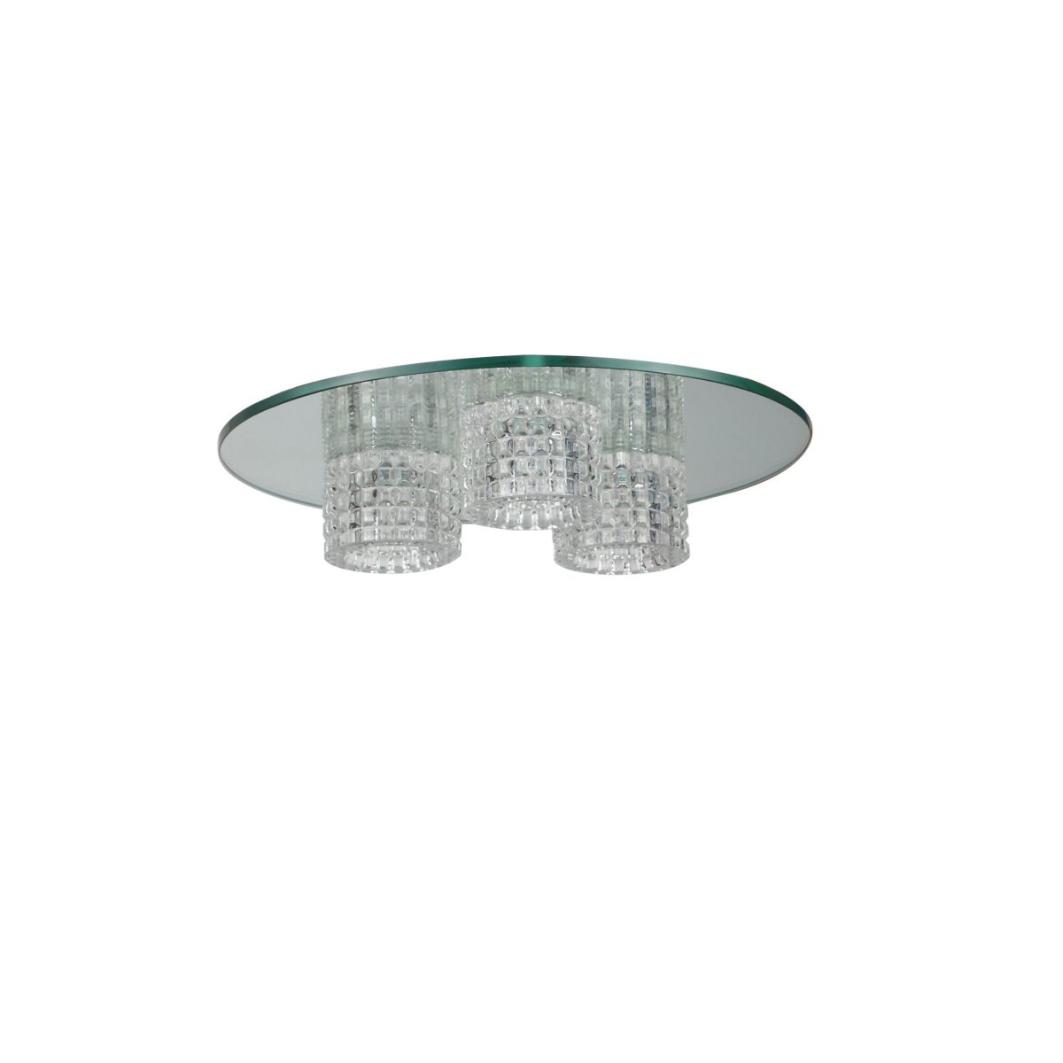 Ultra modern, premium, mild steel silver (chrome) finish, heavy crystal three glass mounted on a round plate made of glass. This is a fixed type ceiling in which the base plate is fixed to the ceiling with the help of straight clamp and screws. Comes with an G4 holder and inbuilt transformer. Matching variants in ceiling light – CL441, CL446, CH383. Matching wall light – ML302-1, ML302-2, ML302-3 LAMP INCLUDED.