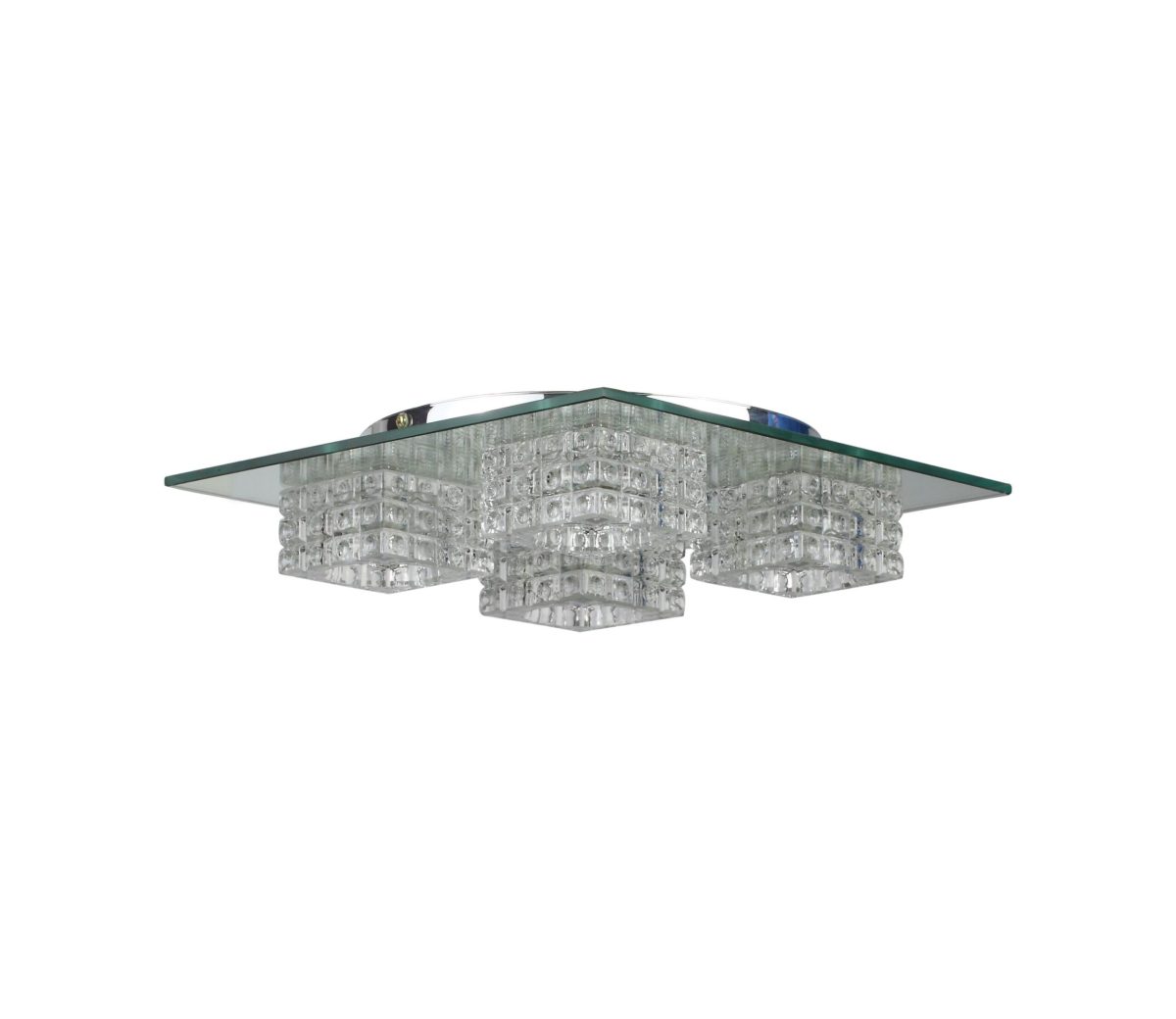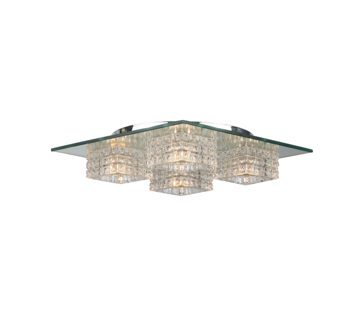 Ultra modern, premium, mild steel silver (chrome) finish, heavy crystal four glass mounted on a square plate made of glass. This is a fixed type ceiling in which the base plate is fixed to the ceiling with the help of straight clamp and screws. Comes with an G4 holder and inbuild transformer. Matching variants in ceiling light – CL442, CL447. Matching wall light – ML300-1, ML300-2, ML300-3 LAMP INCLUDED.