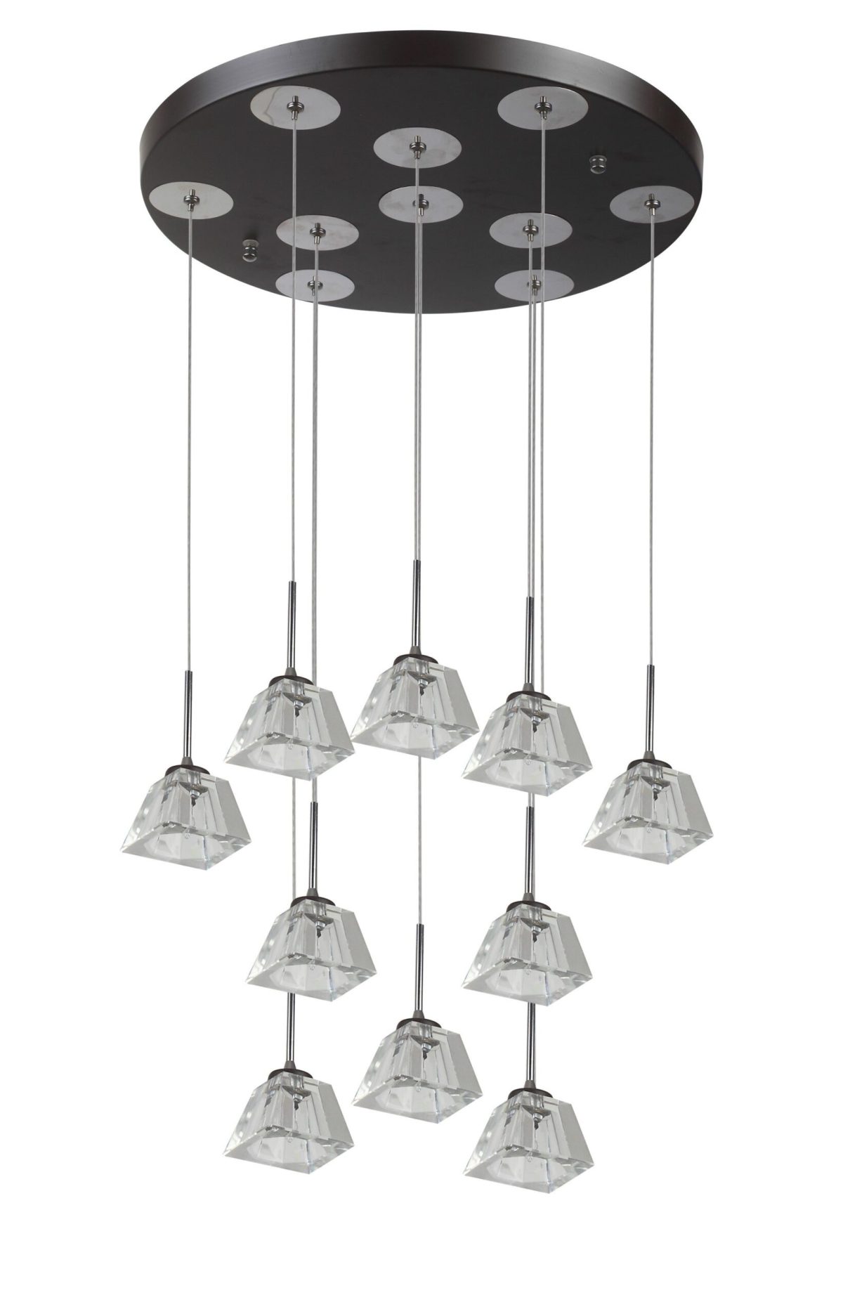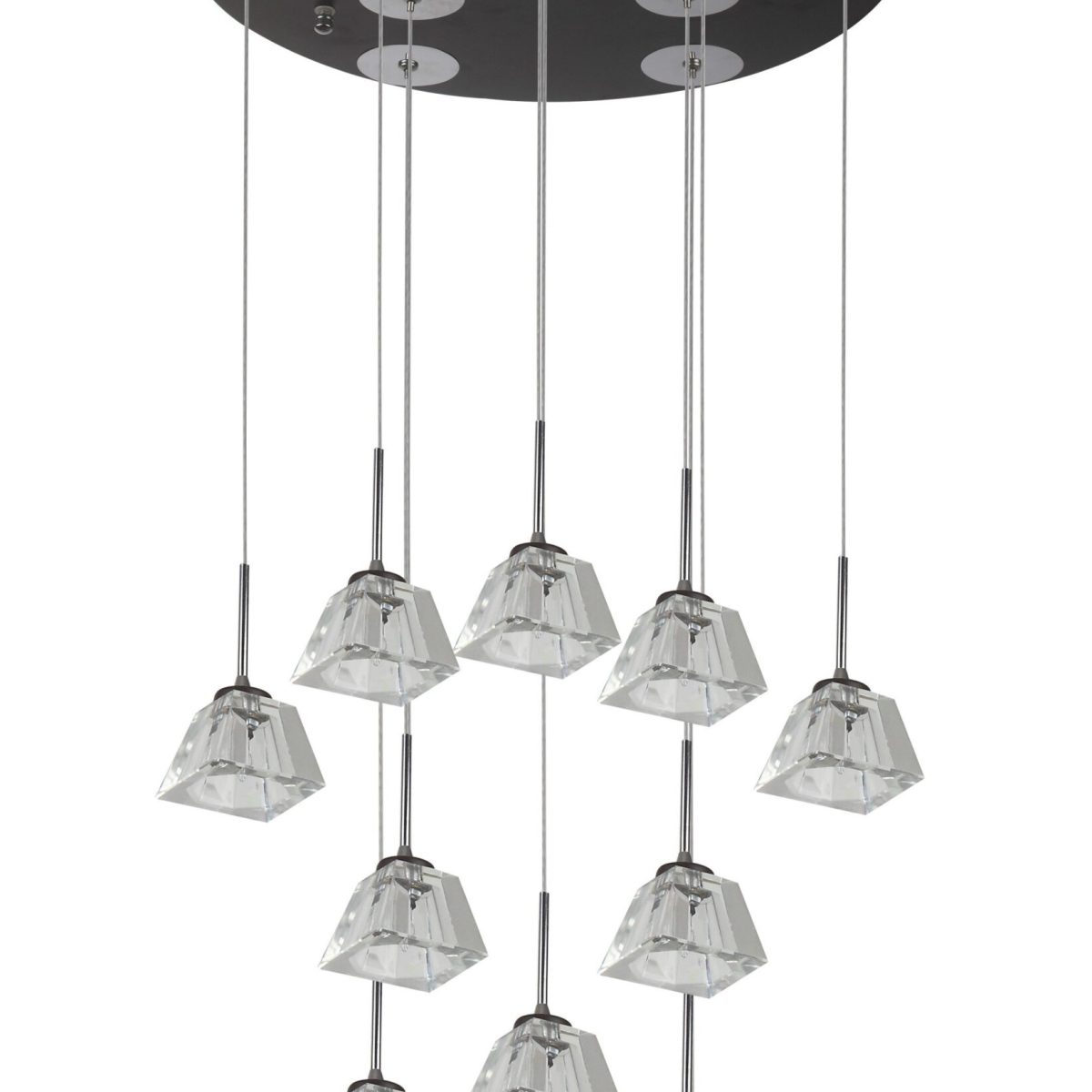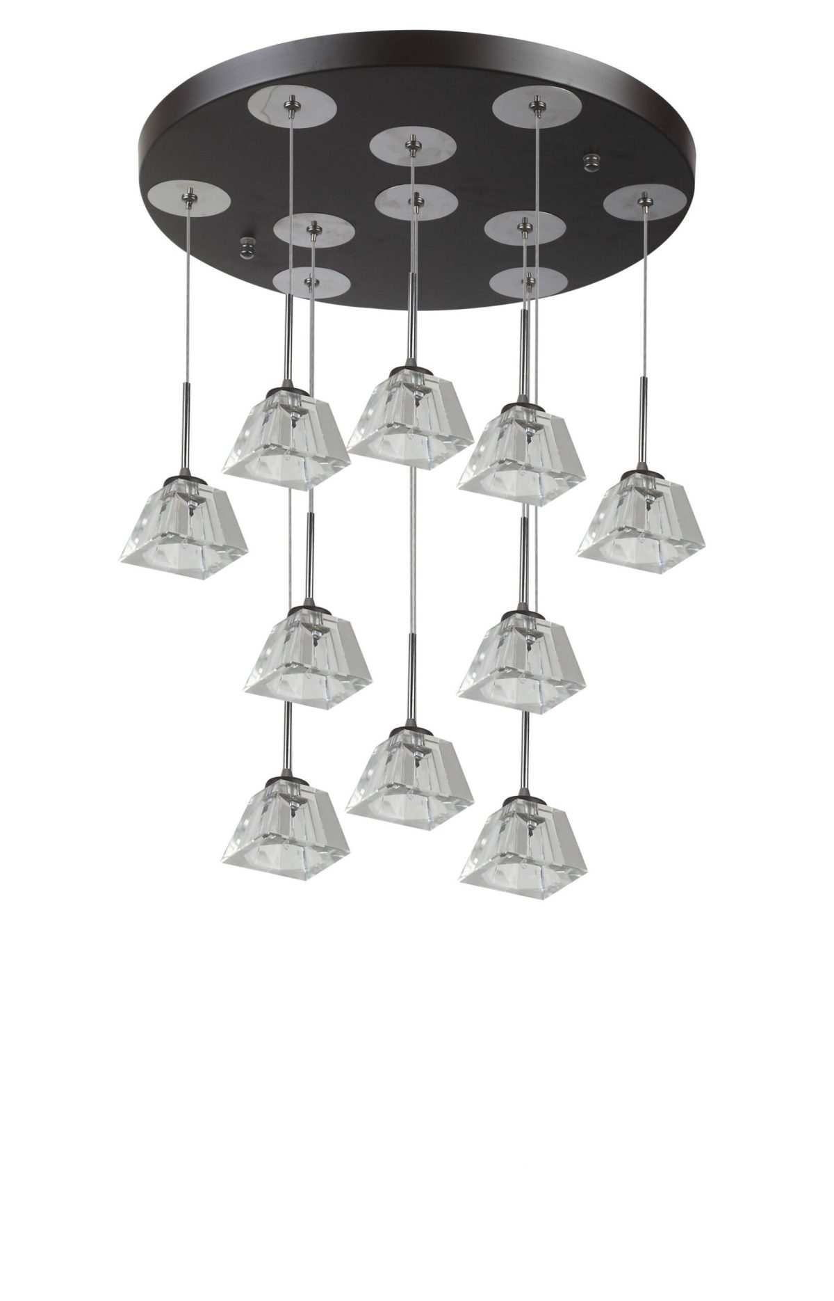 Ultra modern, premium, mild steel silver (chrome – wood) finish, heavy crystal ten glass hanging light. The suspension can be adjusted at time of installation to the desired height. Comes with an G4 holder and inbuilt transformer. Similar hanging variants with different number of lights – HL3982-6. Matching variants in wall light codes – ML314-1, ML314-2, ML314-3. Matching variants in ceiling light – CL439, CL444, CH379. LAMP INCLUDED.