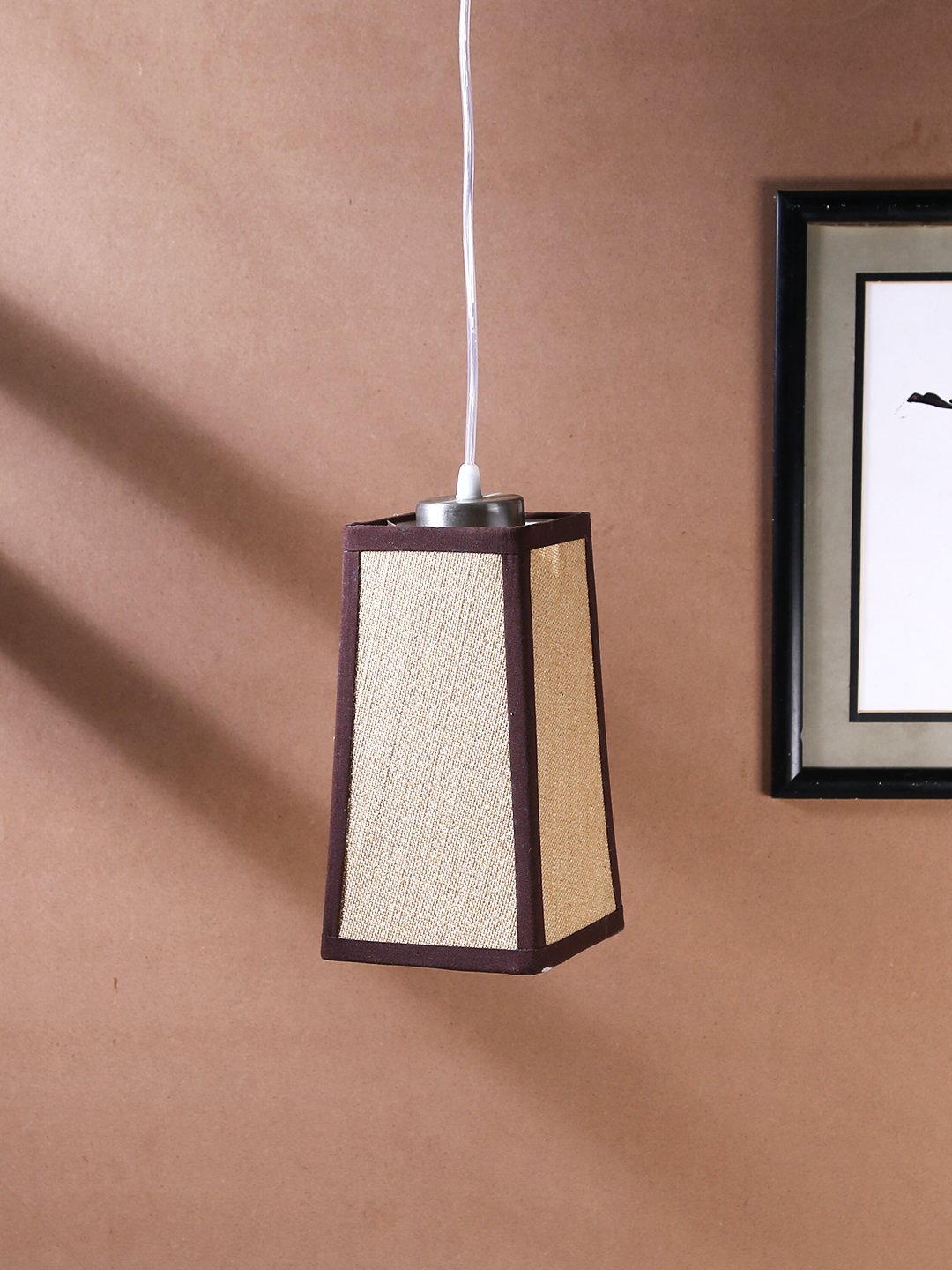 Brown single hanging light made of fabric shade and mild steel attachment in Silver (satin nickel) finish. The suspension can be adjusted at time of installation to the desired height. It is maintenance free, comes with an E27 holder, only the change of lamp is required, which is available locally everywhere. Application includes both residential and commercial premises wherever it matches with your interiors. Available in big size with code HL3719. Can be customized as per requirement in case of bulk quantities. Lamp not included.