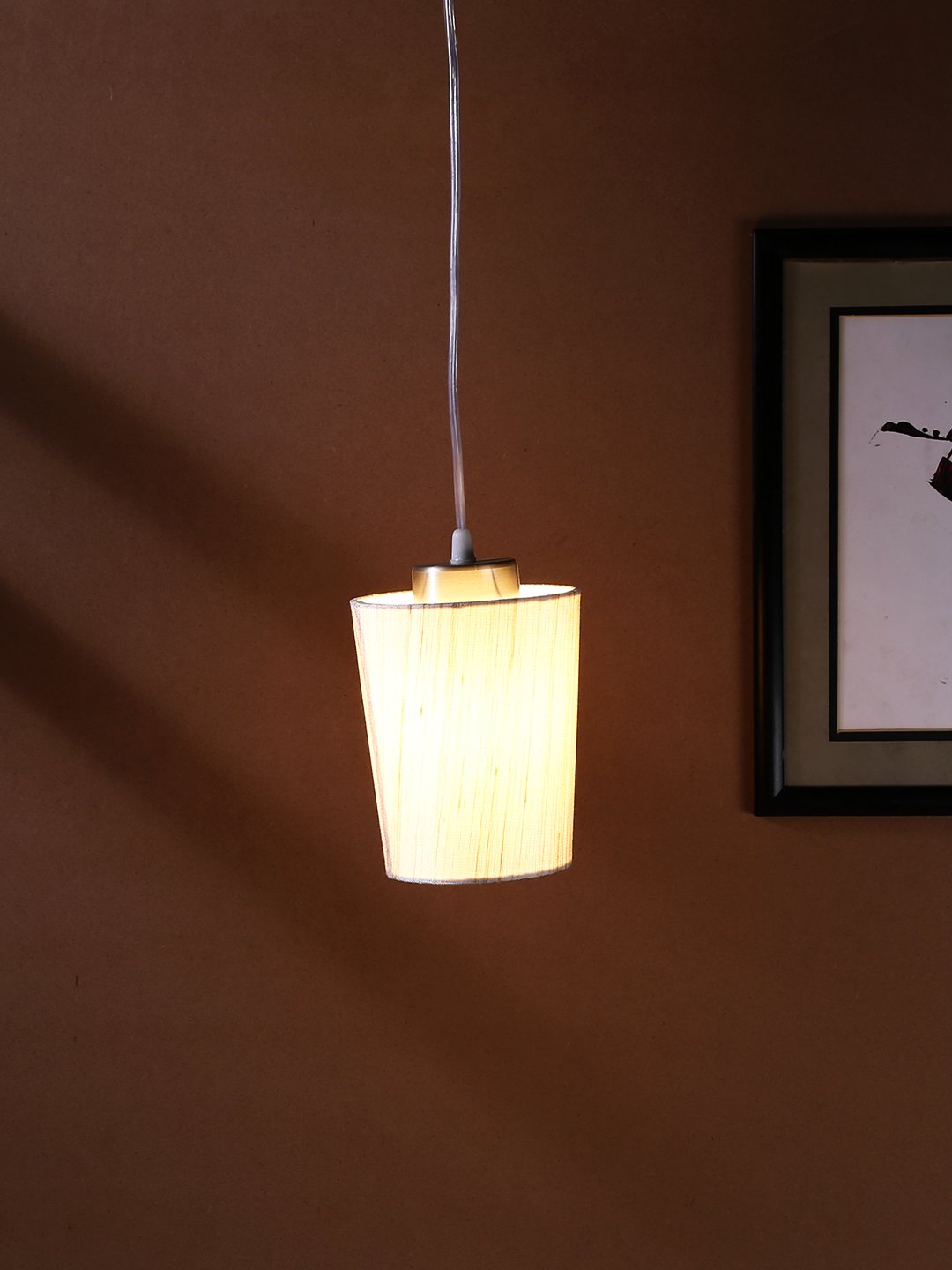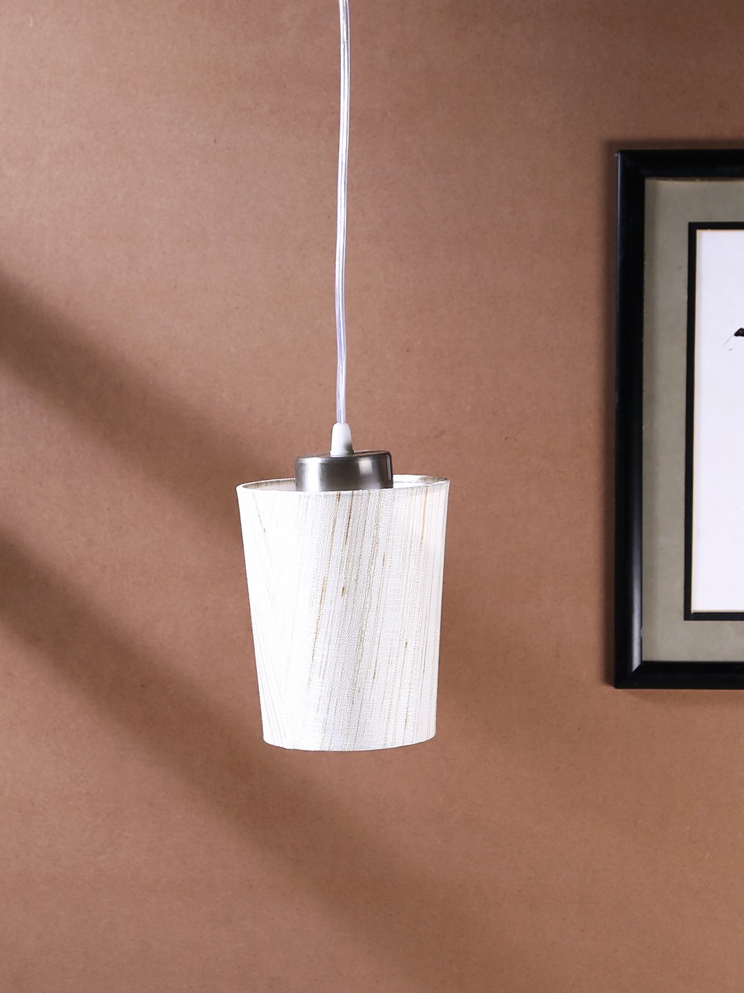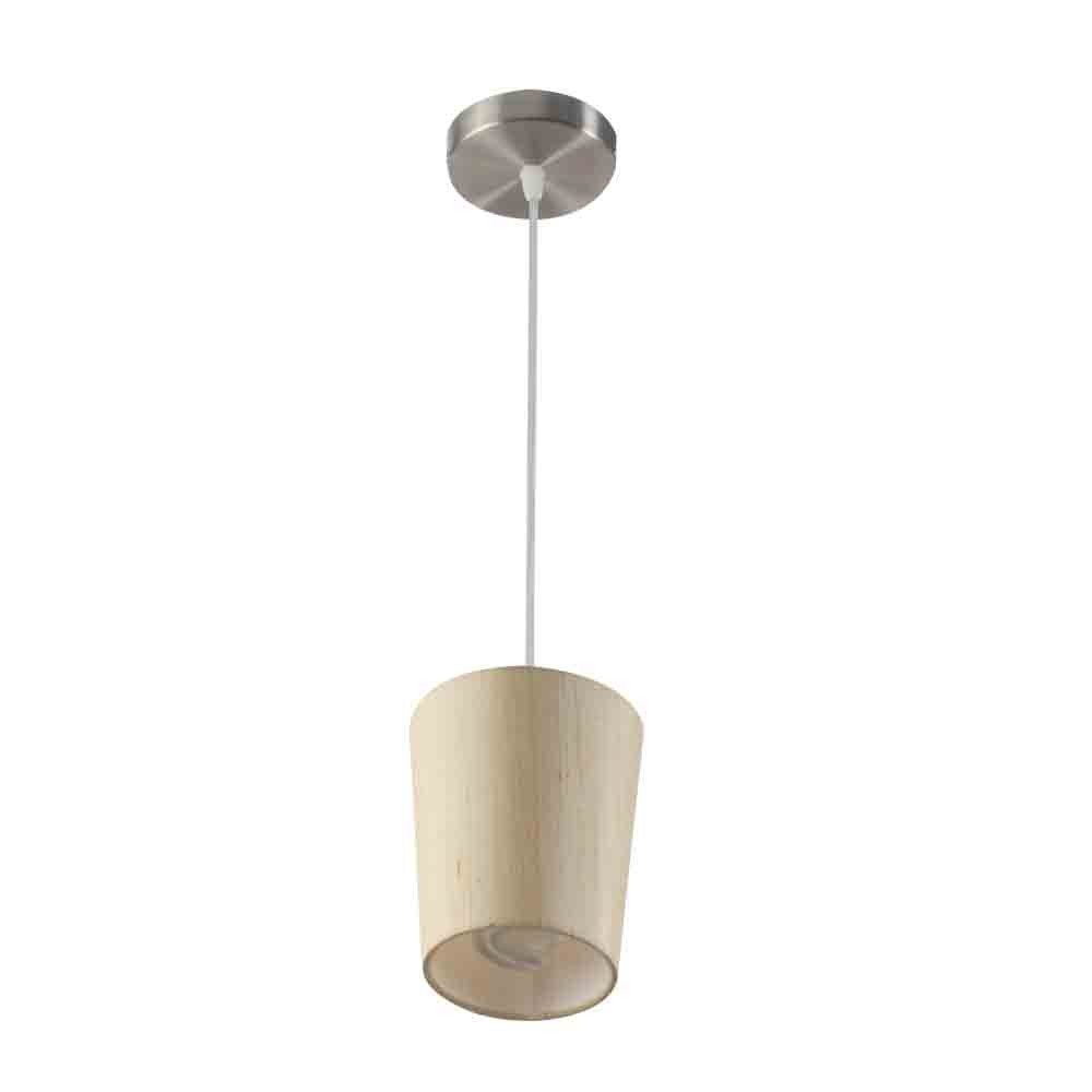 Off white single hanging light with conical small fabric shade and mild steel attachment in Silver (satin nickel) finish. The suspension can be adjusted at time of installation to the desired height. It is maintenance free, comes with an E27 holder, only the change of lamp is required, which is available locally everywhere. Application includes both residential and commercial premises wherever it matches with your interiors. Other variations with different color – HL3735, HL3737. Can be customized as per requirement in case of bulk quantities. Lamp not included.