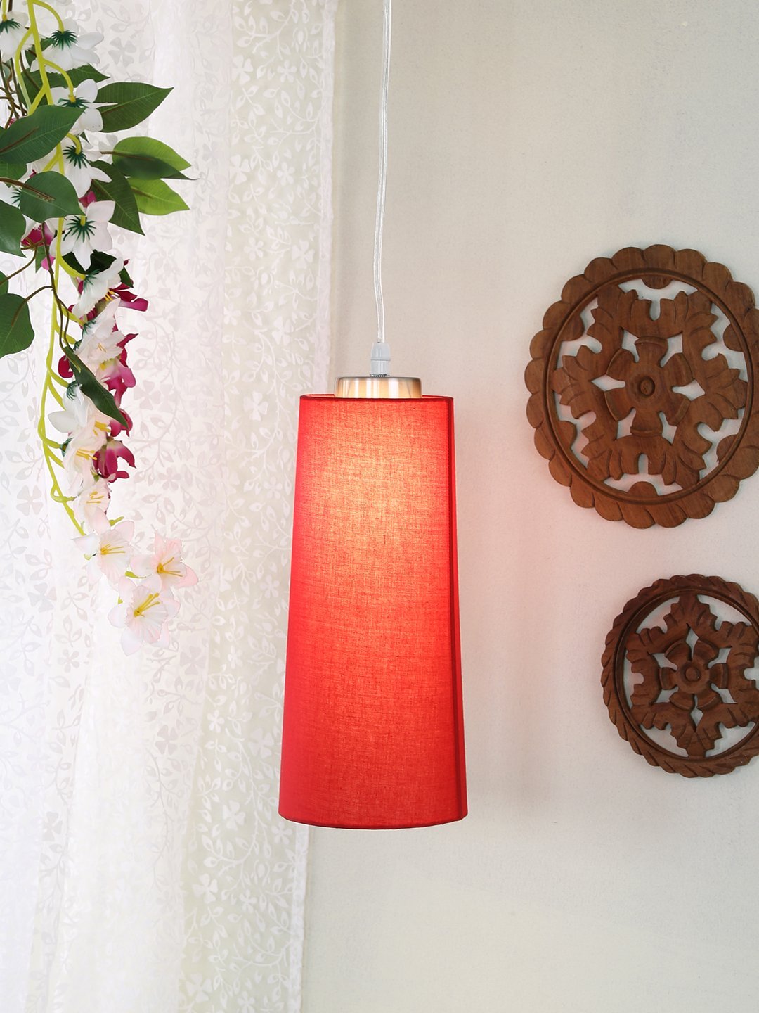 Red hanging light with conical long fabric shade and mild steel attachment in Silver (satin nickel) finish. The suspension can be adjusted at time of installation to the desired height. It is maintenance free, comes with an E27 holder, only the change of lamp is required, which is available locally everywhere. Application includes both residential and commercial premises wherever it matches with your interiors. Other variations with different color – HL3739, HL3740, HL3741, HL3742, HL3743,HL3744, HL3745, HL3746, HL3747. Can be customized as per requirement in case of bulk quantities. Lamp not included.