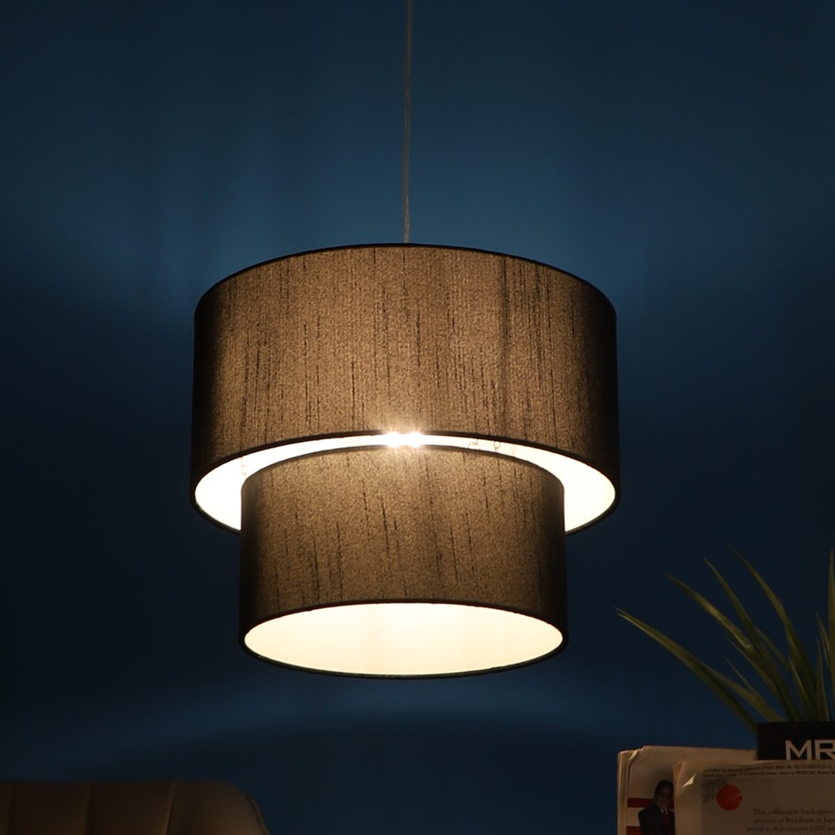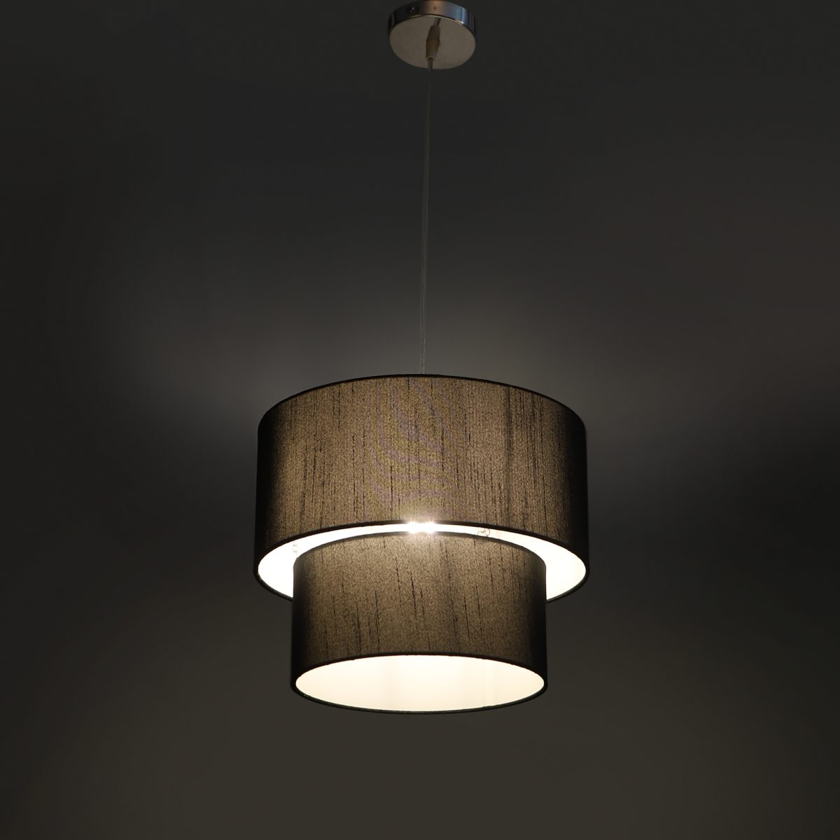 Black black hanging light with round fabric shade in two sizes and mild steel attachment in Silver (satin nickel) finish. The suspension can be adjusted at time of installation to the desired height. It is maintenance free, comes with an E27 holder, only the change of lamp is required, which is available locally everywhere. Application includes both residential and commercial premises wherever it matches with your interiors. Other variations with different color – HL3790, HL3791, HL3793, HL3794, HL3795. Can be customized as per requirement in case of bulk quantities. Lamp not included.
