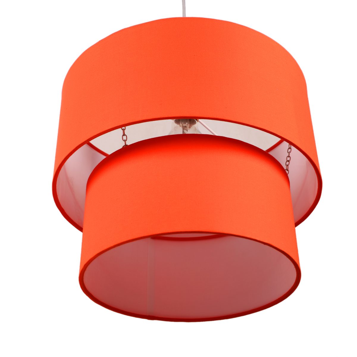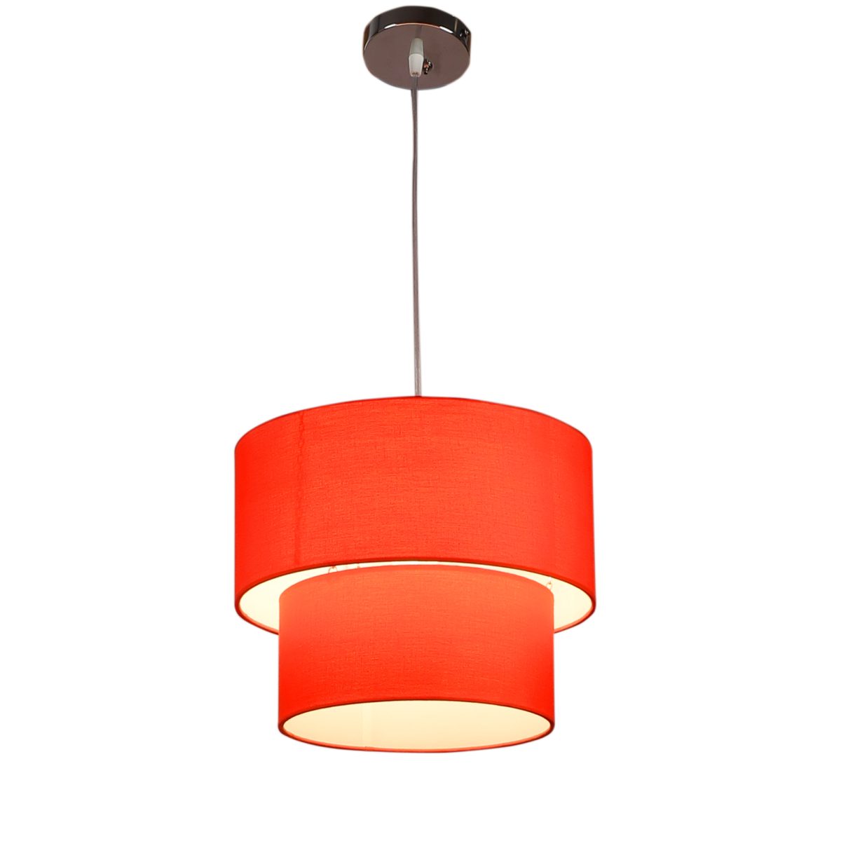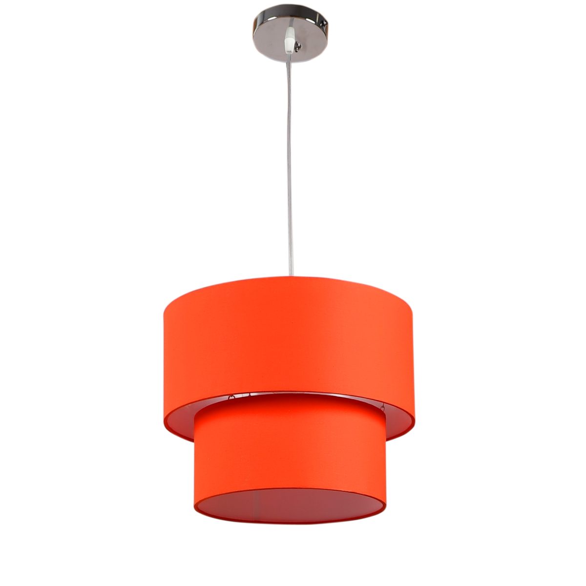 Orange orange hanging light with round fabric shade in two sizes and mild steel attachment in Silver (satin nickel) finish. The suspension can be adjusted at time of installation to the desired height. It is maintenance free, comes with an E27 holder, only the change of lamp is required, which is available locally everywhere. Application includes both residential and commercial premises wherever it matches with your interiors. Other variations with different color – HL3790, HL3791, HL3792, HL3793, HL3795. Can be customized as per requirement in case of bulk quantities. Lamp not included.
