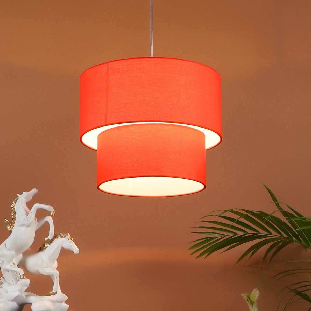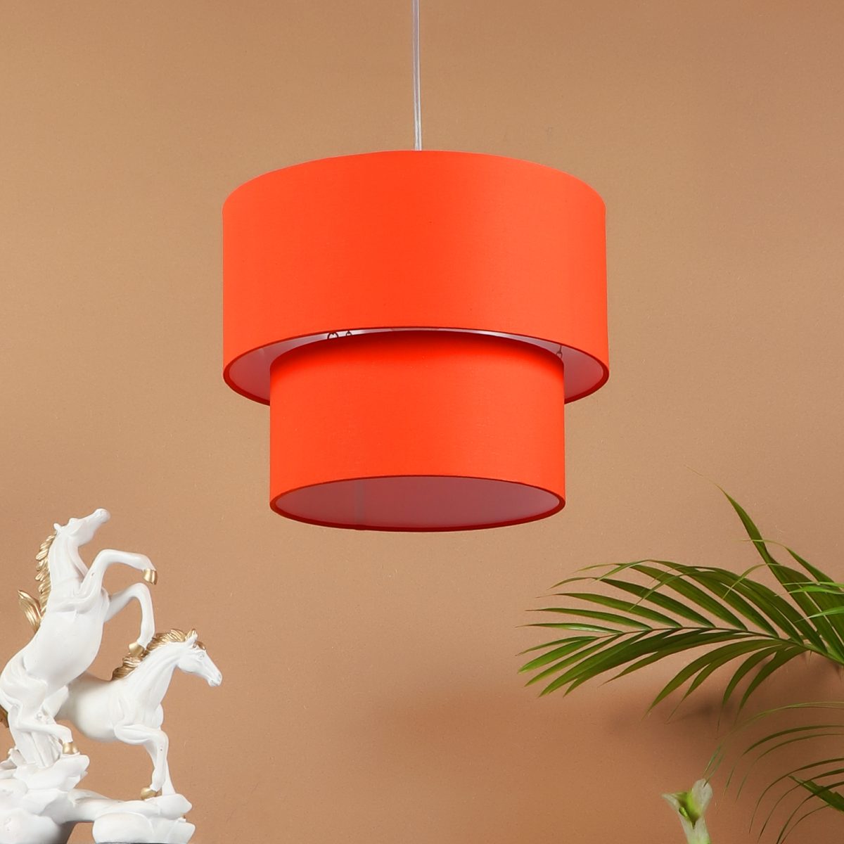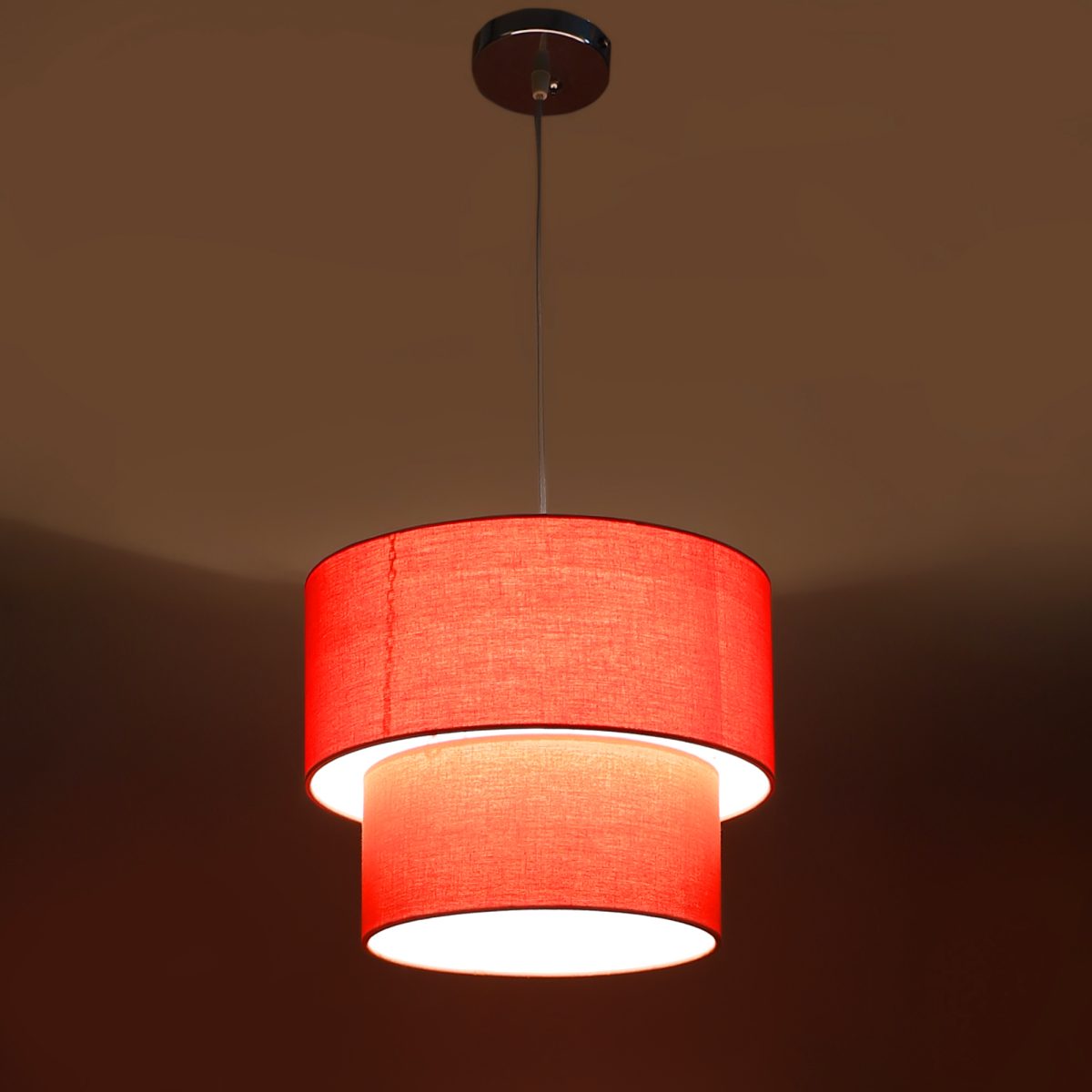 Orange orange hanging light with round fabric shade in two sizes and mild steel attachment in Silver (satin nickel) finish. The suspension can be adjusted at time of installation to the desired height. It is maintenance free, comes with an E27 holder, only the change of lamp is required, which is available locally everywhere. Application includes both residential and commercial premises wherever it matches with your interiors. Other variations with different color – HL3790, HL3791, HL3792, HL3793, HL3795. Can be customized as per requirement in case of bulk quantities. Lamp not included.