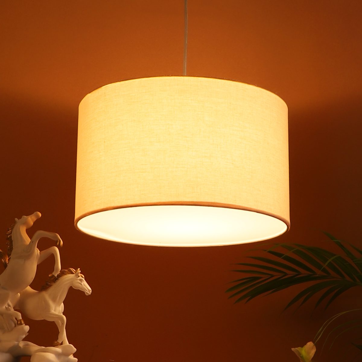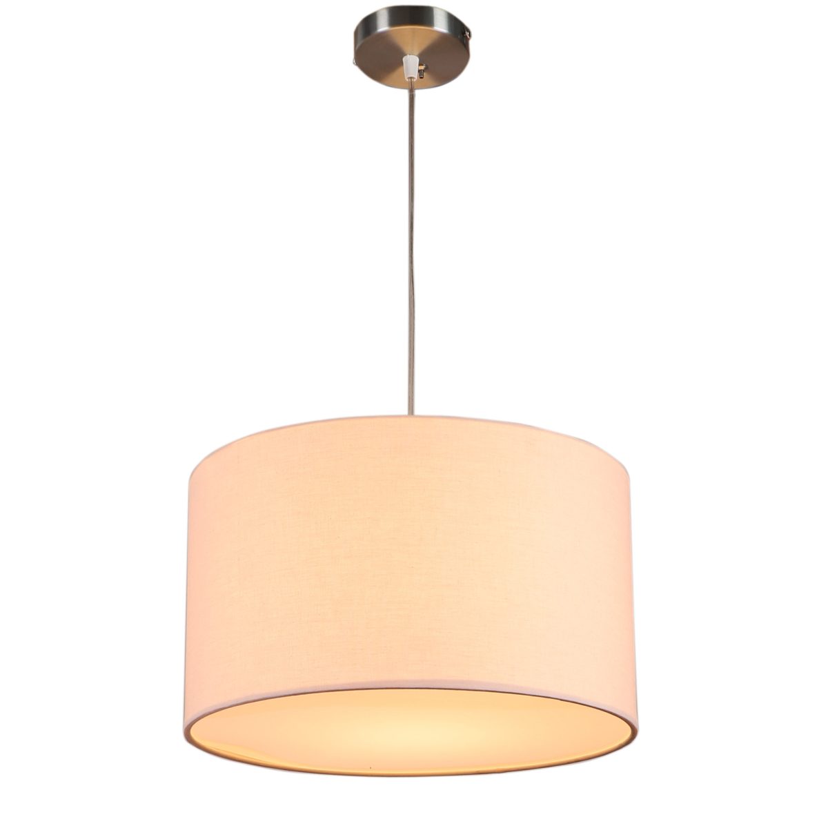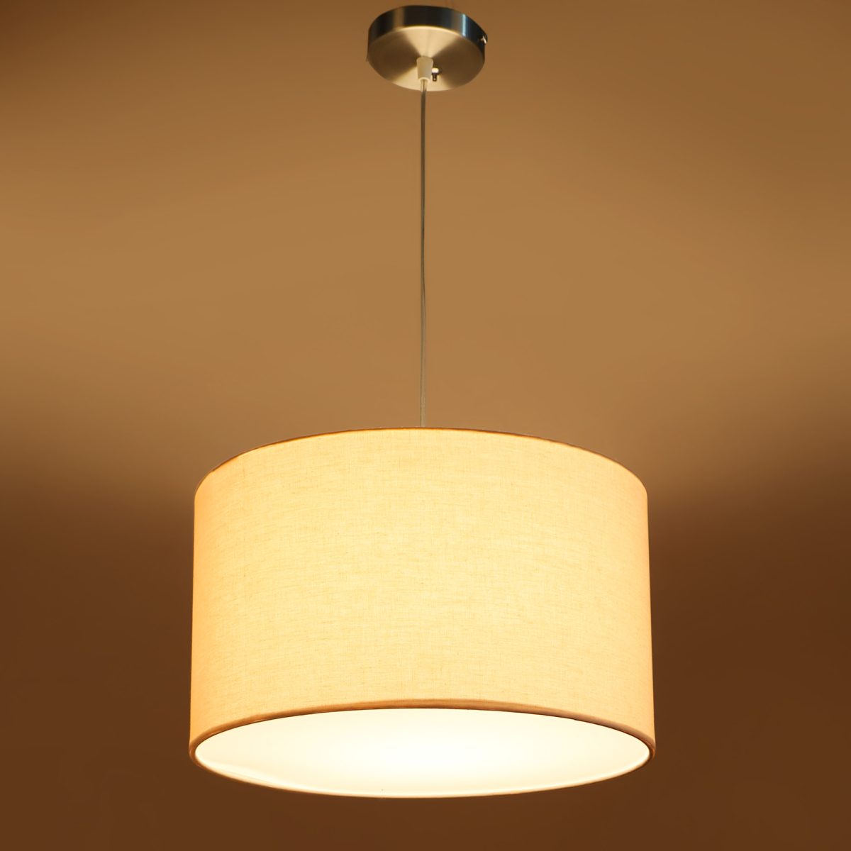 Cream (off white) hanging light with big round fabric shade covered from bottom and mild steel attachment in Silver (satin nickel) finish. The suspension can be adjusted at time of installation to the desired height. It is maintenance free, comes with an E27 holder, only the change of lamp is required, which is available locally everywhere. Application includes both residential and commercial premises wherever it matches with your interiors. Other variations with different color – HL4040, HL4041. Can be customized as per requirement in case of bulk quantities. Lamp not included.