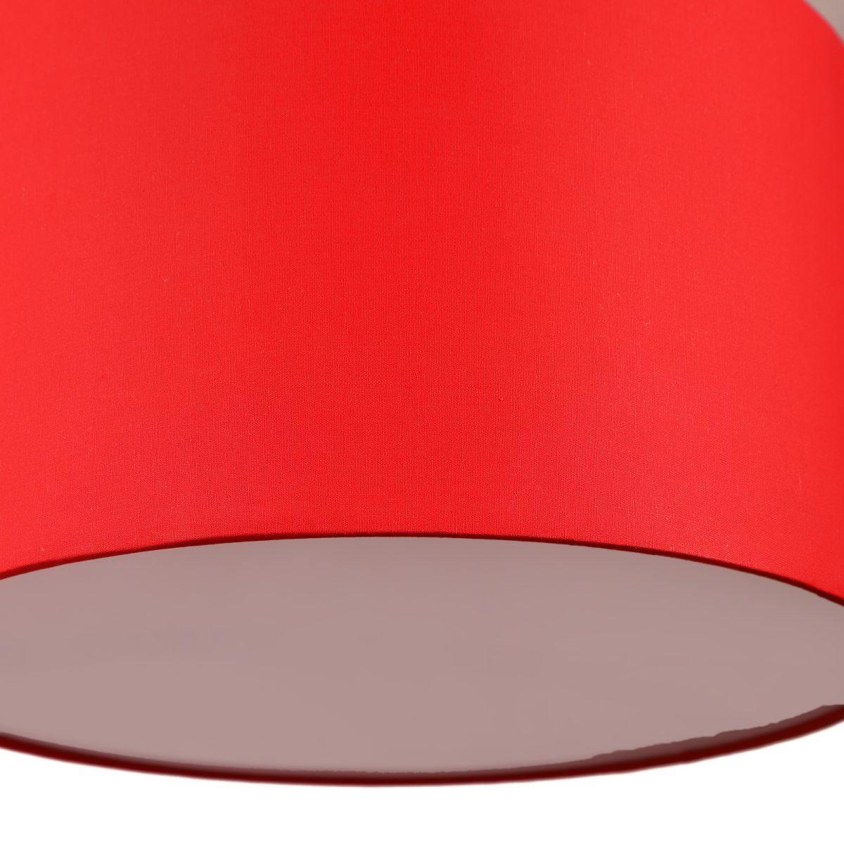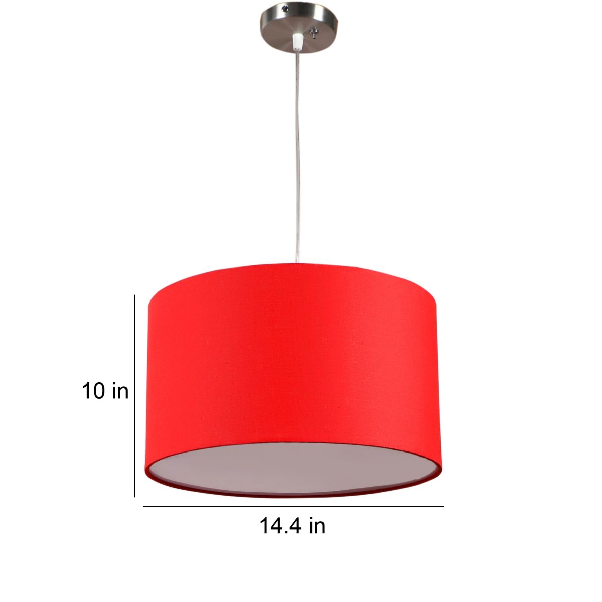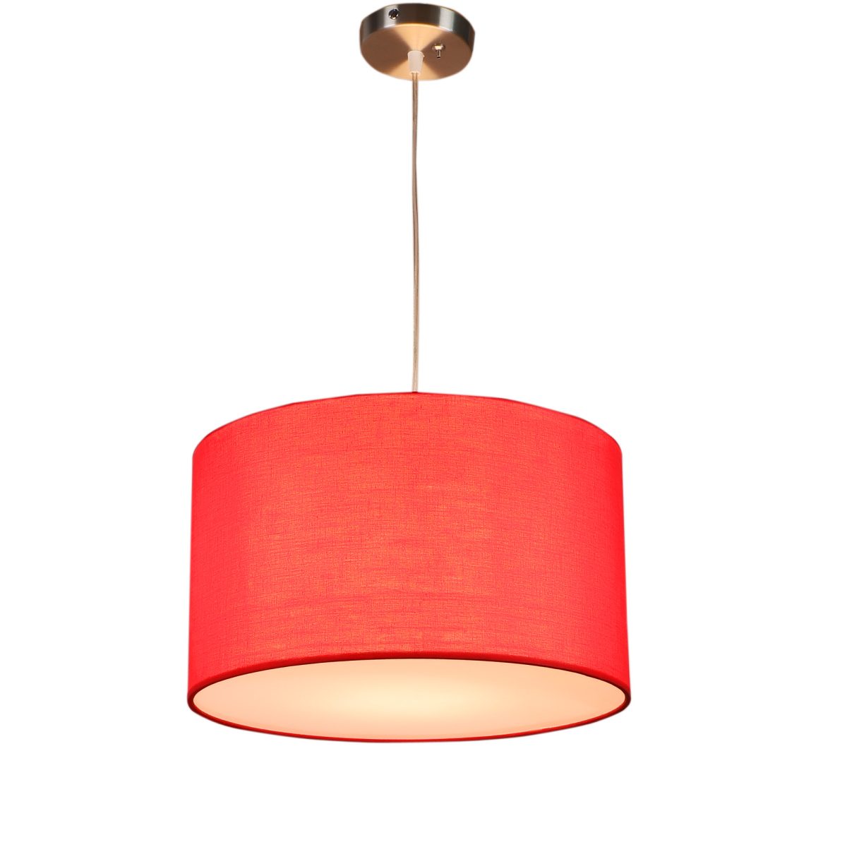 Red hanging light with big round fabric shade covered from bottom and mild steel attachment in Silver (satin nickel) finish. The suspension can be adjusted at time of installation to the desired height. It is maintenance free, comes with an E27 holder, only the change of lamp is required, which is available locally everywhere. Application includes both residential and commercial premises wherever it matches with your interiors. Other variations with different color -HL4039, HL4041. Can be customized as per requirement in case of bulk quantities. Lamp not included.