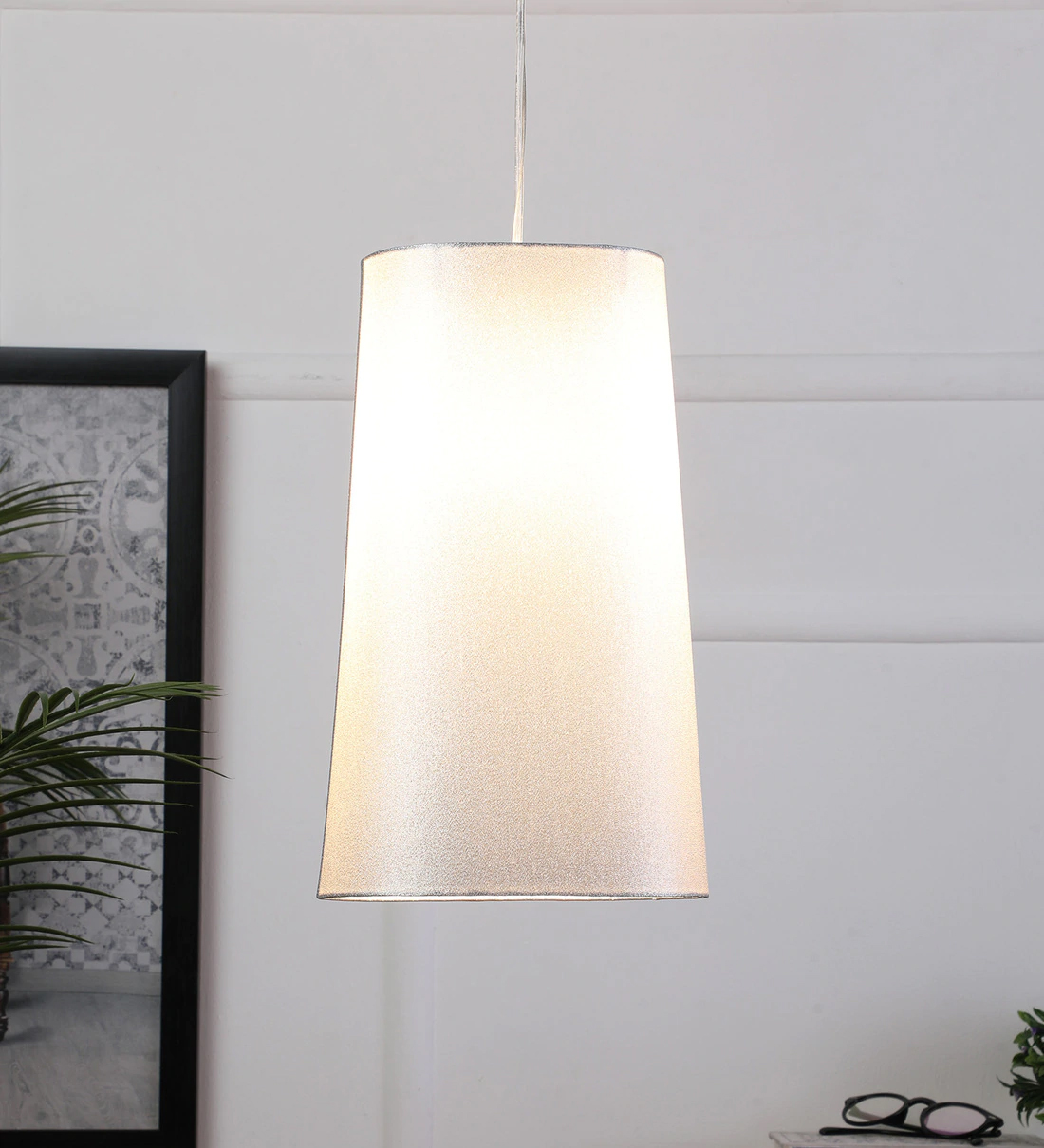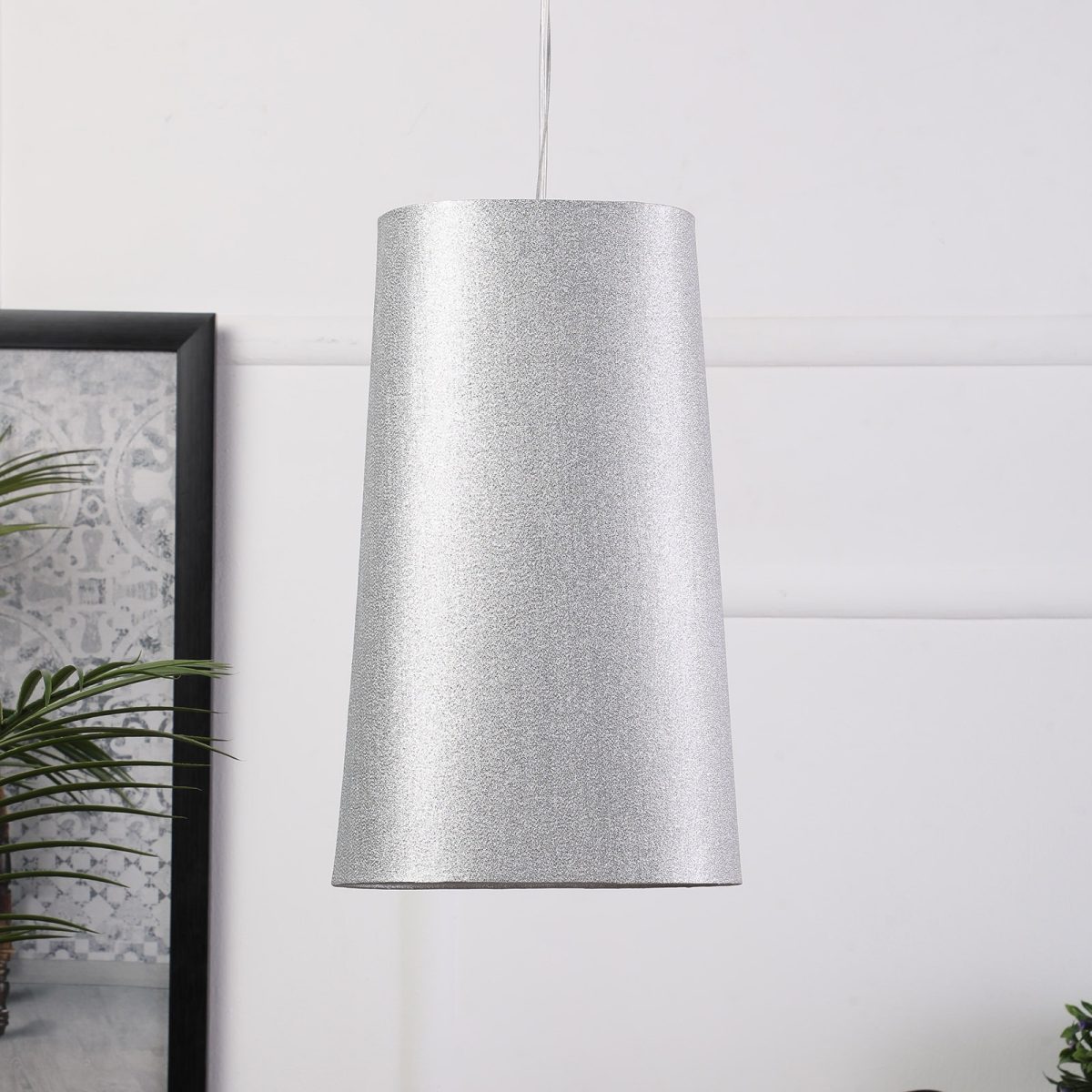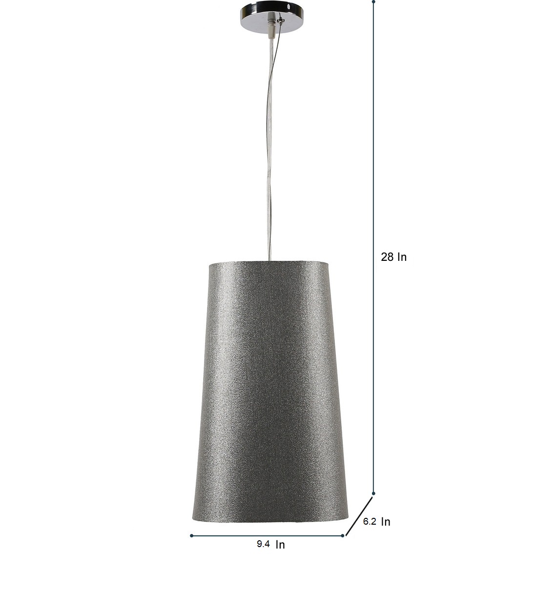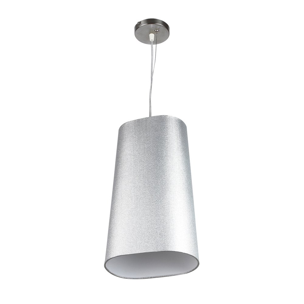 Silver hanging light with oval long fabric shade and mild steel attachment in Silver (satin nickel) finish. The suspension can be adjusted at time of installation to the desired height. Extremely good for hotel rooms when installed with matching wall light. It is maintenance free, comes with an E27 holder, only the change of lamp is required, which is available locally everywhere. Application includes both residential and commercial premises wherever it matches with your interiors. Other variations with different color – HL5067, HL5069, HL5070, HL5071, HL5072, HL5073. Matching wall lights – WL2415, WL2416, WL2417, WL2418, WL2419, WL2420. Can be customized as per requirement in case of bulk quantities. Lamp not included.