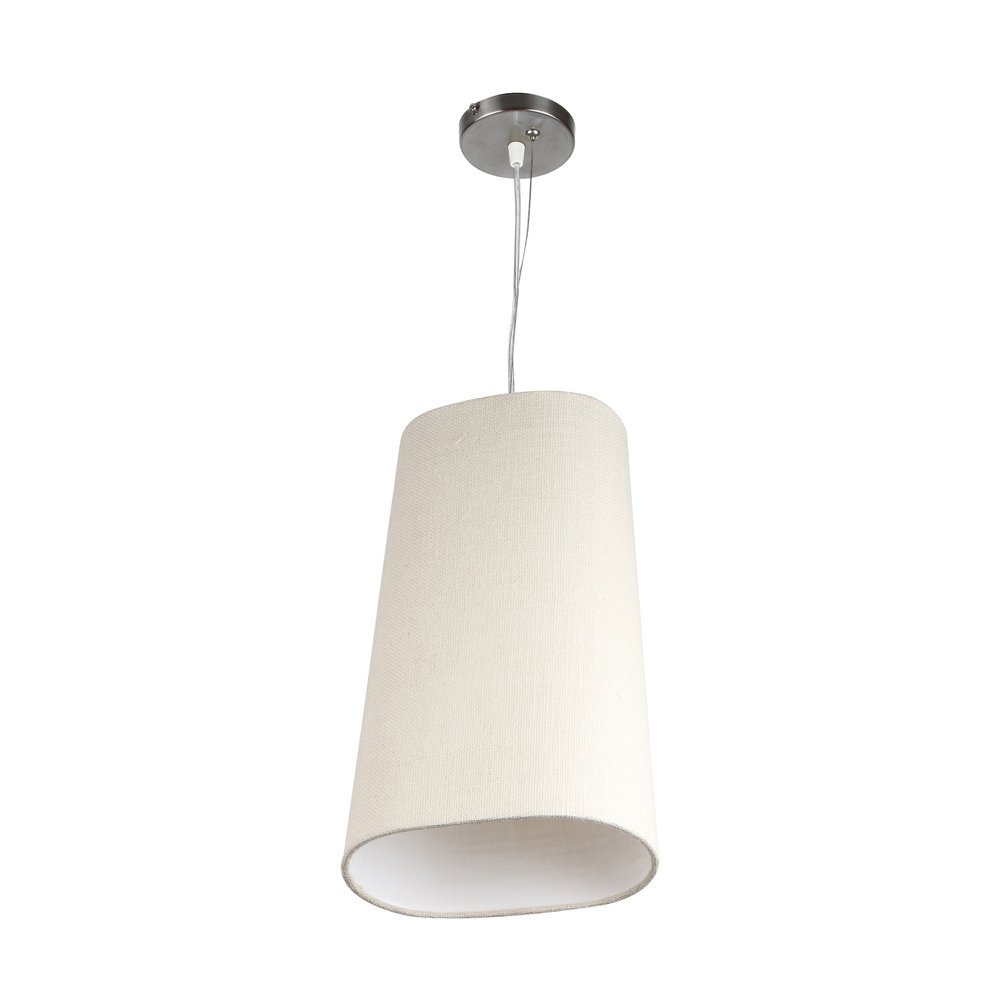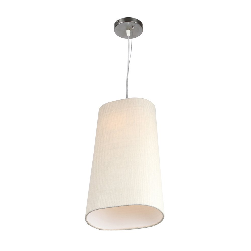 Cream (off – white) hanging light with oval long fabric shade and mild steel attachment in Silver (satin nickel) finish. The suspension can be adjusted at time of installation to the desired height. Extremely good for hotel rooms when installed with matching wall light. It is maintenance free, comes with an E27 holder, only the change of lamp is required, which is available locally everywhere. Application includes both residential and commercial premises wherever it matches with your interiors. Other variations with different color – HL5067, HL5068, HL5069, HL5071, HL5072, HL5073. Matching wall lights – WL2415, WL2416, WL2417, WL2418, WL2419, WL2420. Can be customized as per requirement in case of bulk quantities. Lamp not included.