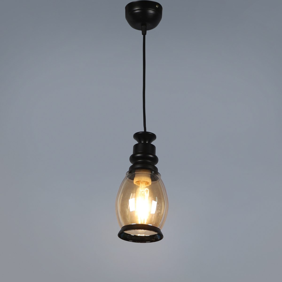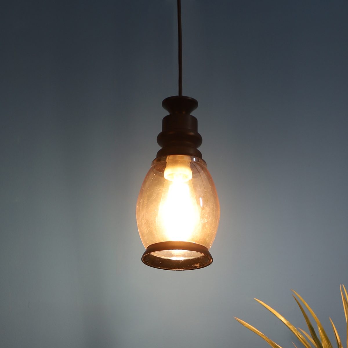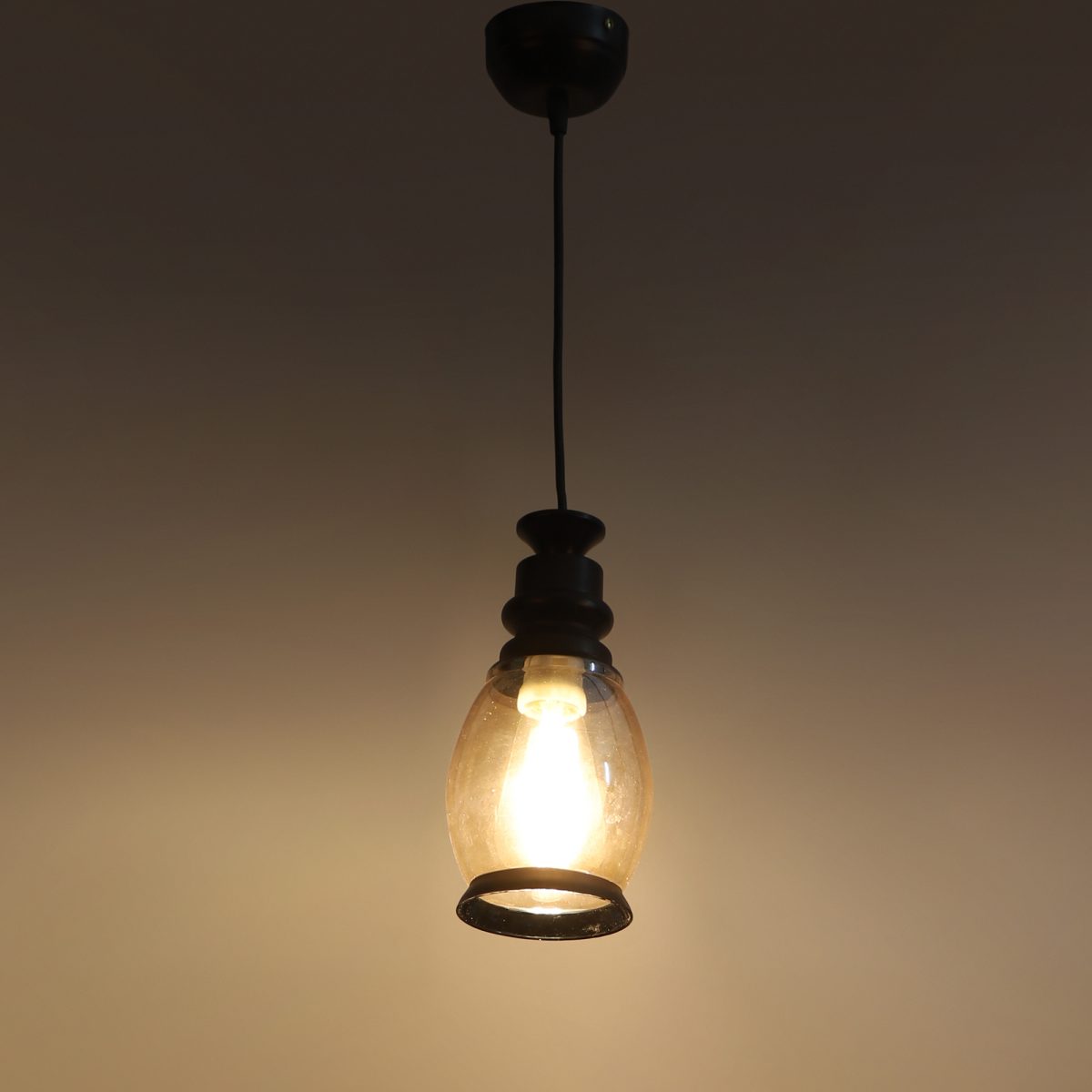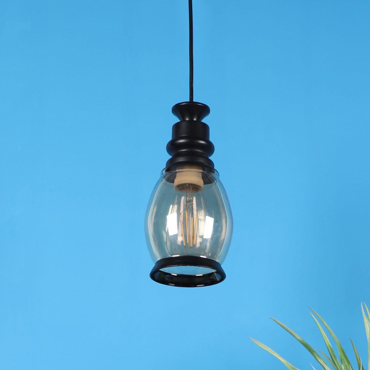 Powder coated black designer, modern, mild steel single hanging light in campaign glass. The suspension can be adjusted at time of installation to the desired height. It is maintenance free, comes with an E27 holder, only the change of lamp is required, which is available locally everywhere. LED filament lamp is recommended to enhance its beauty. Application includes both residential and commercial premises wherever it matches with your interiors. Can be customized as per requirement in case of bulk quantities. Lamp not included.