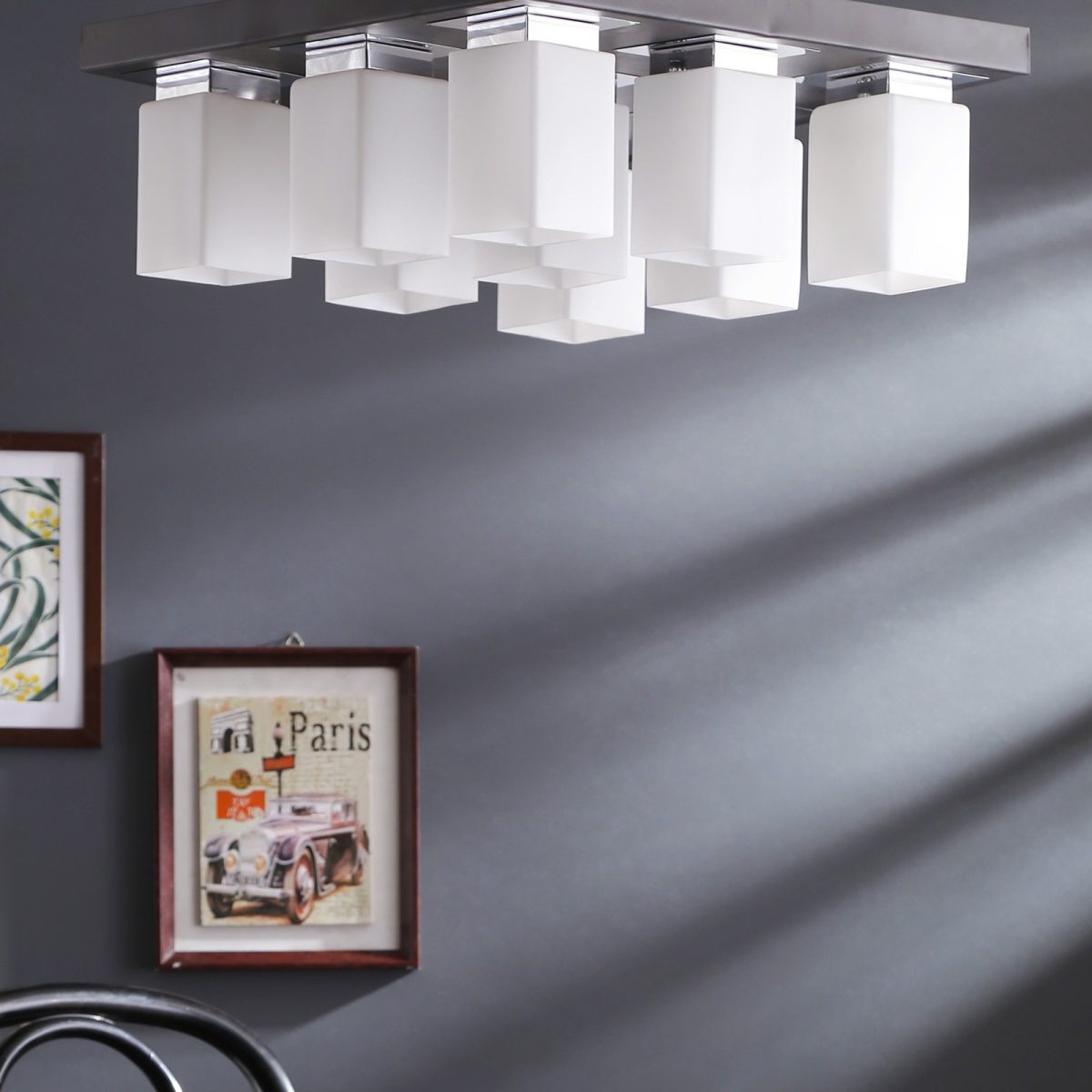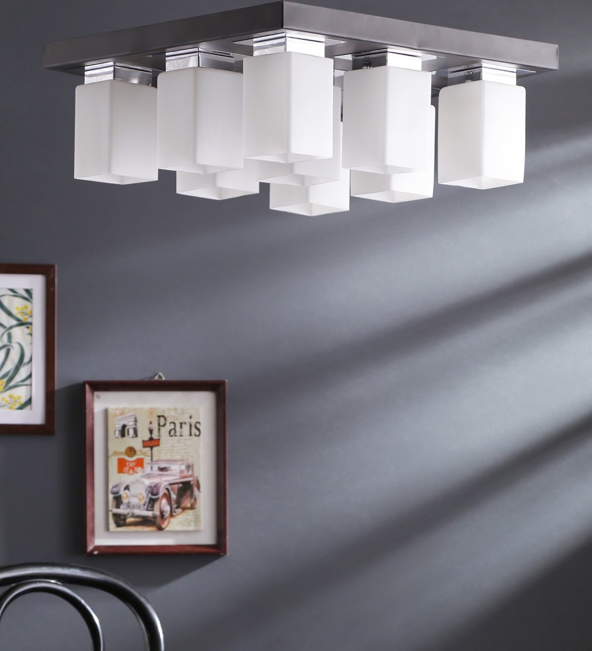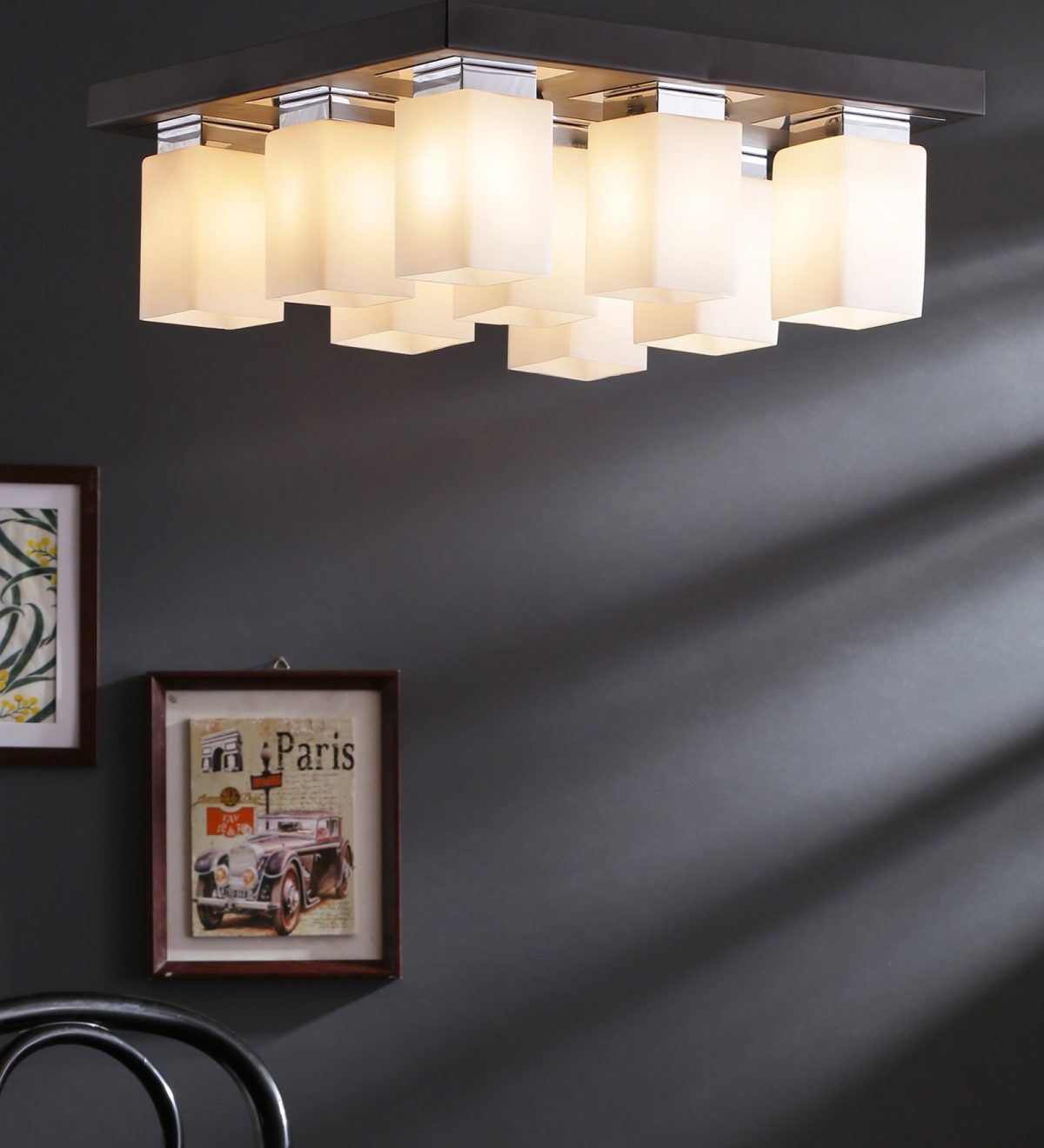 Dark brown(wood – chrome) finish, square long glass mounted on a mild steel plate having nine lamps made of mild steel and glass. It is one of the regular design which is never out of trend and is among one of the best sellers. It is maintenance free, easy to remove glass and wash them, comes with an E27 holder, only the change of lamp is required, which is available locally everywhere. Application includes both residential and commercial premises wherever it matches with your interiors. Other variations (colour and size) in hanging light – HL3678, HL3679, HL3651,HL3652. Related chandeliers – CH188, CH189, CH173. Matching wall light code -WL1775, WL1776. LAMP NOT INCLUDED