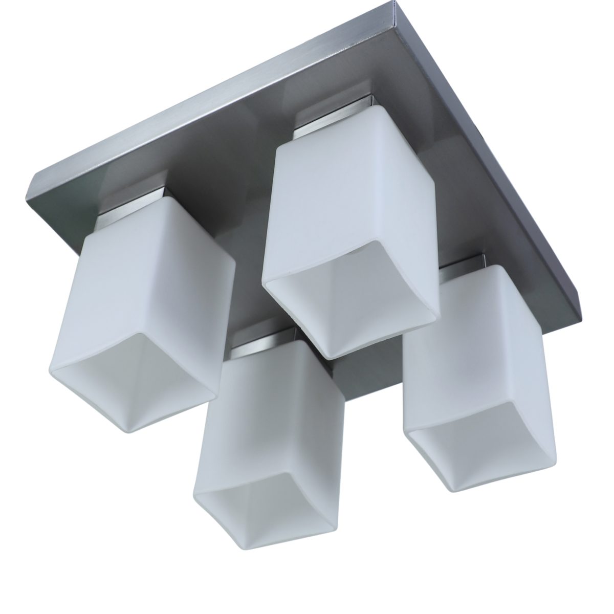 Silver (satin nickel) finish, modern square long glass mounted on a mild steel plate having four lamps made of mild steel and glass. It is one of the regular design which is never out of trend and is among one of the best sellers. It is maintenance free, easy to remove glass and wash them, comes with an E27 holder, only the change of lamp is required, which is available locally everywhere. Application includes both residential and commercial premises wherever it matches with your interiors. Other variations (colour and size) in hanging light – HL3678, HL3679, HL3651, HL3652. Related chandeliers – CH189, CH172, CH173. Matching wall light code – Wl1894, WL1895, WL1896, WL1897, WL1898, WL1899. LAMP NOT INCLUDED.