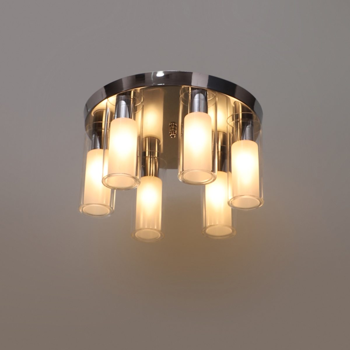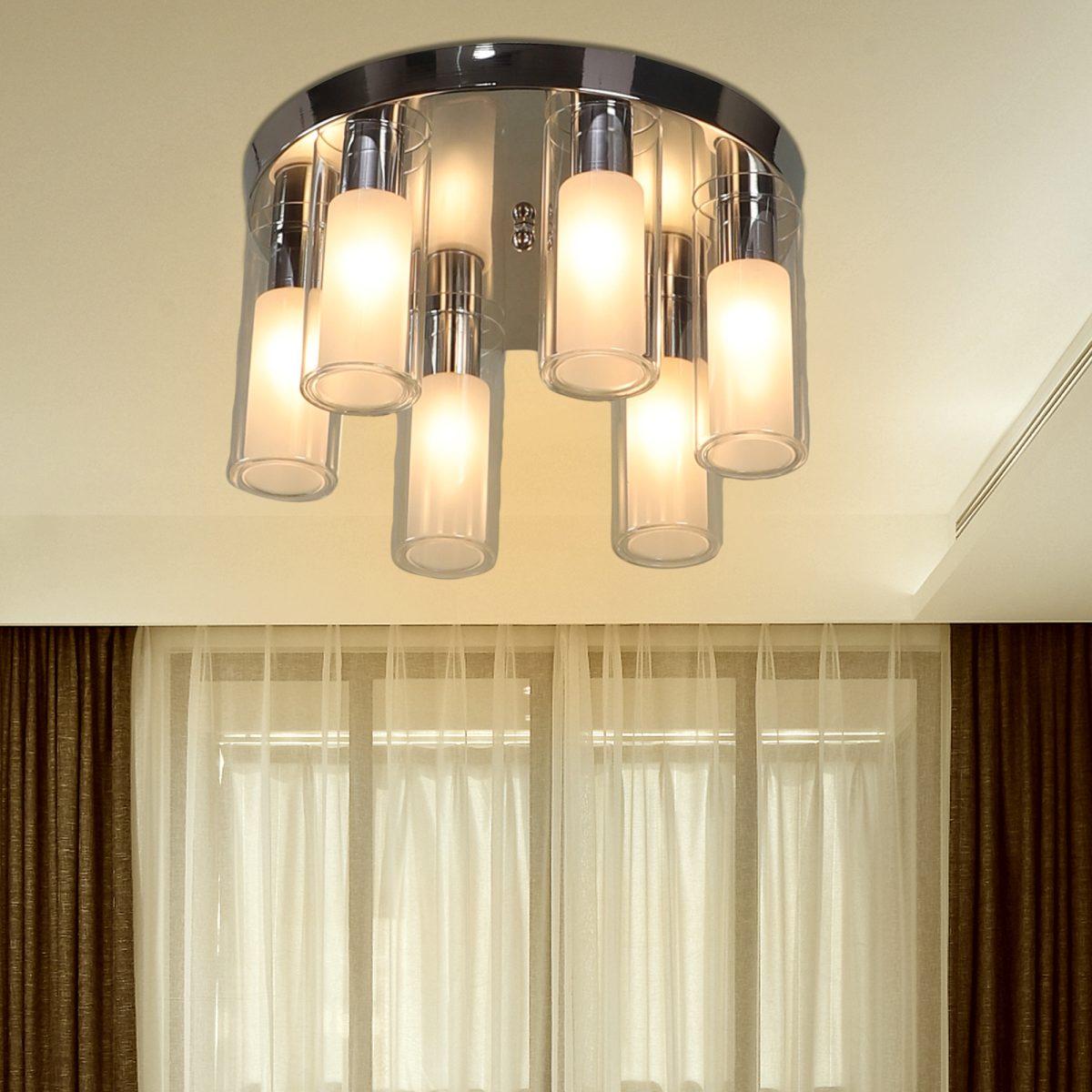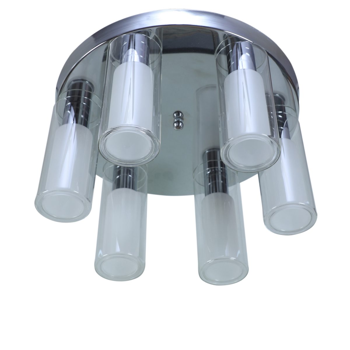 Silver (chrome) finish, sleek, cylindrical two layered glass mounted on a round plate made of mild steel having six lights. This is a fixed type chandelier in which the base plate is fixed to the ceiling with the help of straight clamp and screws.It is maintenance free, easy to remove glass and wash them, comes with an E14 holder, only the change of lamp is required, which is available locally everywhere. Application includes both residential and commercial premises wherever it matches with your interiors. Matching chandelier variations – CH313. Matching hanging variations – HL3868-1, HL3868-3, HL3868-6, HL3868-10. Matching wall light code WL1338, WL1339. Matching ceiling light code – CL412. All designs available in silver (chrome) colour also. Can be customized as per requirement in case of bulk quantities. This along with its variants are the best selling products in our catalogue. LAMP NOT INCLUDED.