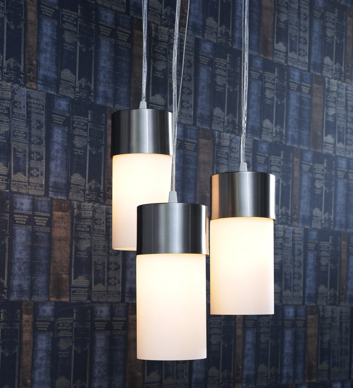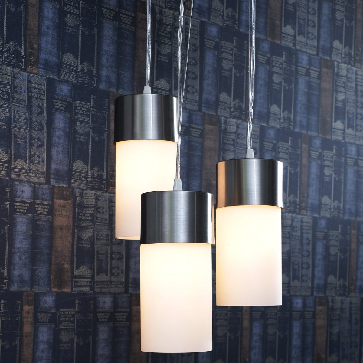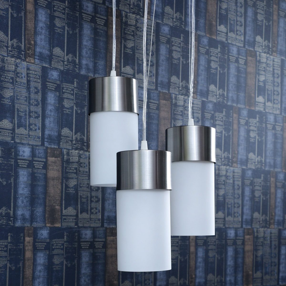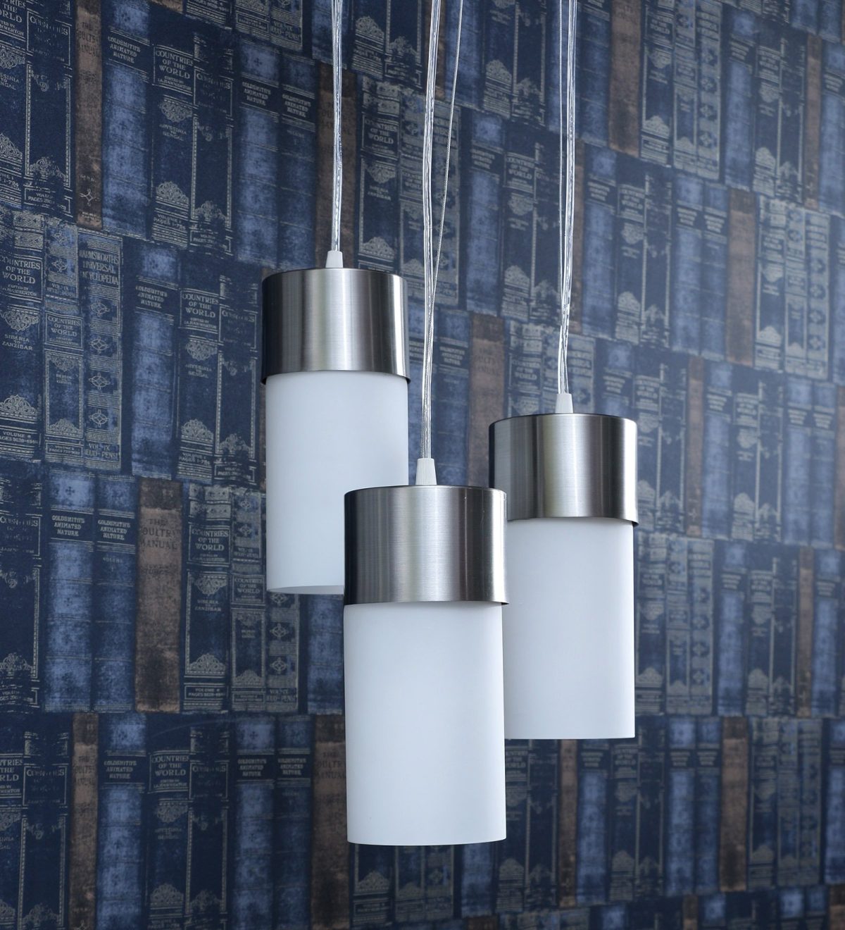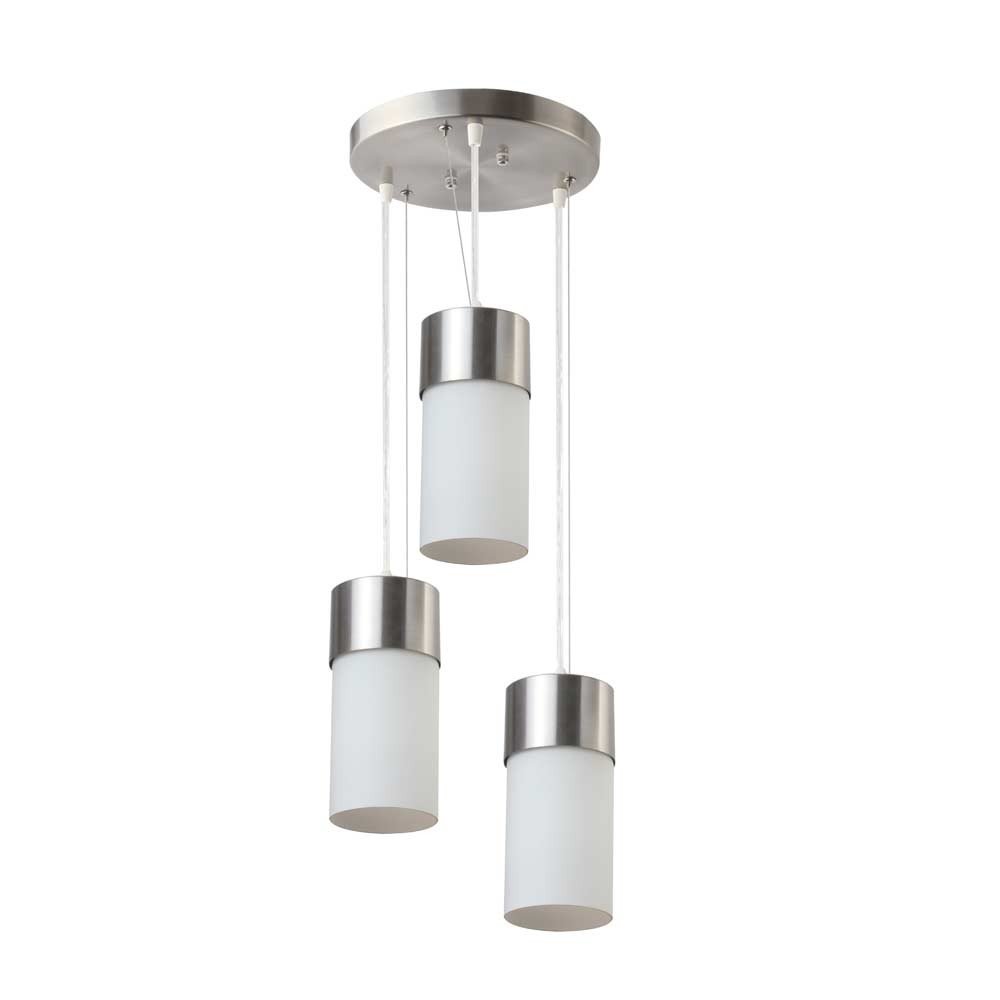 Silver (satin nickel) finish, modern cylindrical glass cluster hanging light having three lamps made of mild steel and glass. It is one of the regular design which is never out of trend. The suspension can be adjusted at time of installation to the desired height. It is maintenance free, easy to remove glass and wash them, comes with an E27 holder, only the change of lamp is required, which is available locally everywhere. Application includes both residential and commercial premises wherever it matches with your interiors. Matching single light code – HL3858-1, Matching dark brown (wood) finish code – HL3861-3, HL3861-1. Lamp not included.
