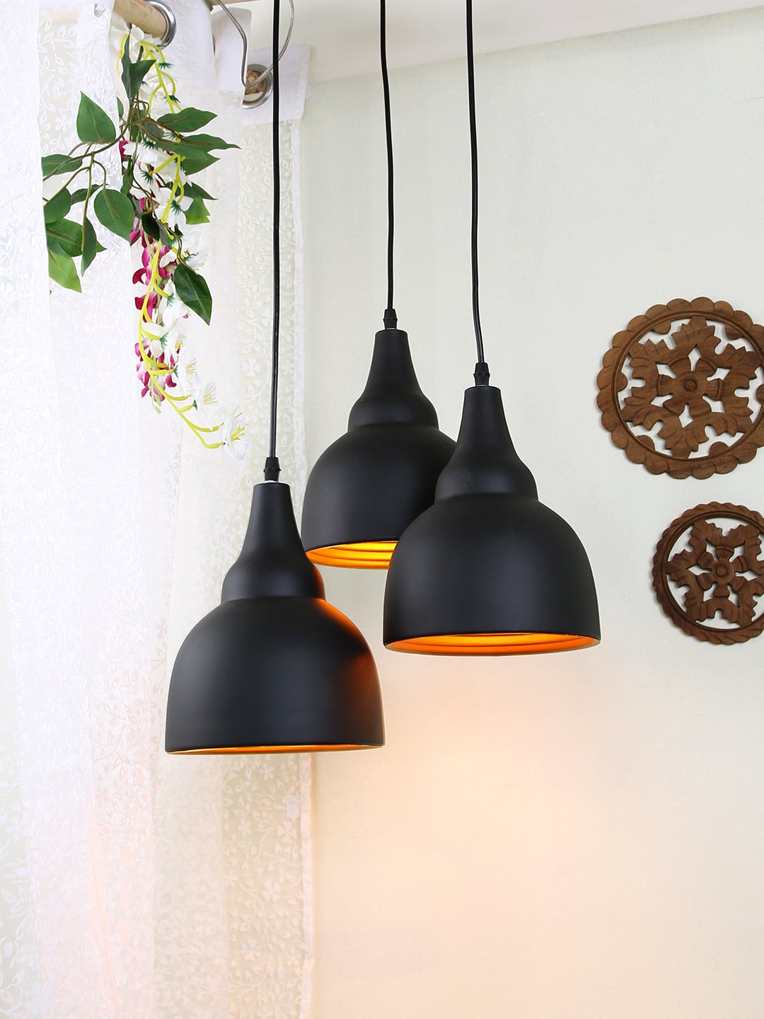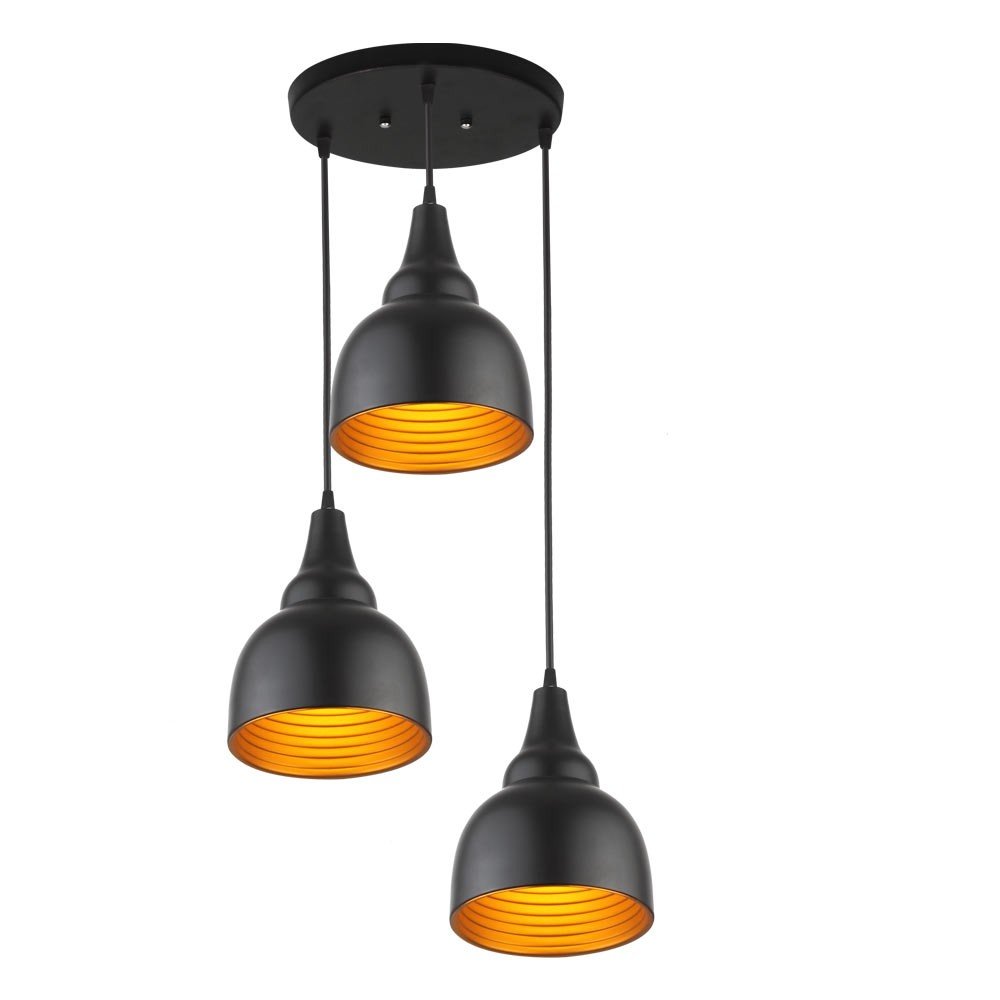 Powder coated black – gold, modern aluminum cluster hanging light having three lamps. The suspension can be adjusted at time of installation to the desired height. It is maintenance free, comes with an E27 holder, only the change of lamp is required, which is available locally everywhere. Application includes both residential and commercial premises wherever it matches with your interiors. Matching single hanging code – HL3895-1. Can be customized as per requirement in case of bulk quantities. Lamp not included.