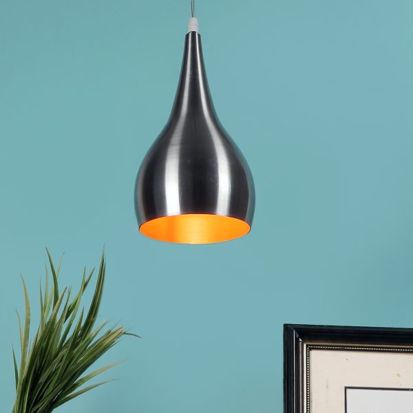 Silver (satin nickel) – orange finish modern aluminum cluster hanging light having three lamps. The suspension can be adjusted at time of installation to the desired height. It is maintenance free, comes with an E27 holder, only the change of lamp is required, which is available locally everywhere. This along with its variants are one of the best selling design in our catalogue. Application includes both residential and commercial premises wherever it matches with your interiors. Codes of other hanging variation in same design – HL3923-1, HL3923-3, HL3924-1, HL3924-3, HL3925-1, HL3925-3, HL3926-1, HL3926-3, HL3927-1, HL3928-1, HL3928-3, HL3946-1, HL3947-1, HL3949-1, HL3949-3, HL4104. Can be customized as per requirement in case of bulk quantities. Lamp not included.
