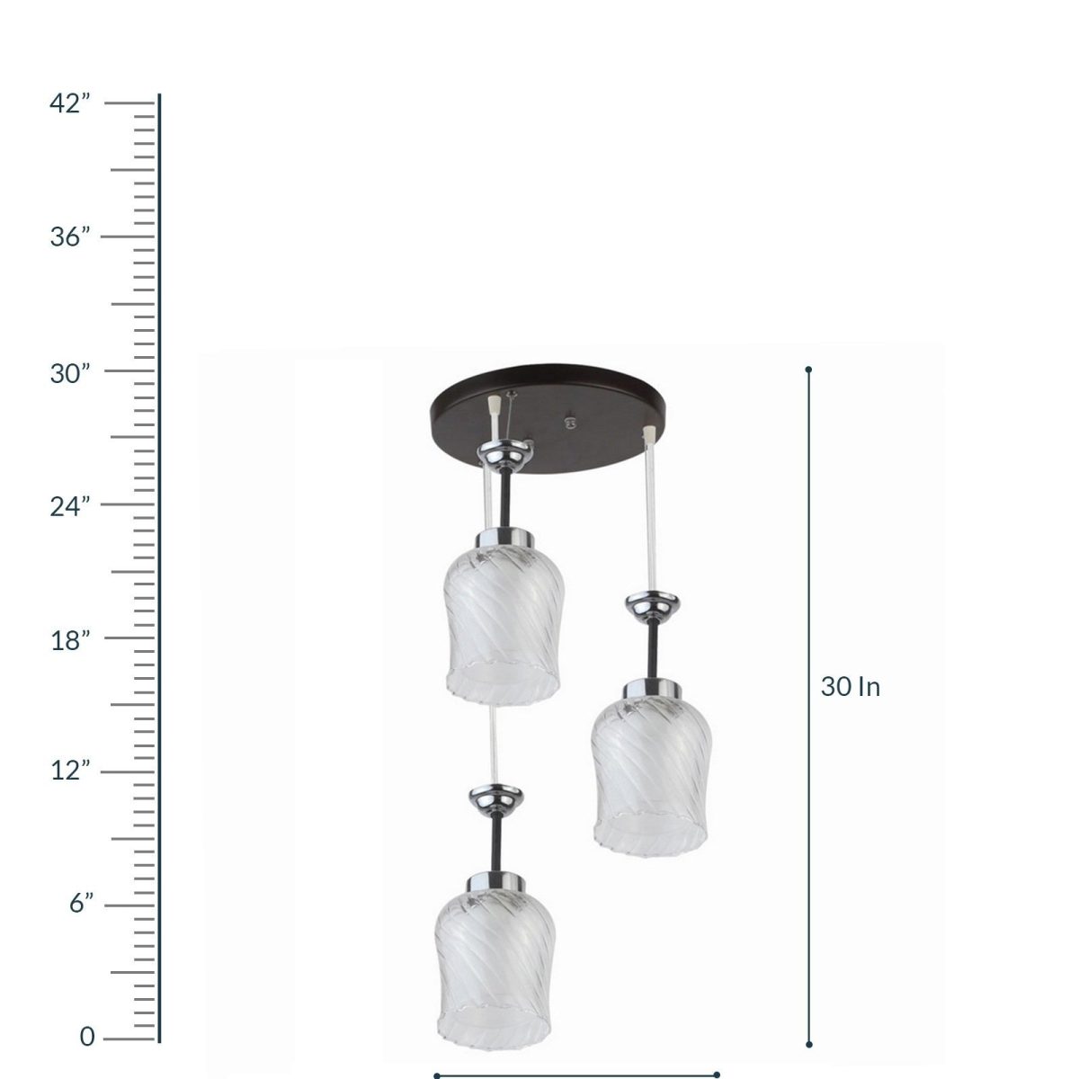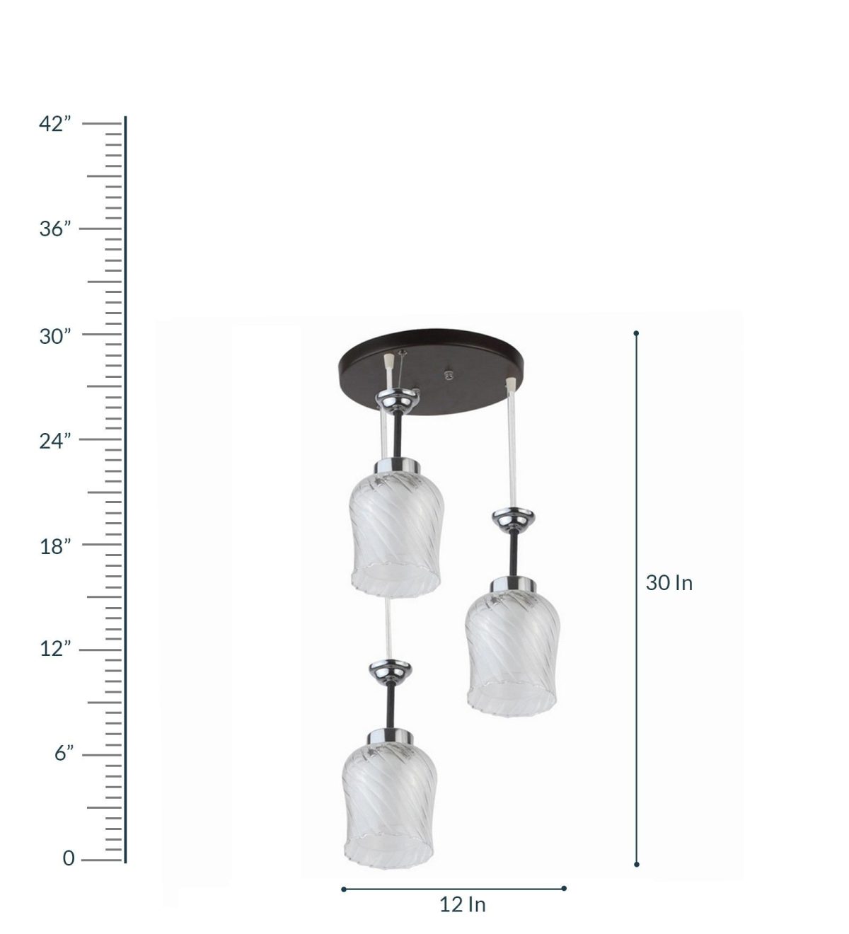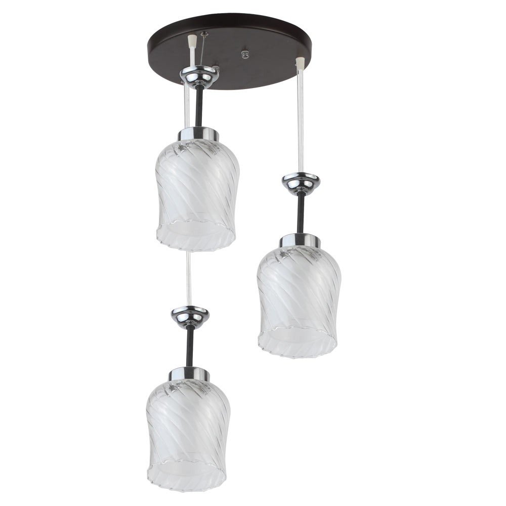 Silver brown (chrome-wood) finish, modern bell shaped glass, cluster hanging light having three lamps made of mild steel and glass. This light is having a two layered glass which is liked by many. The suspension can be adjusted at time of installation to the desired height. It is maintenance free, easy to remove glass and wash them, comes with an E27 holder, only the change of lamp is required, which is available locally everywhere. Application includes both residential and commercial premises wherever it matches with your interiors. Also available in single lamp option with code HL3961-1. Matching wall light code – WL2085, WL2086.Can be customized as per requirement in case of bulk quantities. Lamp not included.