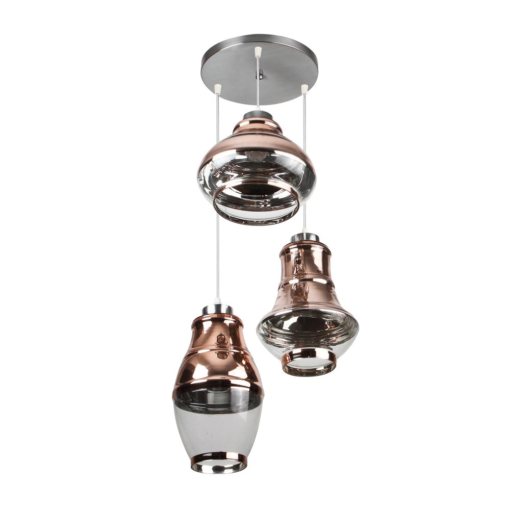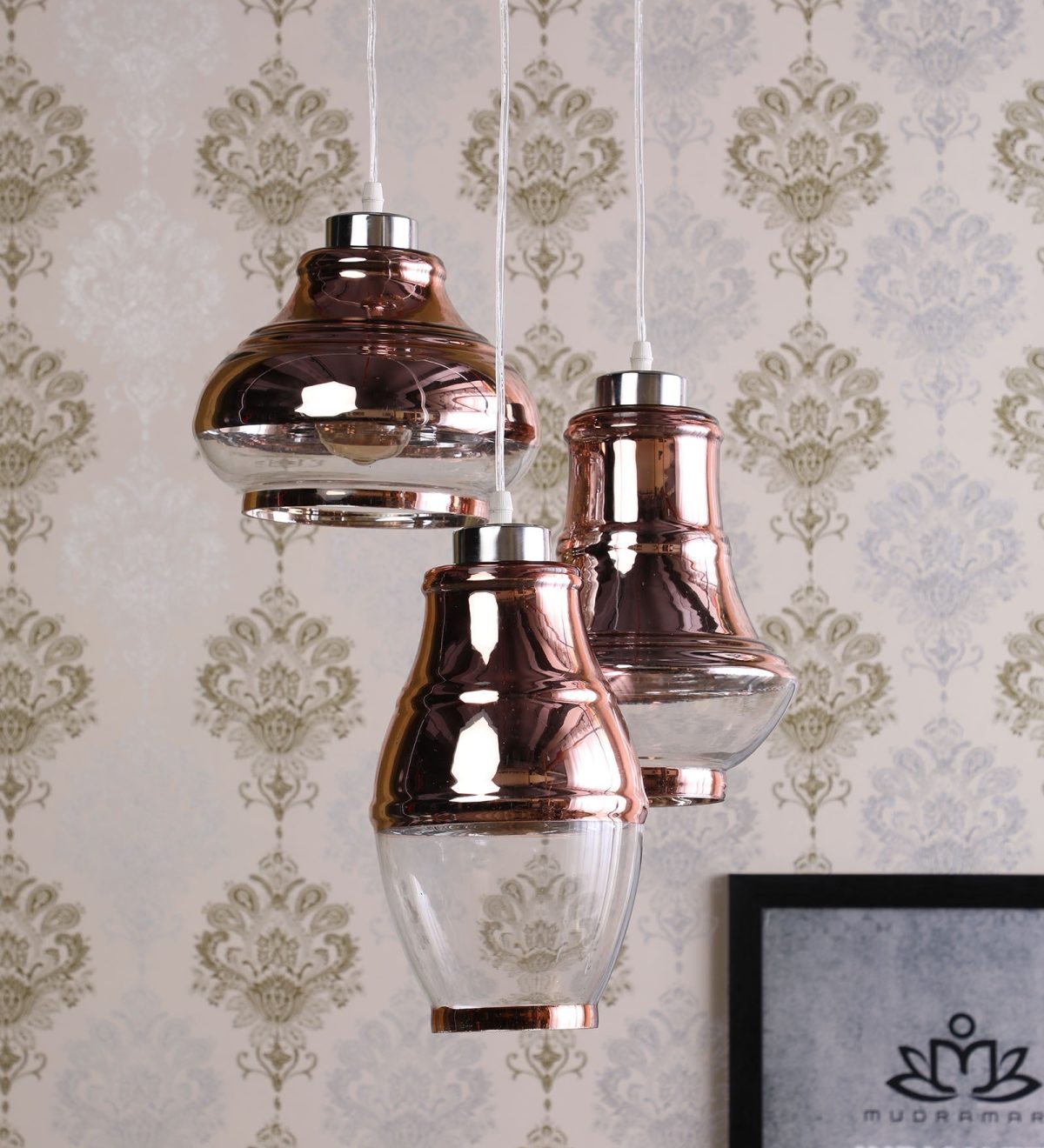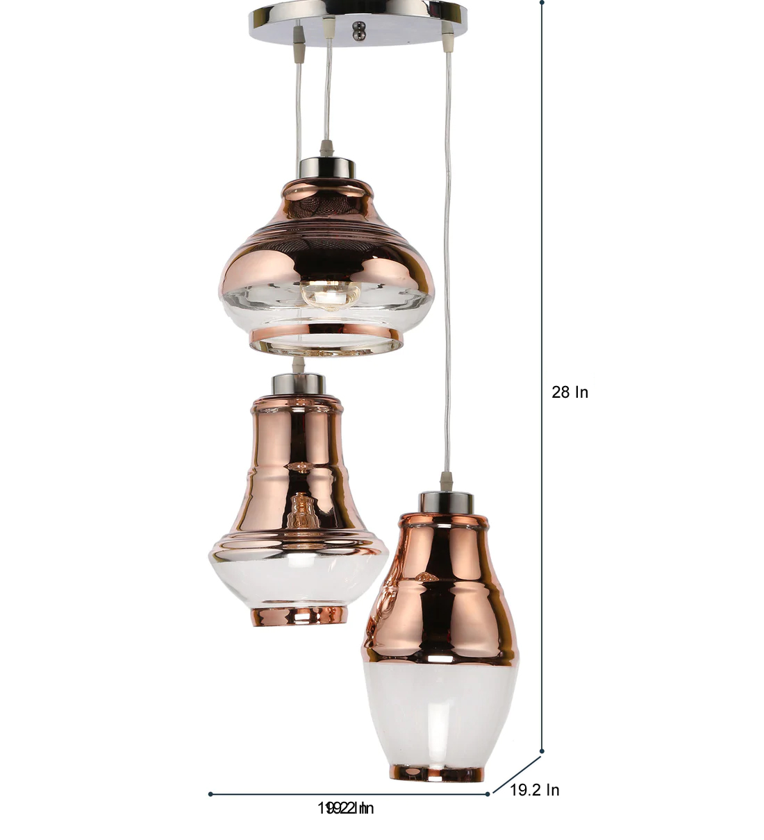 Ultra modern, premium, mild steel silver (chrome – copper) finish, three glass hanging light in which all the three glasses are unique. The suspension can be adjusted at time of installation to the desired height. It is maintenance free, easy to remove glass and wash them, comes with an E27 holder, only the change of lamp is required, which is available locally everywhere. Similar single hanging variations – HL4162, HL4164. Application includes both residential and commercial premises wherever it matches with your interiors. Lamp not included.