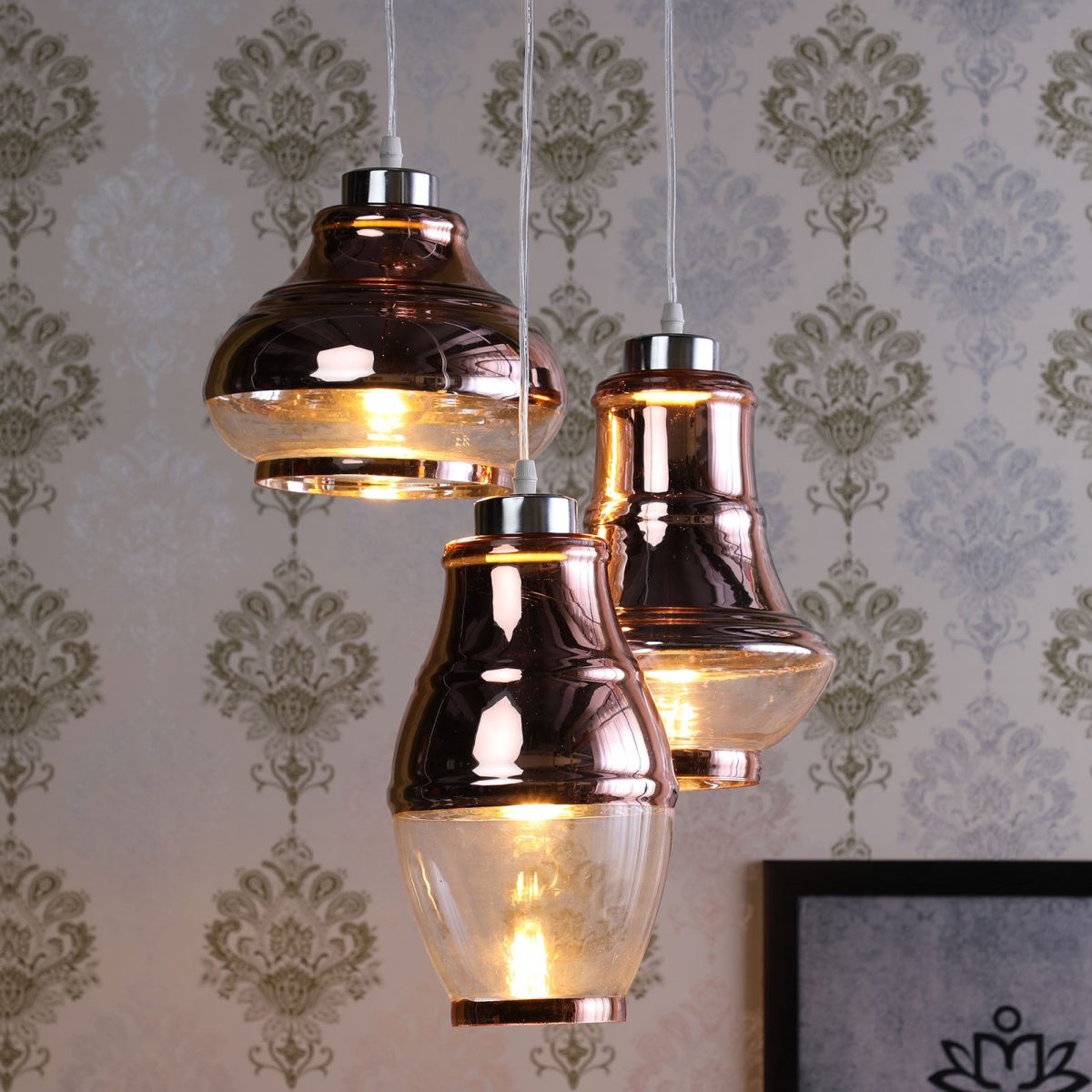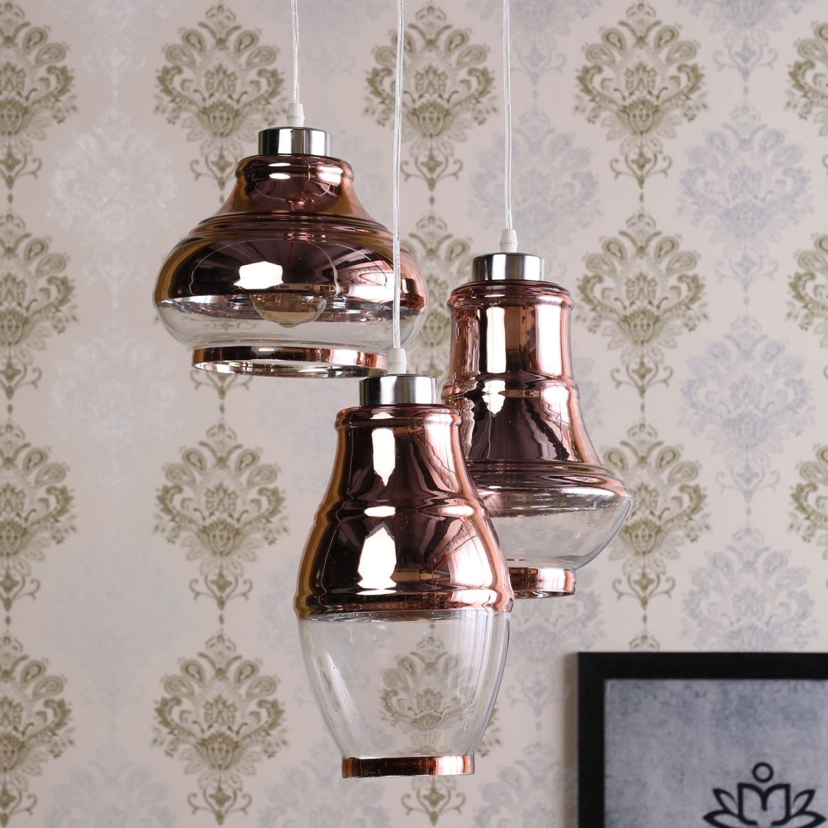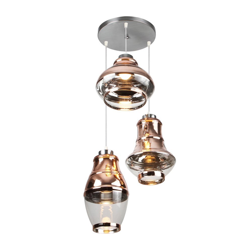 Ultra modern, premium, mild steel silver (chrome – copper) finish, three glass hanging light in which all the three glasses are unique. The suspension can be adjusted at time of installation to the desired height. It is maintenance free, easy to remove glass and wash them, comes with an E27 holder, only the change of lamp is required, which is available locally everywhere. Similar single hanging variations – HL4162, HL4164. Application includes both residential and commercial premises wherever it matches with your interiors. Lamp not included.