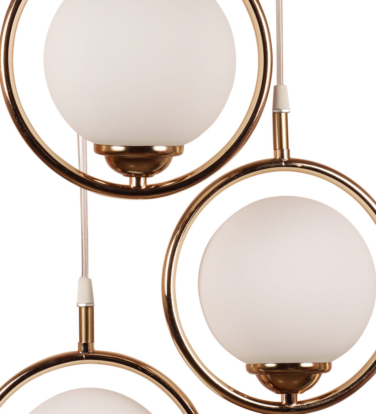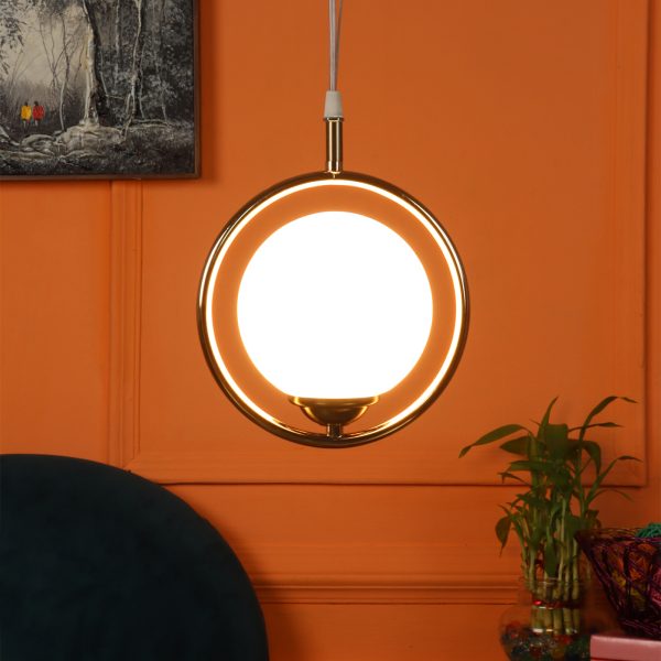 Gold modern mild steel triple hanging light in white doom glass. The suspension can be adjusted at time of installation to the desired height. It is maintenance free, comes with an E27 holder, only the change of lamp is required, which is available locally everywhere. Matching single hanging code – HL6077-1. Application includes both residential and commercial premises wherever it matches with your interiors. Can be customized as per requirement in case of bulk quantities. Lamp not included.