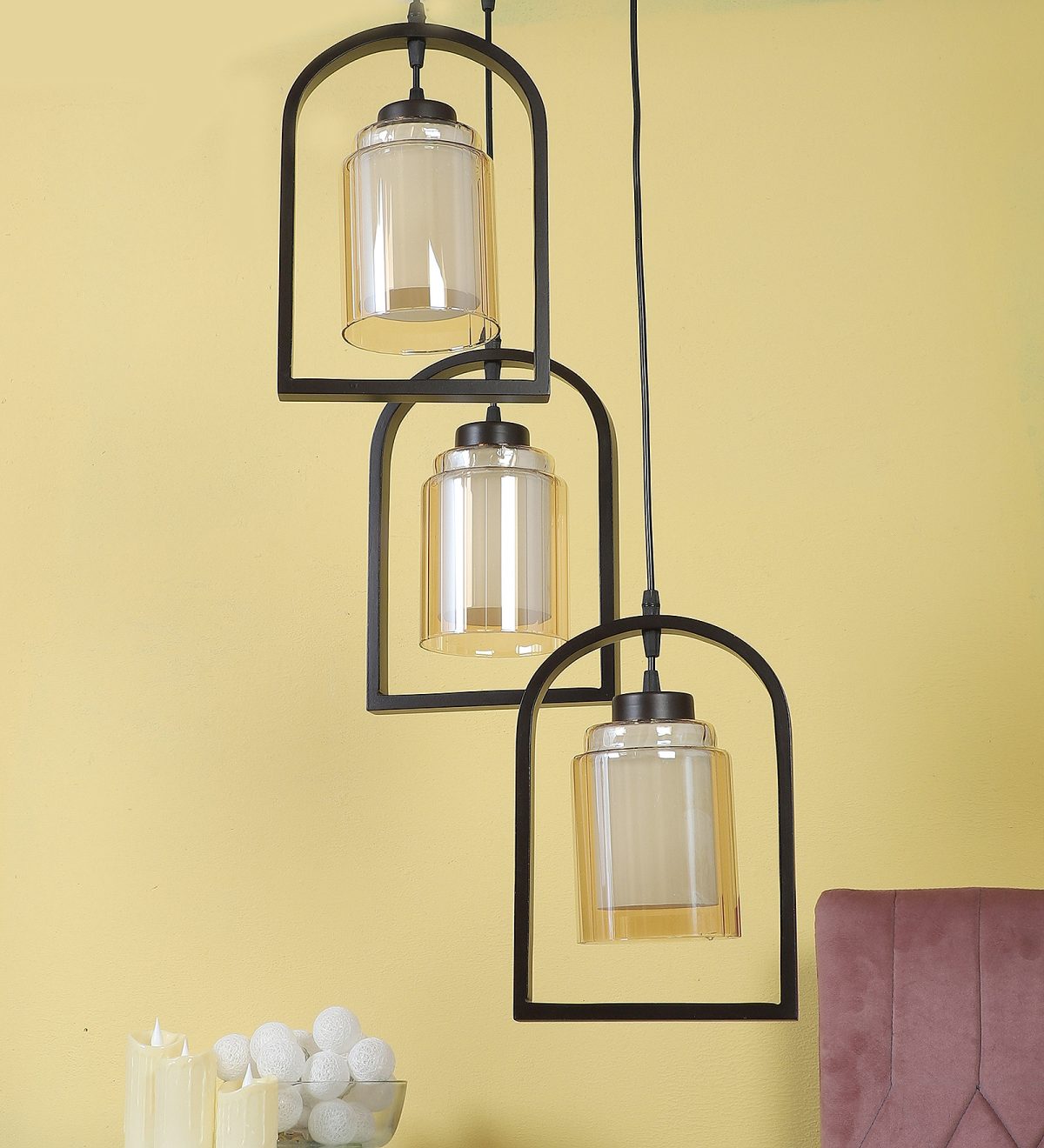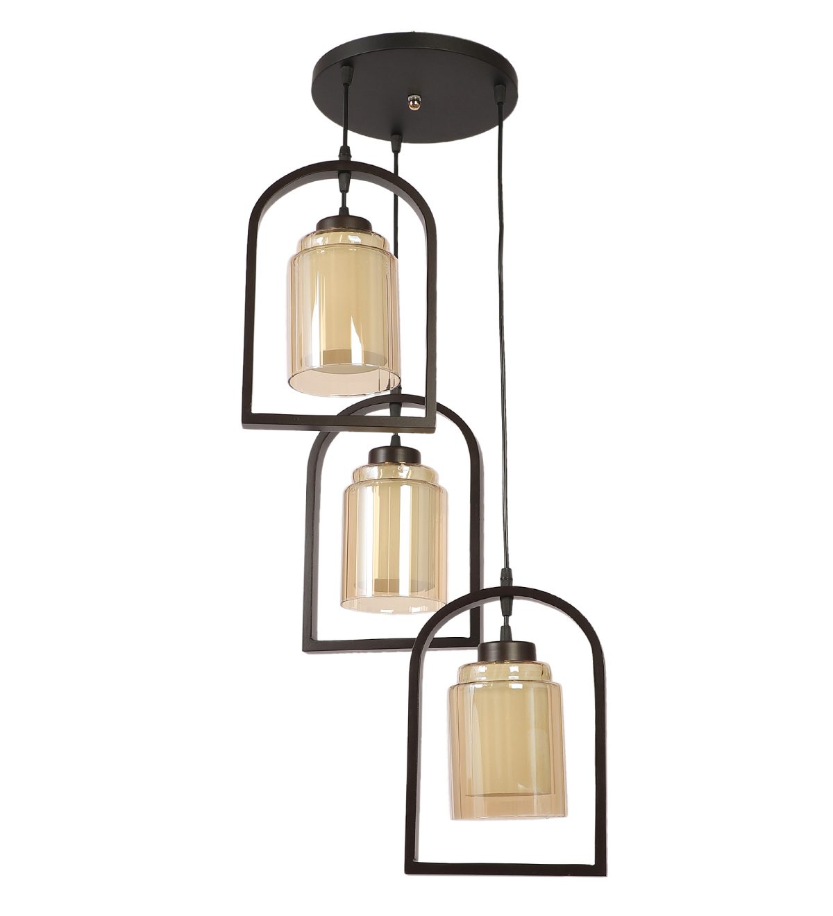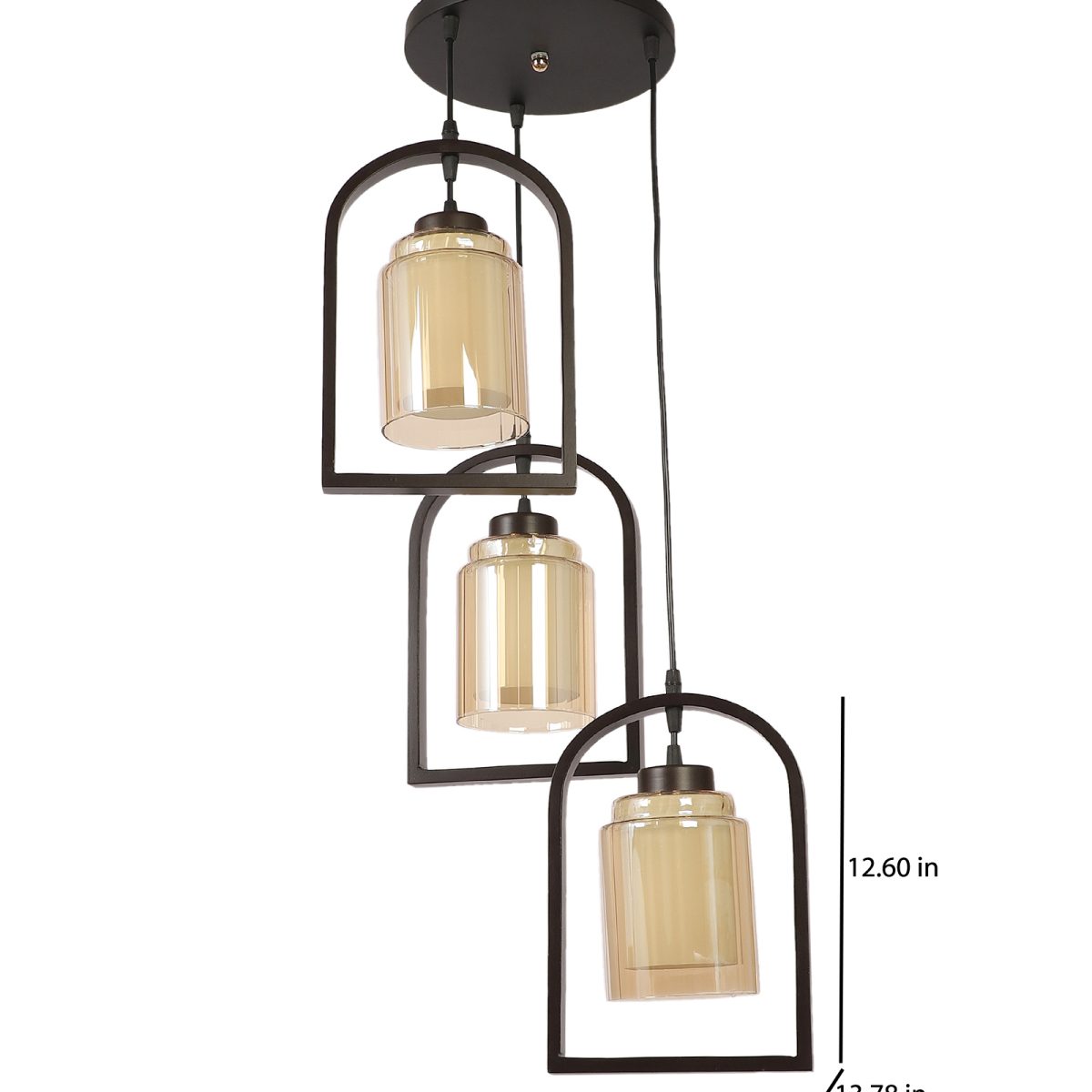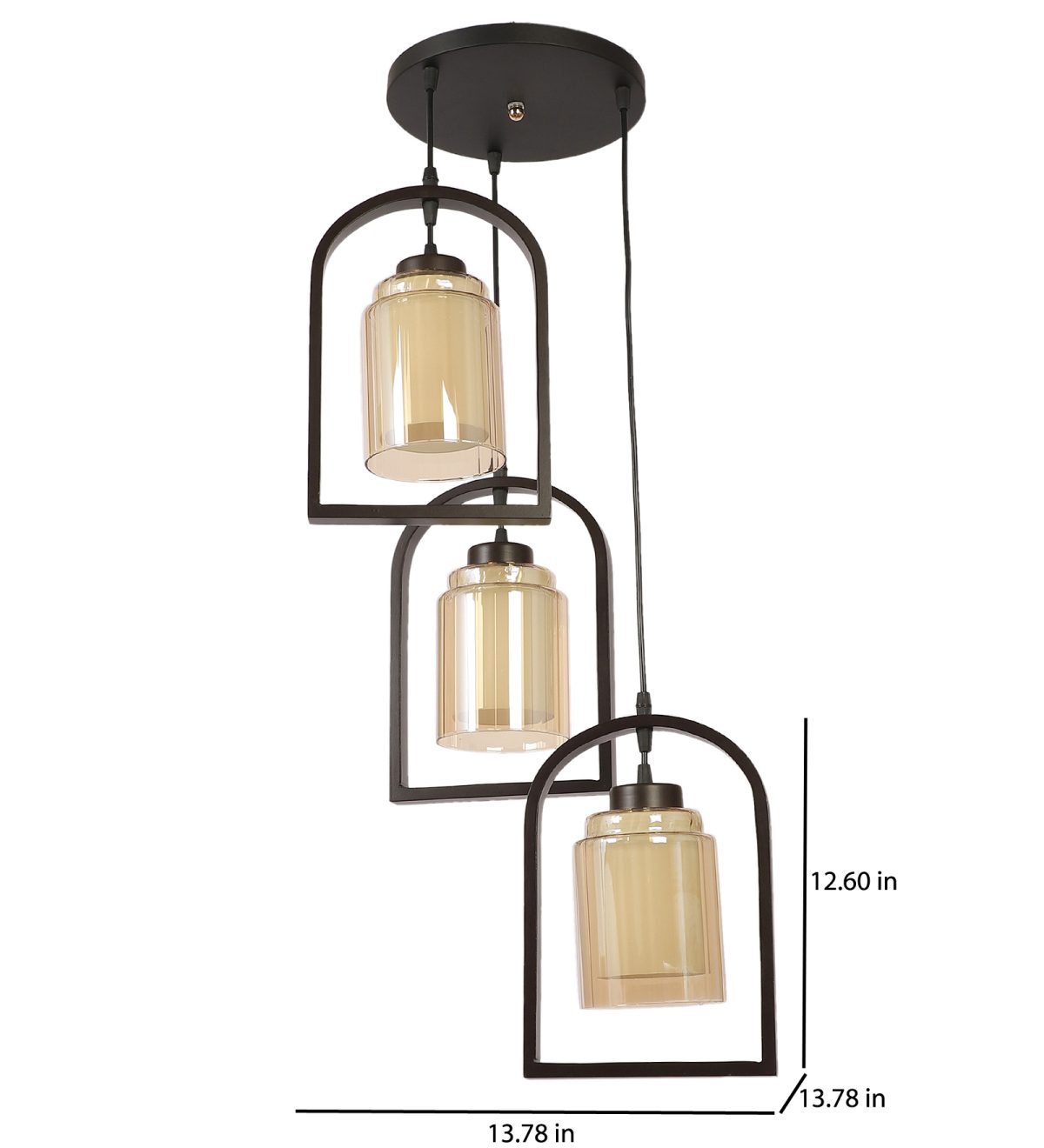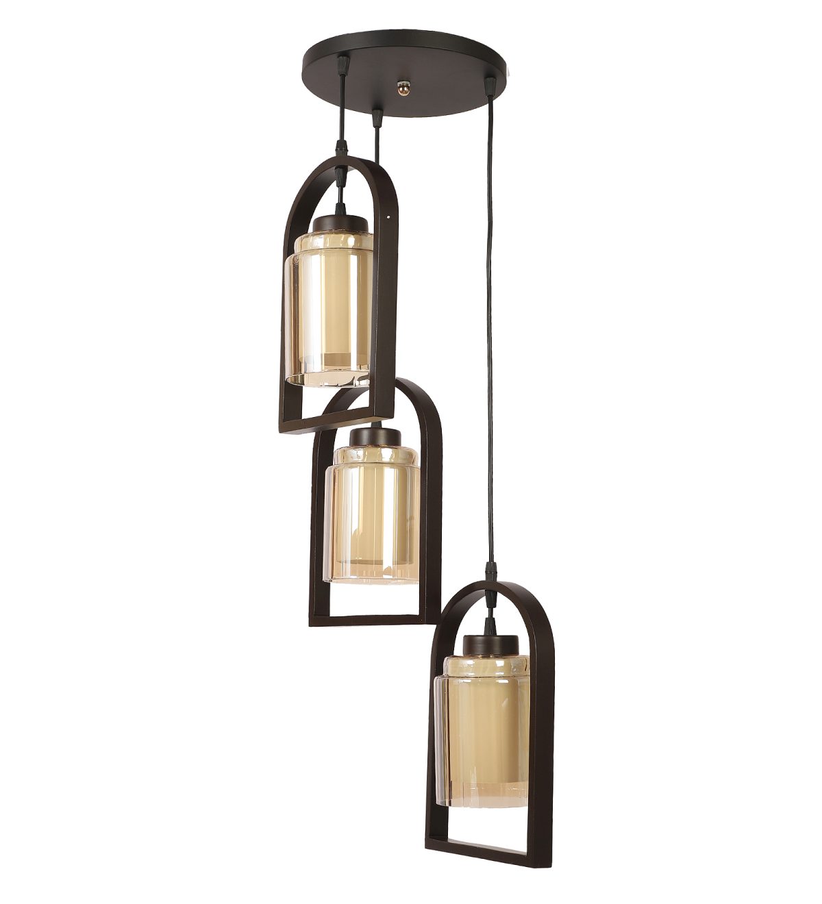 Wood finish tripple hanging light. Can be customised as per requirement. LAMP NOT INCLUDED.