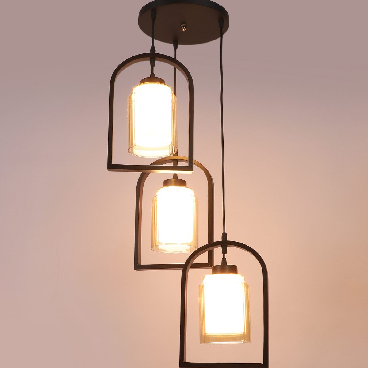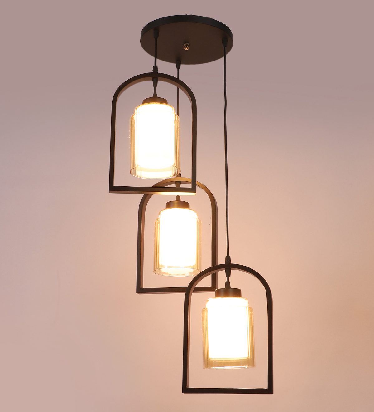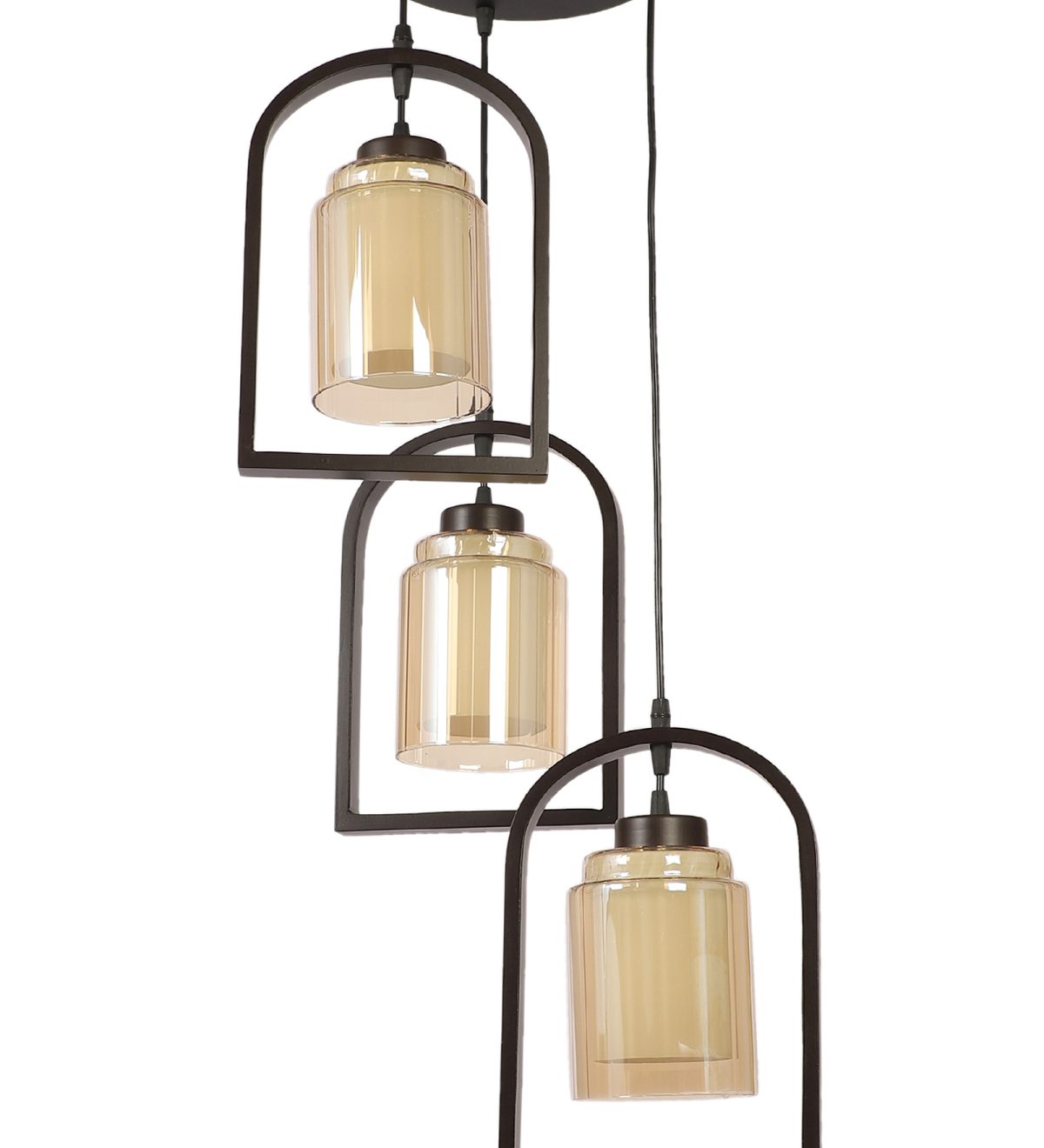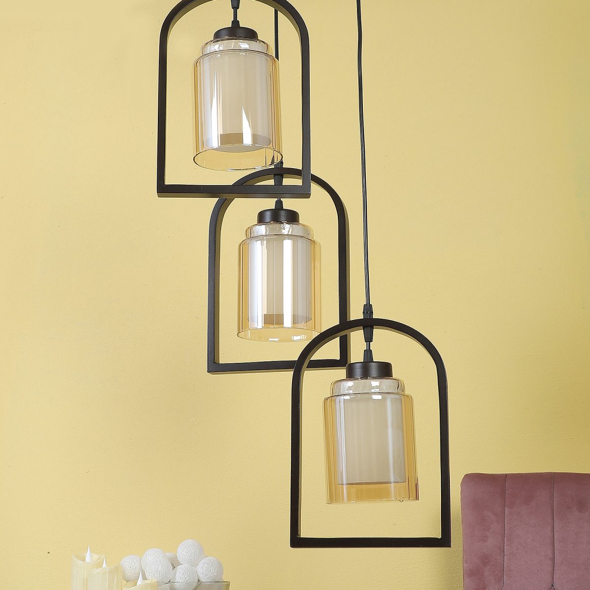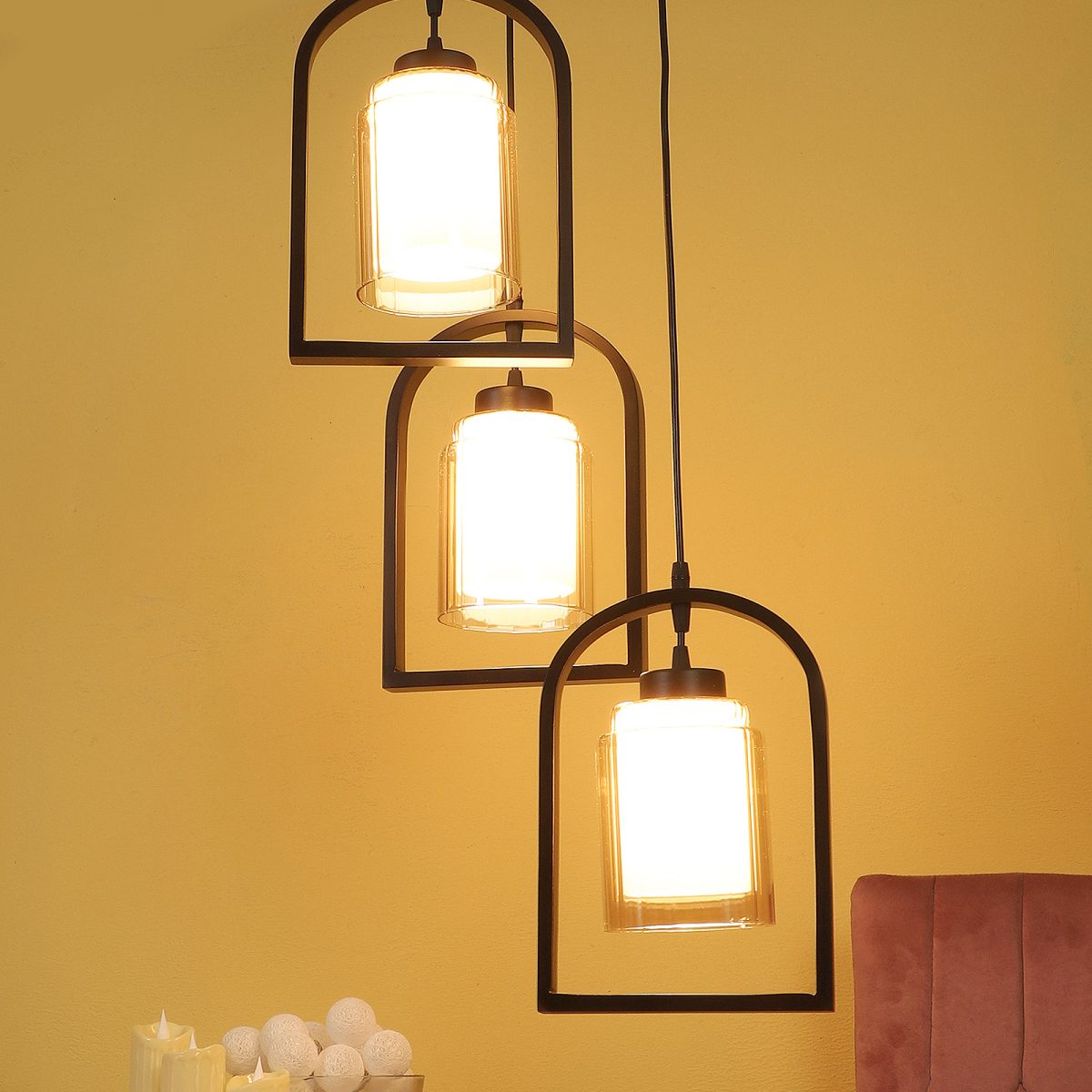 Wood finish tripple hanging light. Can be customised as per requirement. LAMP NOT INCLUDED.
