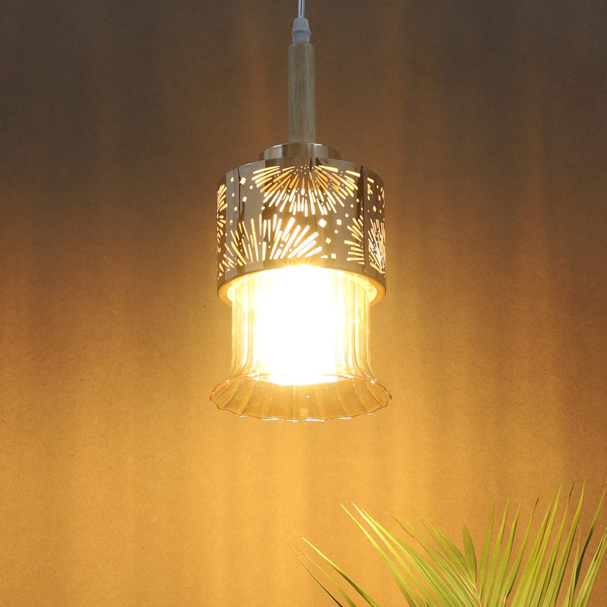 Gold modern, single hanging light in champaign glass. The suspension can be adjusted at time of installation to the desired height. It is maintenance free, comes with an E27 holder.Can be customized as per requirement. LAMP NOT INCLUDED.