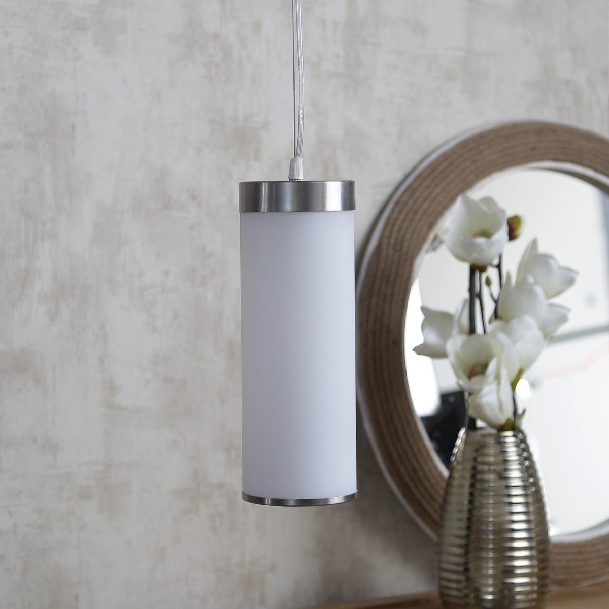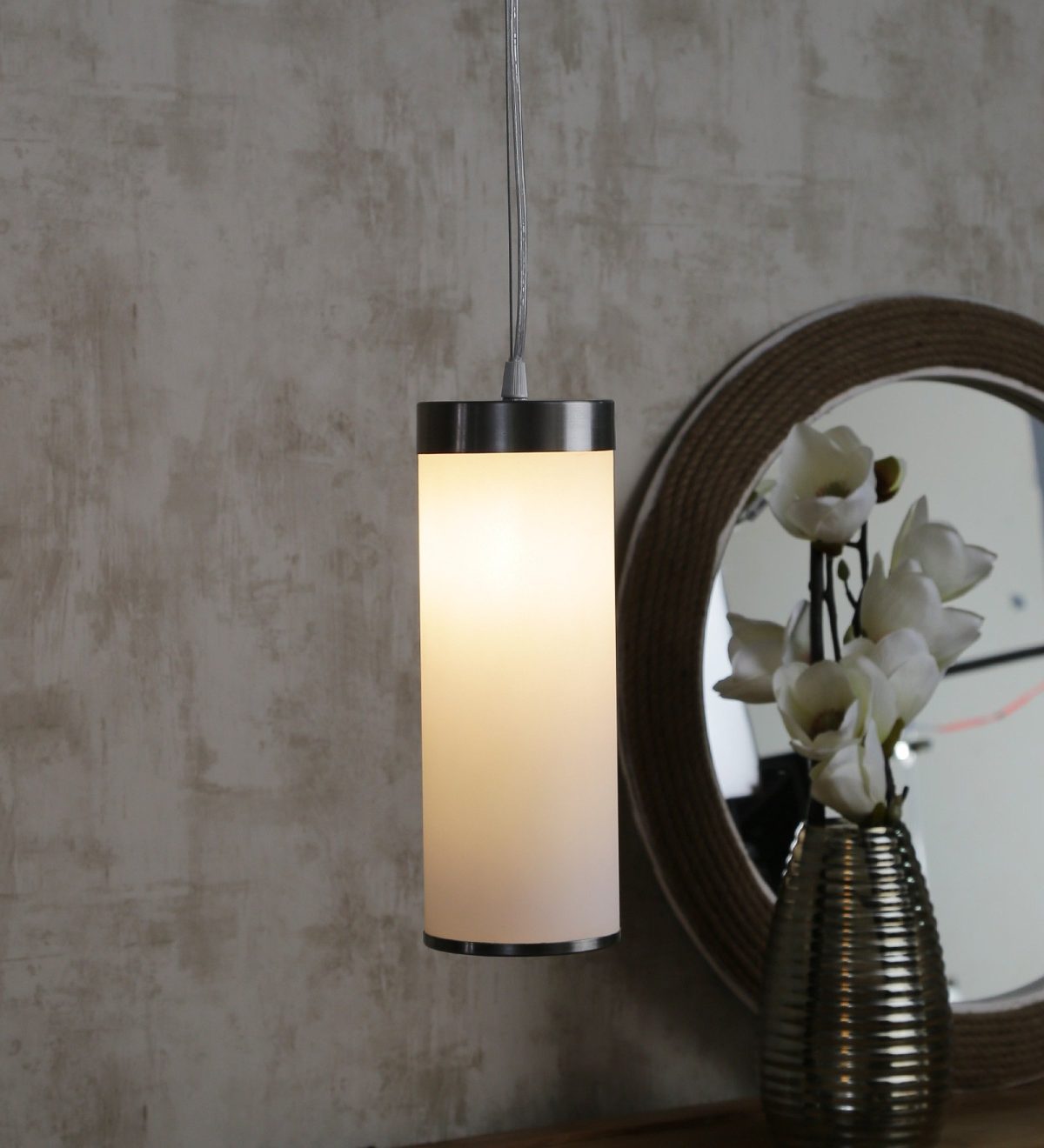 Silver (satin nickel) finish, modern round cylindrical long glass, single hanging light made of mild steel and glass. It is one of the regular design which is never out of trend. The suspension can be adjusted at time of installation to the desired height. It is maintenance free, easy to remove glass and wash them, comes with an E27 holder, only the change of lamp is required, which is available locally everywhere. Application includes both residential and commercial premises wherever it matches with your interiors. Also available in three lamp option with code HL3855-3. Matching wall light code – WL1847, WL1848. Available in dark brown (wood) finish with code HL3862-3, HL3862-1. Can be customized as per requirement in case of bulk quantities. Lamp not included.
