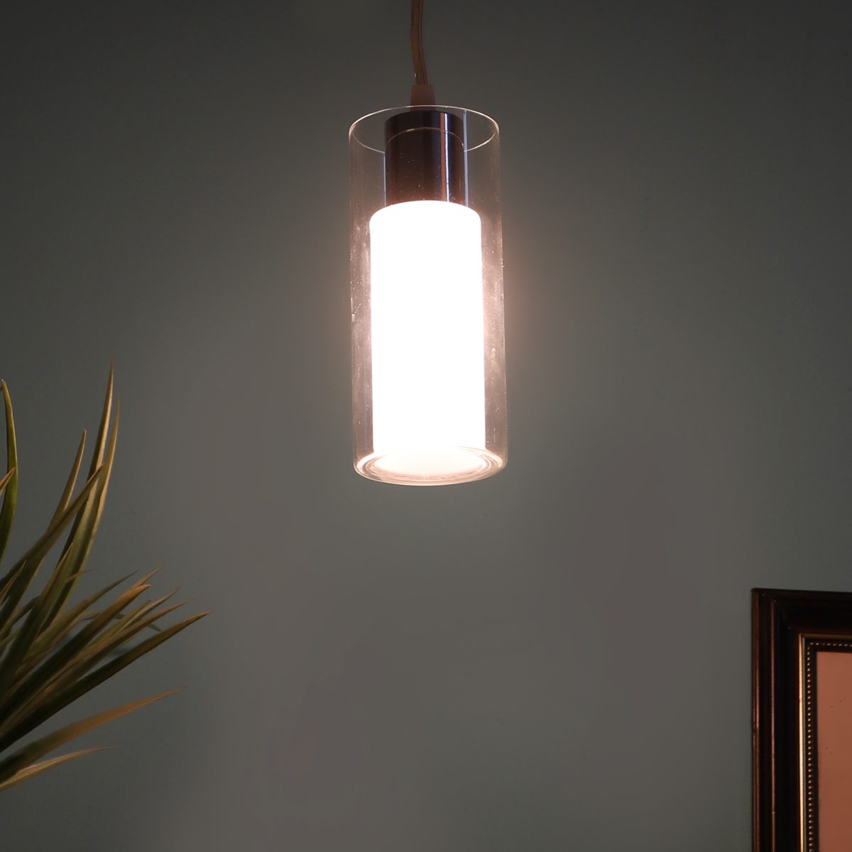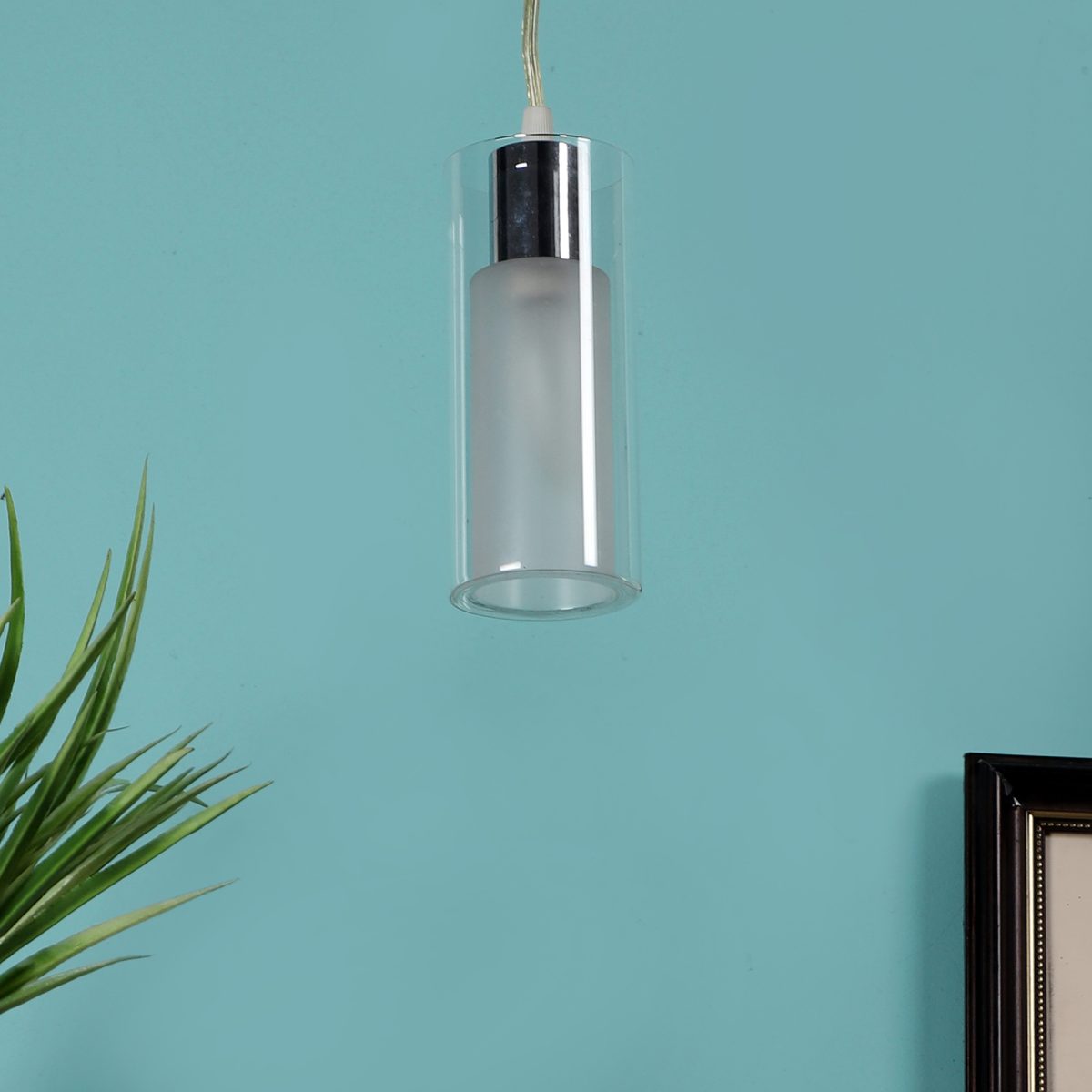 Silver (chrome) finish, ultra modern round cylindrical glass, single hanging light made of mild steel and glass. Each light is having two layers in glass, inner glass is frosted and outer glass is transparent making this light unique. The suspension can be adjusted at time of installation to the desired height. It is maintenance free, easy to remove glass and wash them, comes with an E14 holder, only the change of lamp is required, which is available locally everywhere. Application includes both residential and commercial premises wherever it matches with your interiors. Matching similar hanging codes -HL3868-3, HL3868-6, HL3868-10. Matching chandelier codes – CH313, CH316, Matching ceiling code – CL412. Matching wall light – WL1338, WL1339. All designs available in dark brown (wood) finish also. Can be customized as per requirement in case of bulk quantities. Lamp not included.
