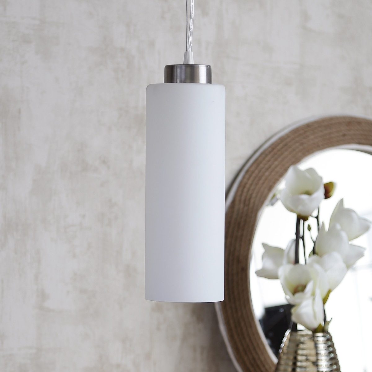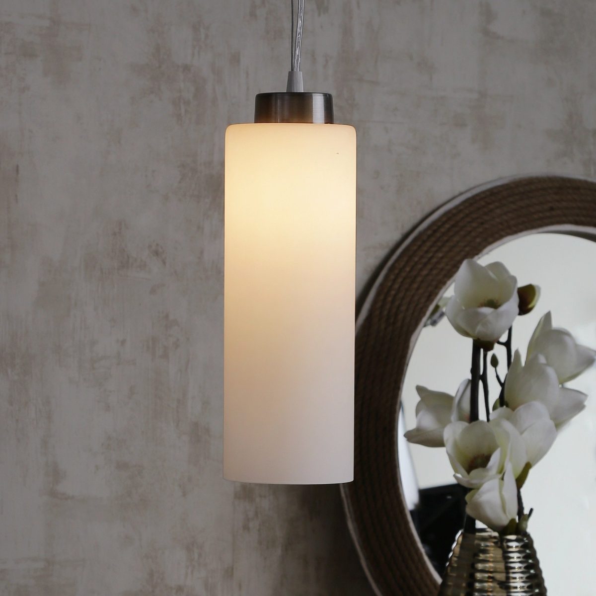 Silver (satin nickel) finish, modern long cylindrical glass cluster hanging light having three lamps made of mild steel and glass. It is one of the regular design which is never out of trend. The suspension can be adjusted at time of installation to the desired height. It is maintenance free, easy to remove glass and wash them, comes with an E27 holder, only the change of lamp is required, which is available locally everywhere. Application includes both residential and commercial premises wherever it matches with your interiors. Matching single light code – HL3870-1, Matching silver (chrome) finish code HL3871-3, HL3871-1, Matching antique brass finish code – HL3873-3, HL3873-1, Matching dark brown (wood) finish code – HL3872-3, HL3872-1. Lamp not included.