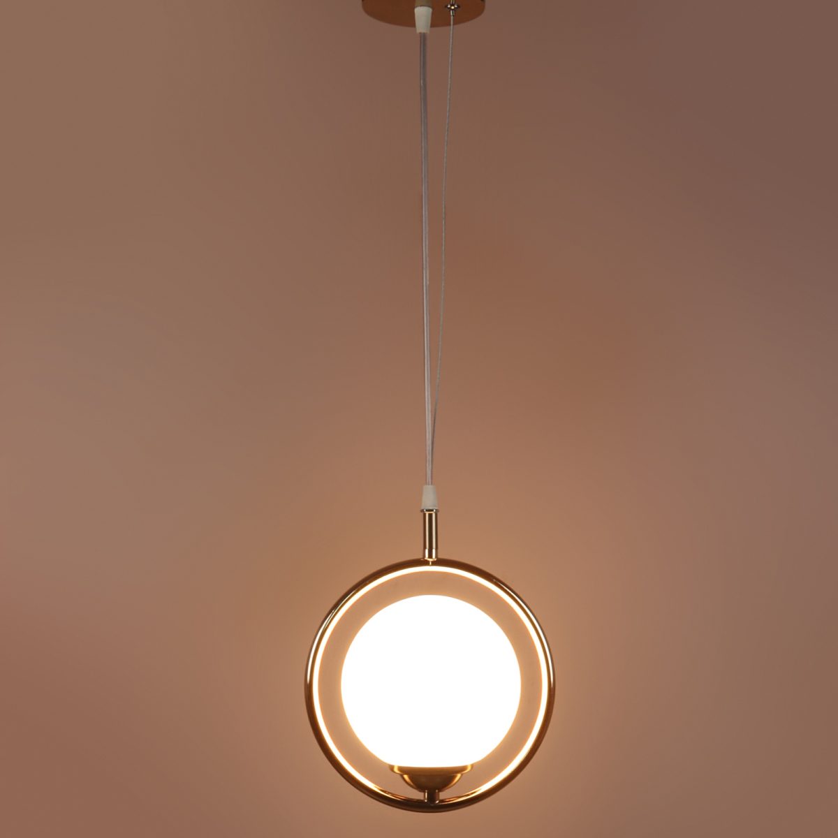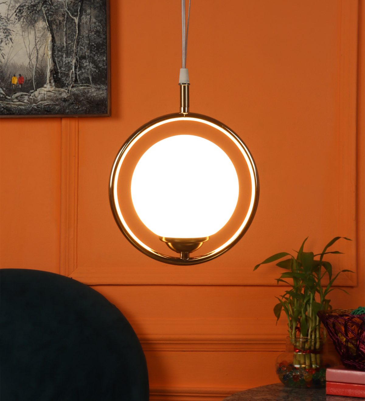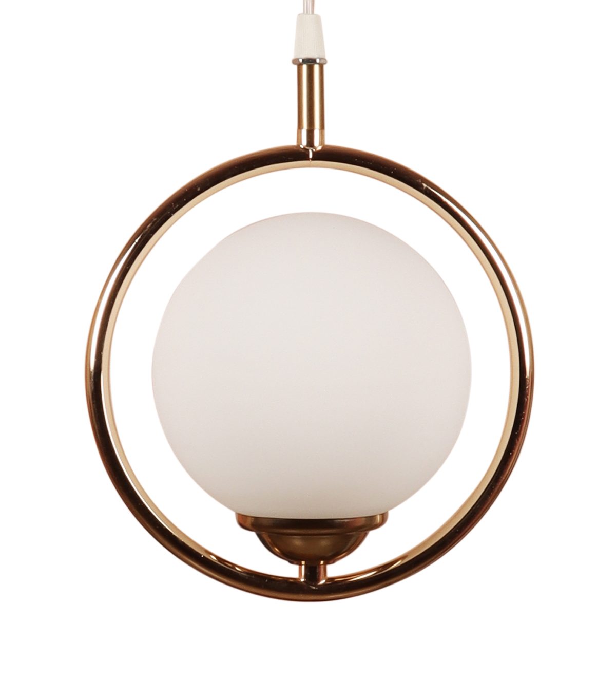 Gold modern, mild steel single hanging light in white doom glass. The suspension can be adjusted at time of installation to the desired height. It is maintenance free, comes with an E27 holder, only the change of lamp is required, which is available locally everywhere. Matching three light hanging code – HL6077-3. Application includes both residential and commercial premises wherever it matches with your interiors. Can be customized as per requirement in case of bulk quantities. LAMP NOT INCLUDED.