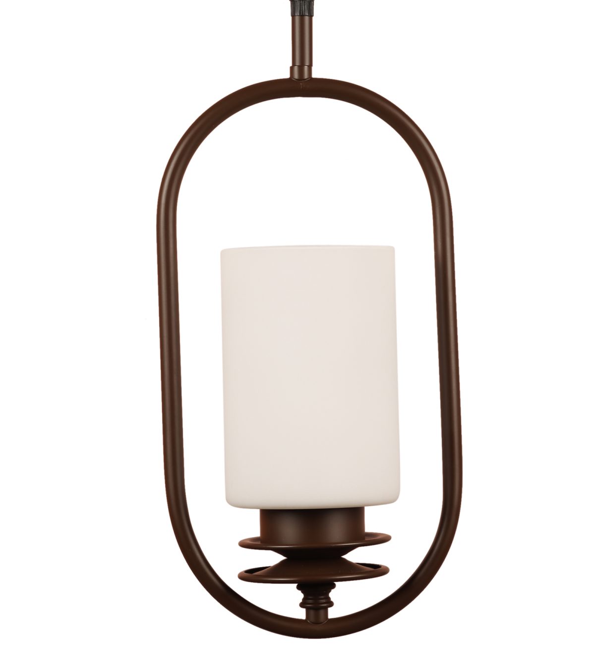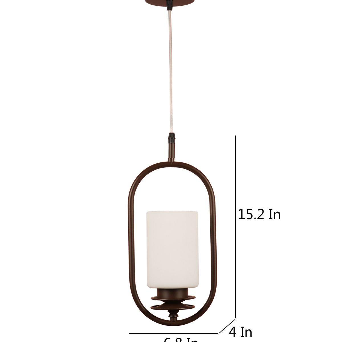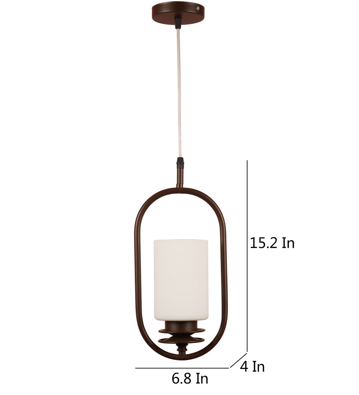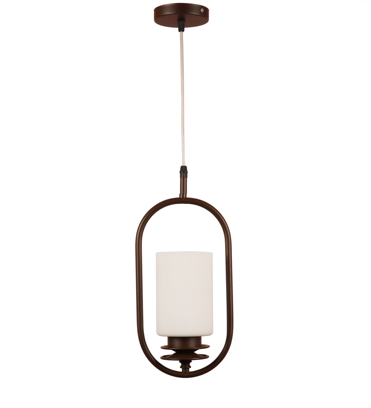 Dark brown (wood) finish, cylinderical white glass single hanging light, made of mild steel and glass. The suspension can be adjusted at time of installation to the desired height. It is maintenance free, easy to remove glass and wash it, comes with an E27 holder, only the change of lamp is required, which is available locally everywhere. Application includes both residential and commercial premises wherever it matches with your interiors. Other variants with different glass are HL6078, HL6080. Can be customized as per requirement in case of bulk quantities. LAMP NOT INCLUDED.