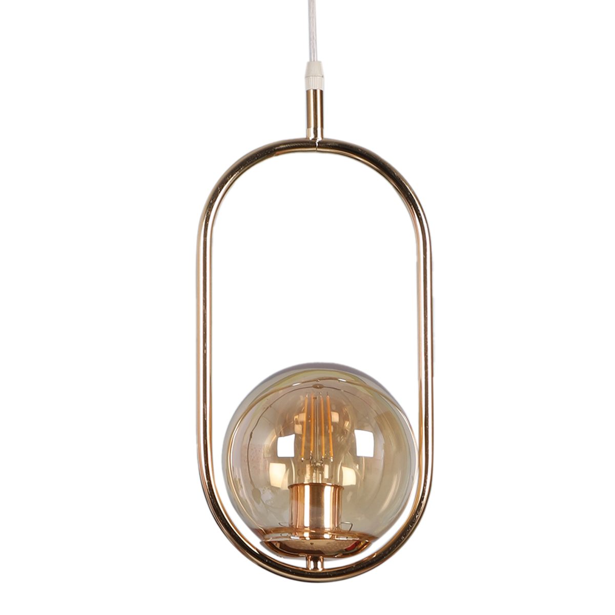 Gold modern, mild steel single hanging light in champaign coloured doom glass. The suspension can be adjusted at time of installation to the desired height. It is maintenance free, comes with an E27 holder, only the change of lamp is required, which is available locally everywhere. Can be customized as per requirement. LAMP NOT INCLUDED.